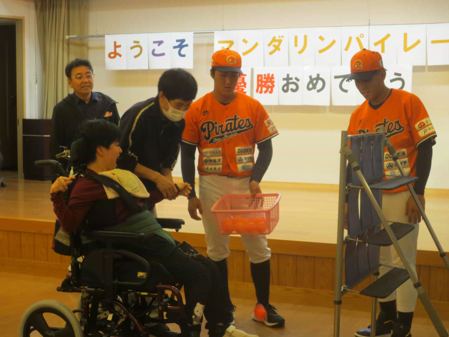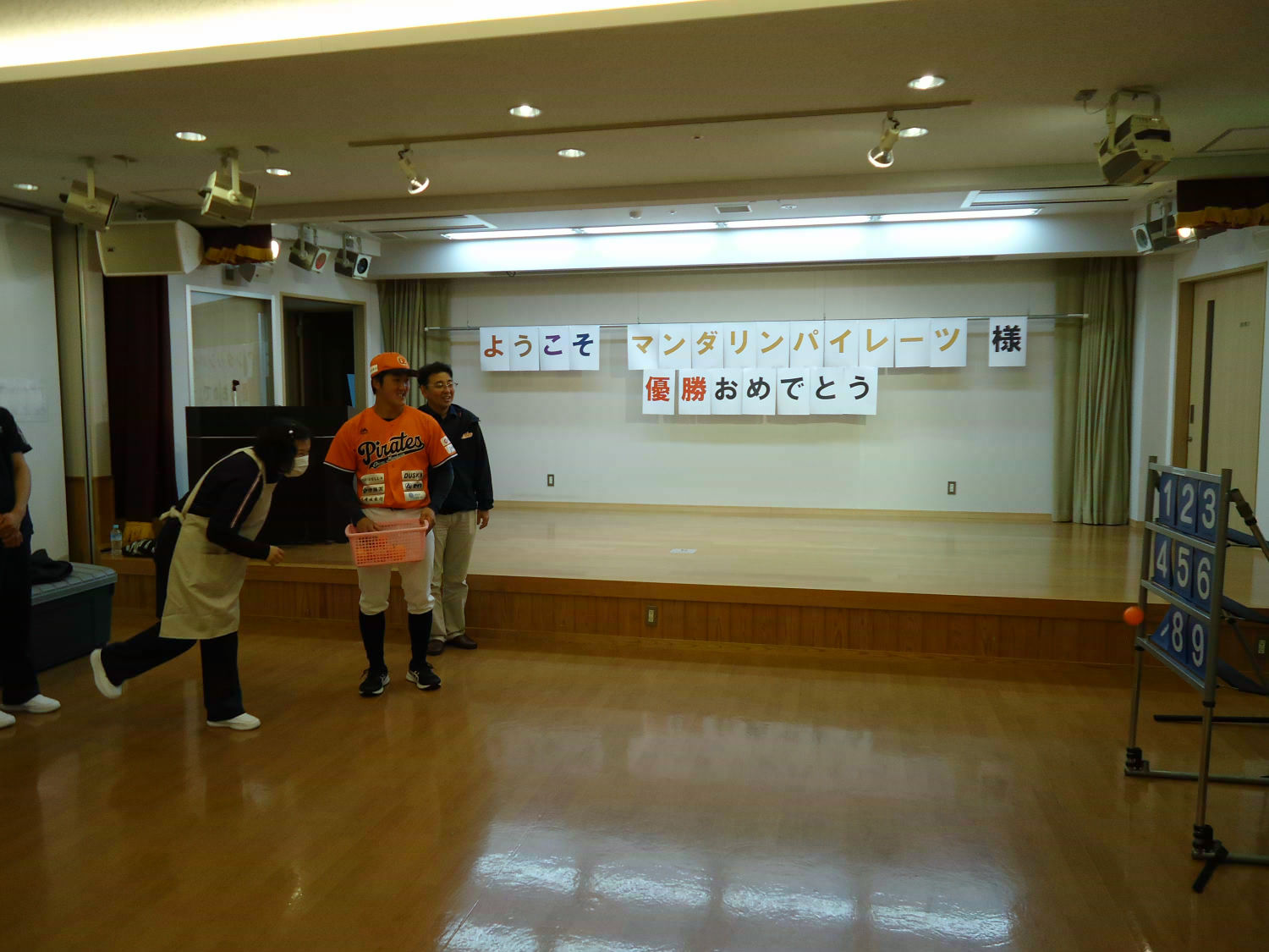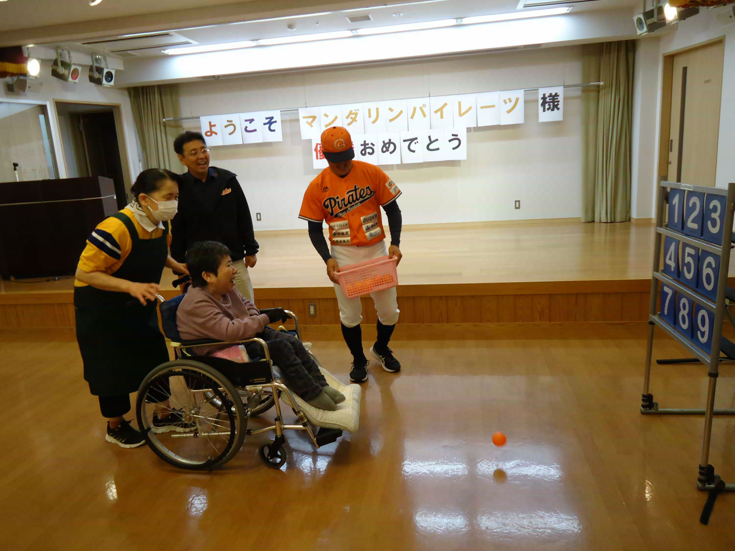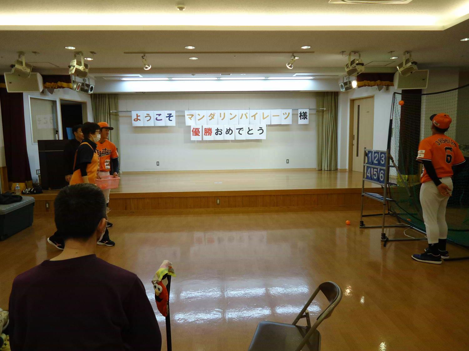 本日はマンダリンパイレーツの皆さんをお招きして、ストラックアウトに挑戦です!選手直々に手ほどきをしてもらうと見事に命中!このままスカウトされちゃうかも!?
