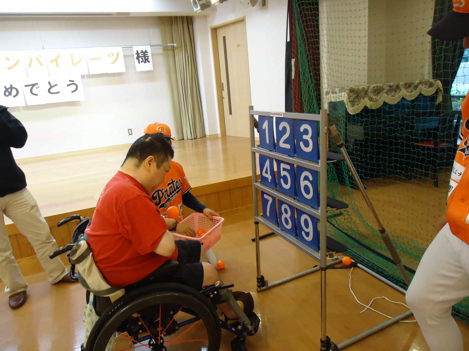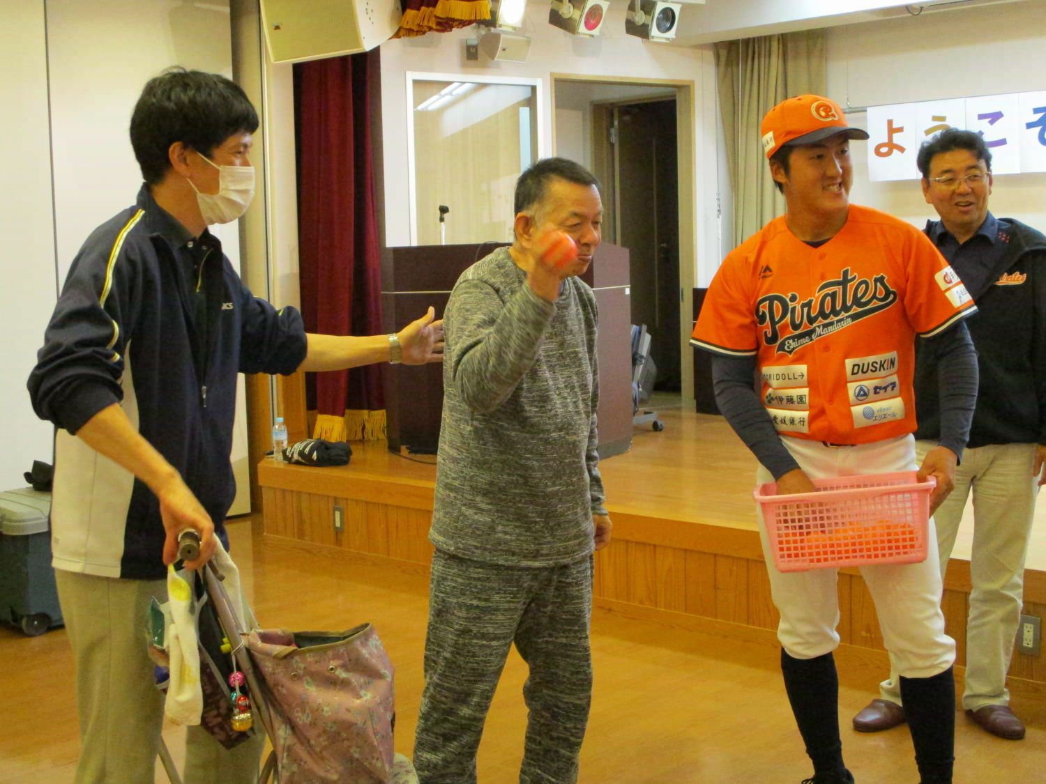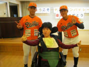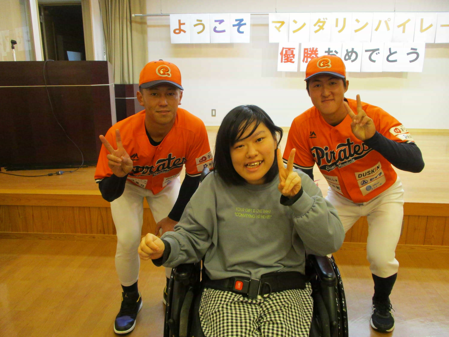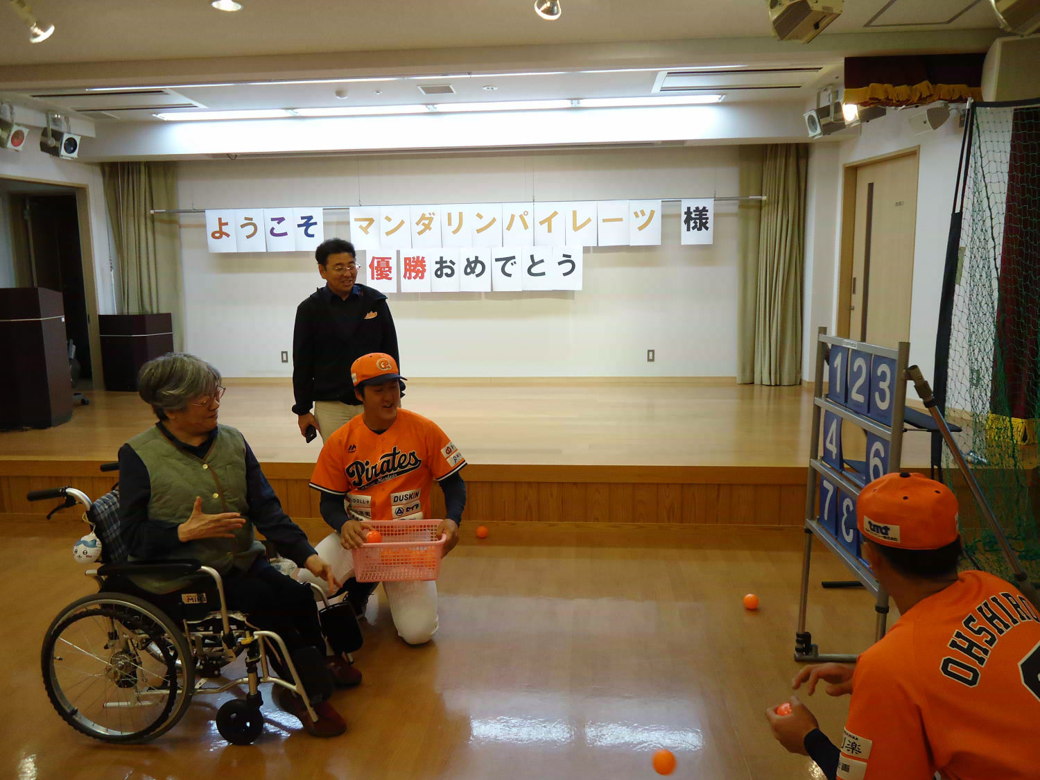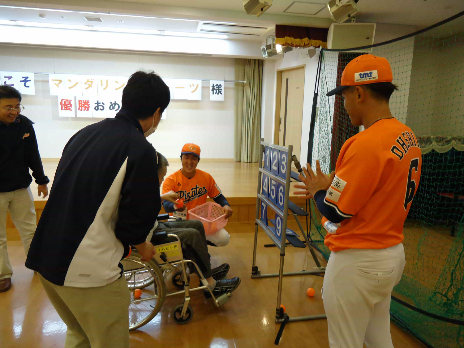 本日はマンダリンパイレーツの皆さんをお招きして、ストラックアウトに挑戦です!選手直々に手ほどきをしてもらうと見事に命中!このままスカウトされちゃうかも!?