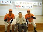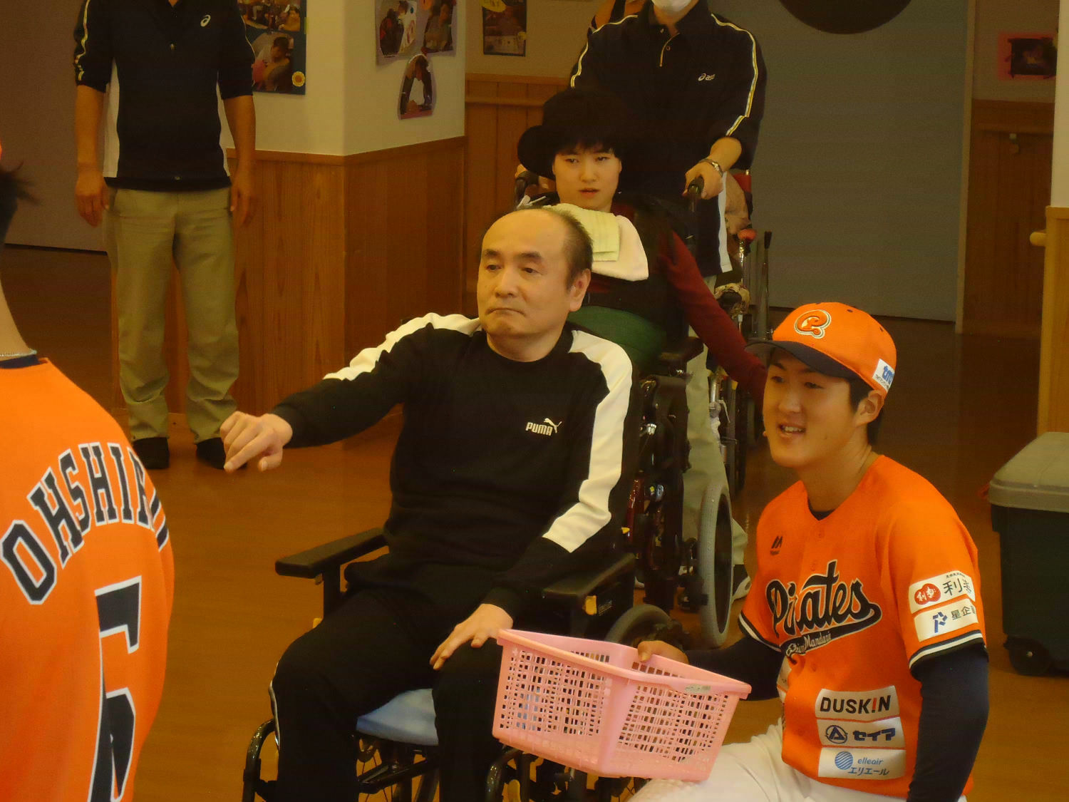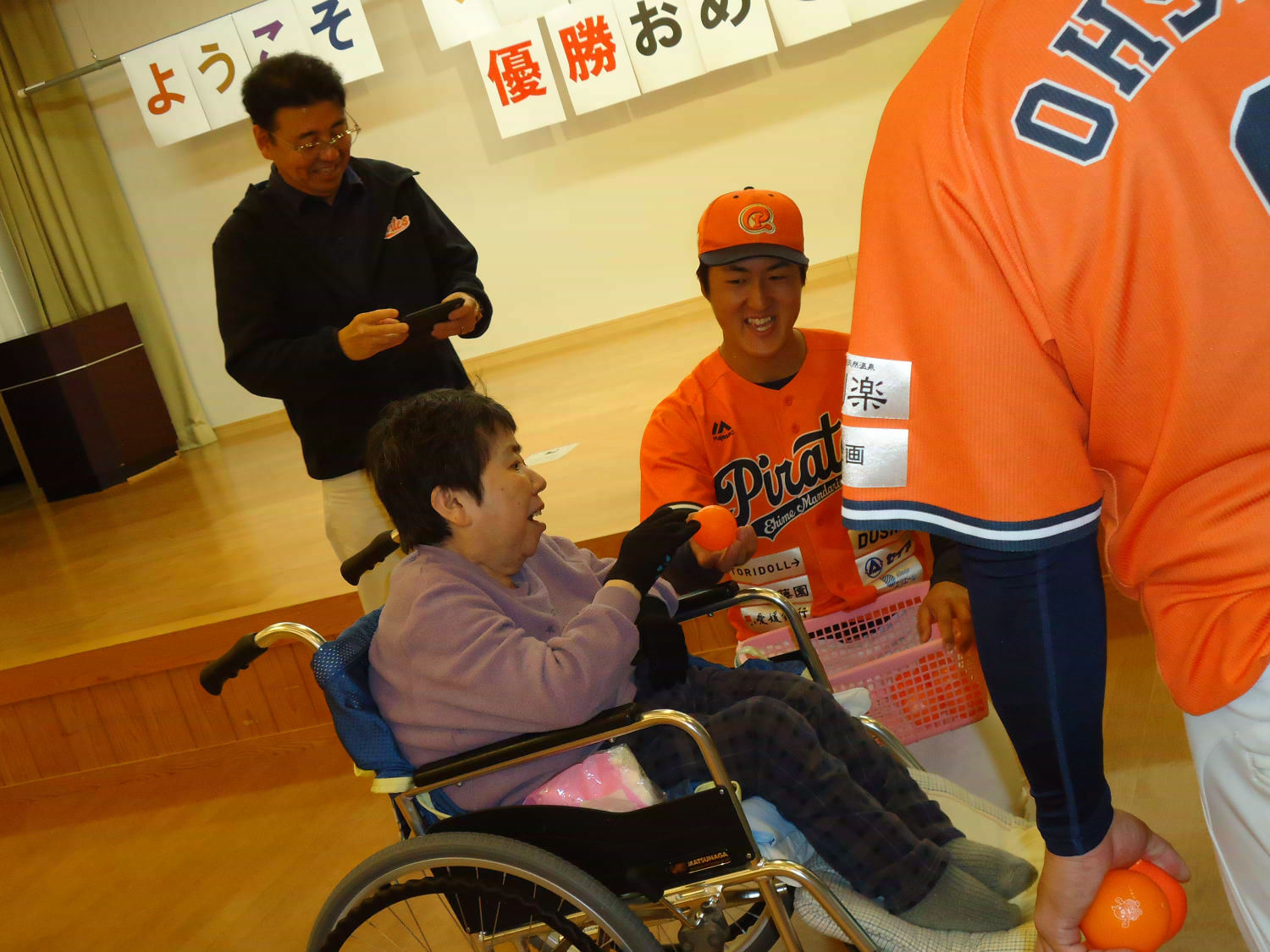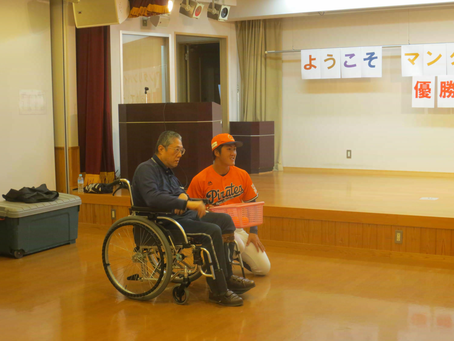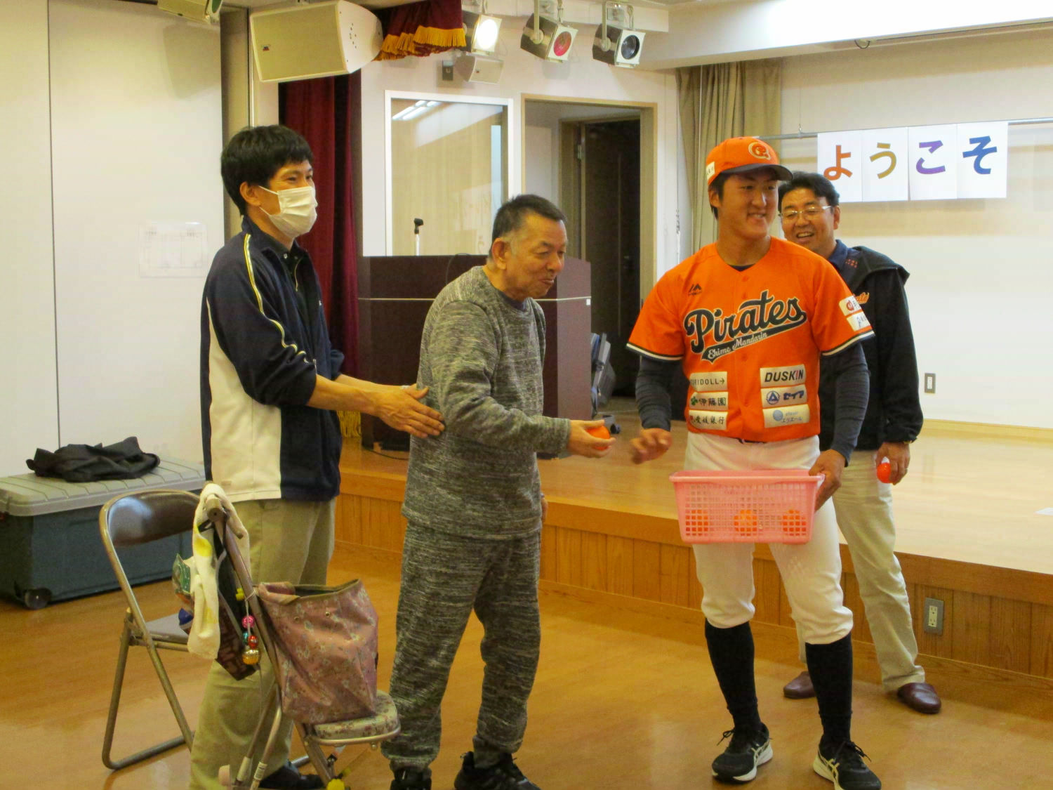 本日はマンダリンパイレーツの皆さんをお招きして、ストラックアウトに挑戦です!選手直々に手ほどきをしてもらうと見事に命中!このままスカウトされちゃうかも!?