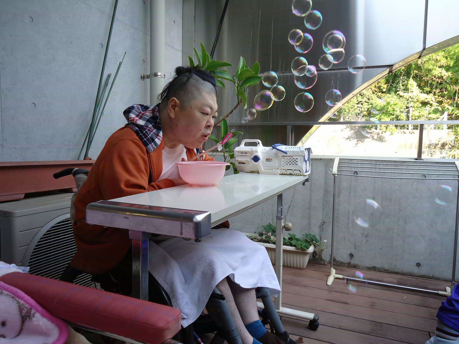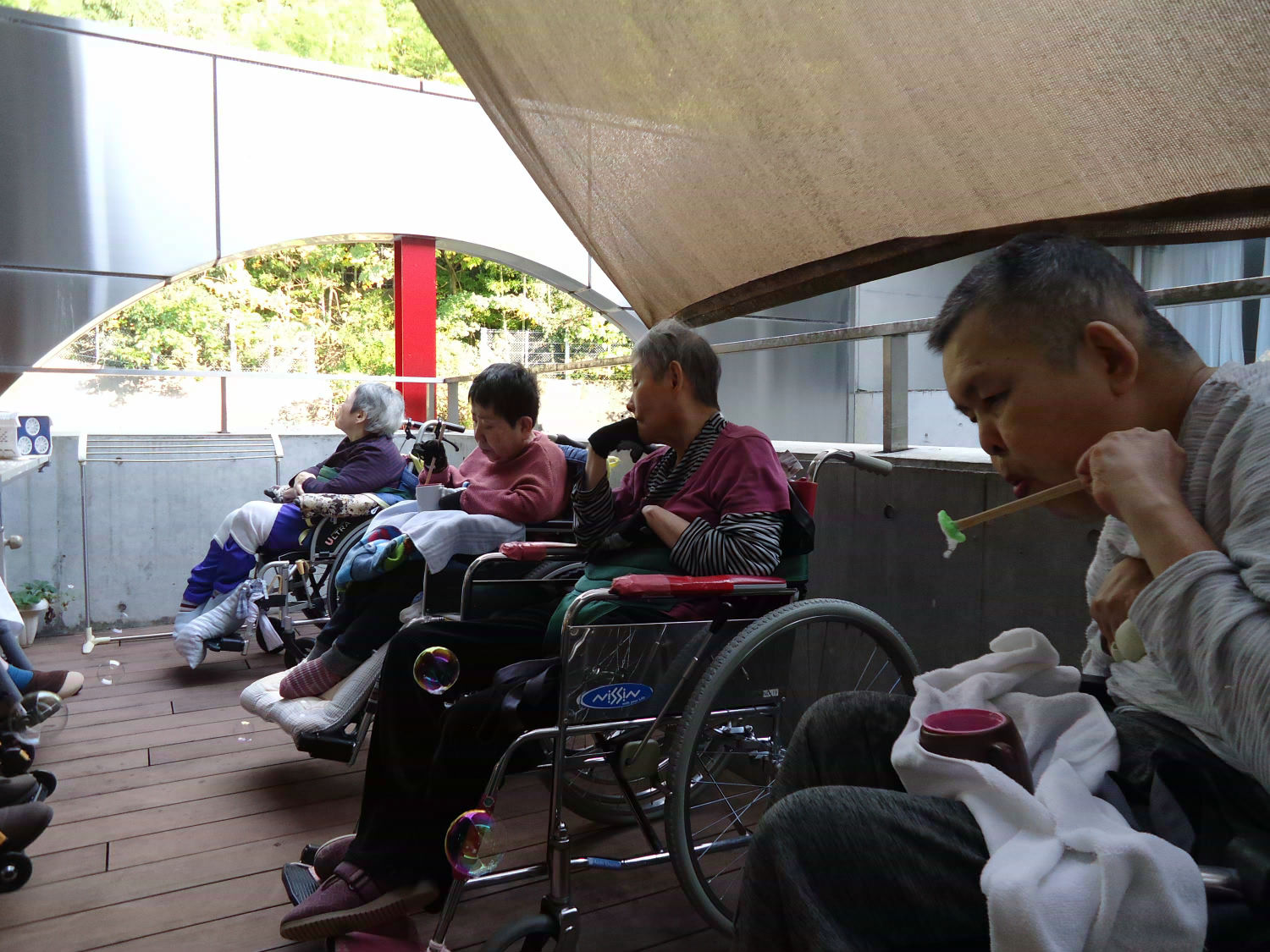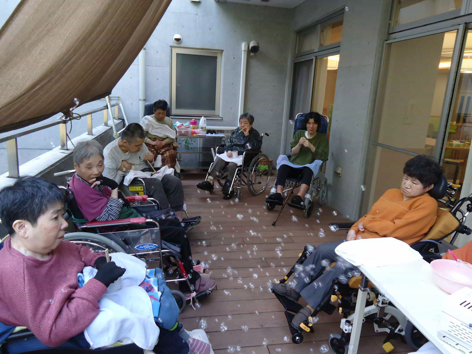 先日立冬を迎え、暦の上では冬だそうです。時折の暖かい日も残り惜しいので、今のうちにウッドデッキに出ましょう!前回の練習をいかして、大きなシャボン玉が飛ばせたかな?