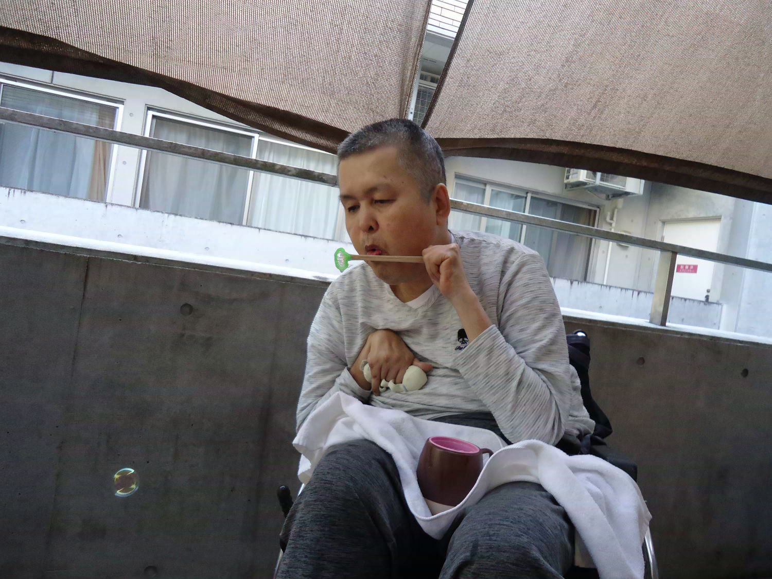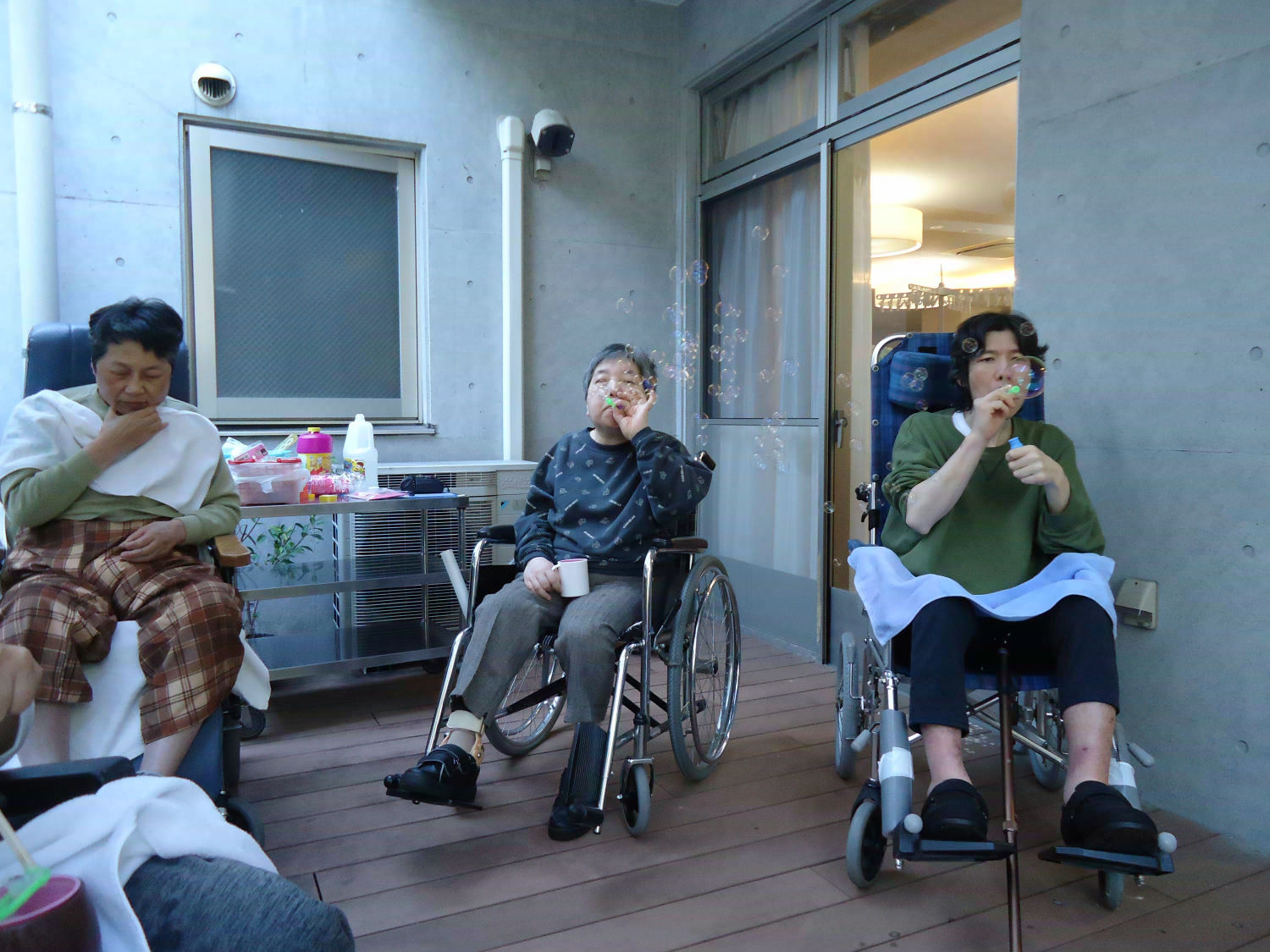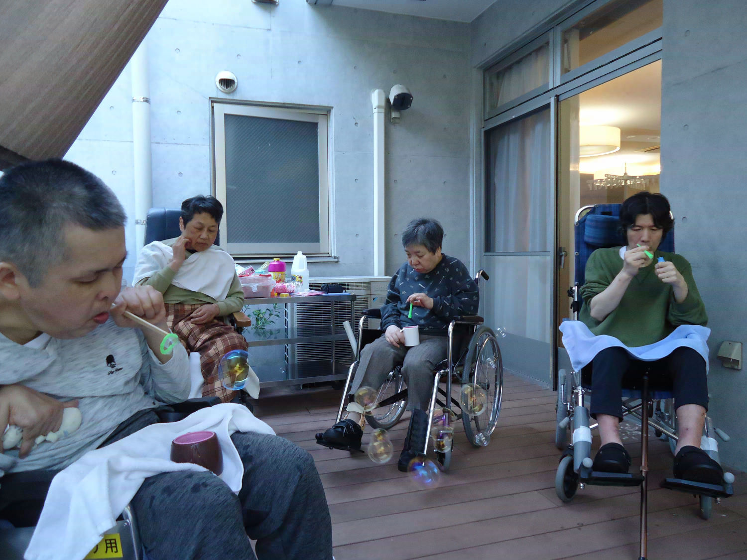 先日立冬を迎え、暦の上では冬だそうです。時折の暖かい日も残り惜しいので、今のうちにウッドデッキに出ましょう!前回の練習をいかして、大きなシャボン玉が飛ばせたかな?