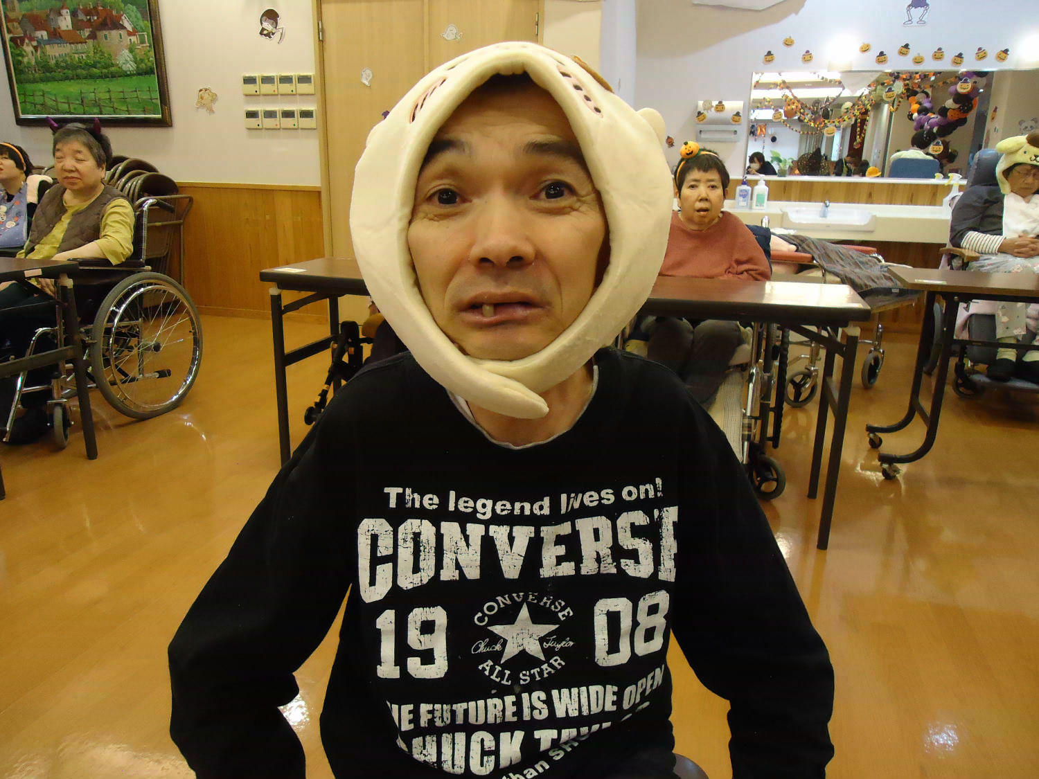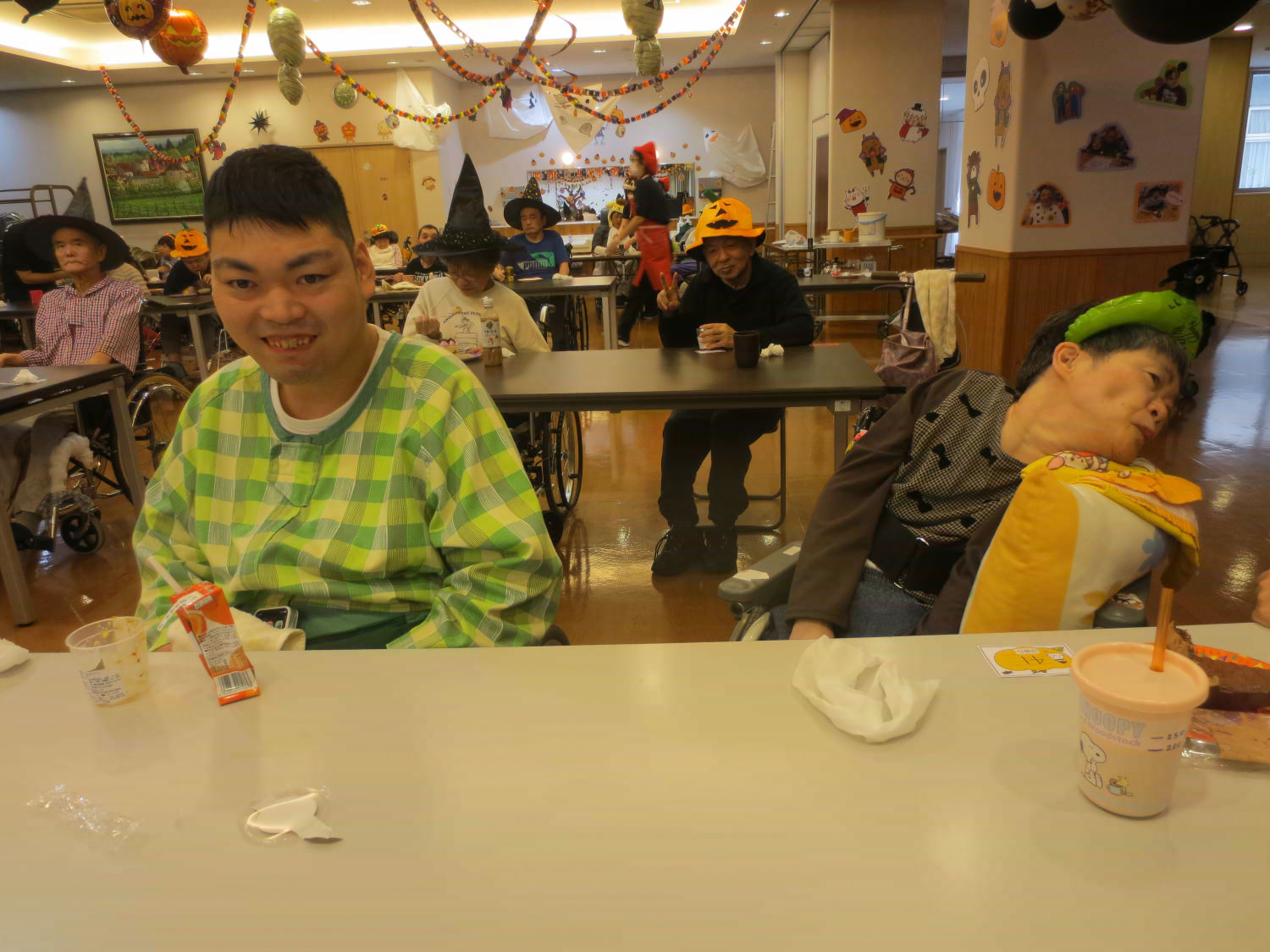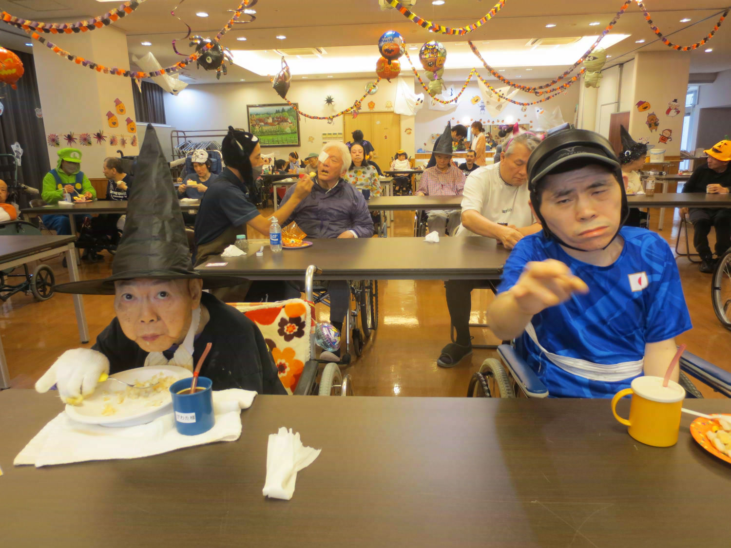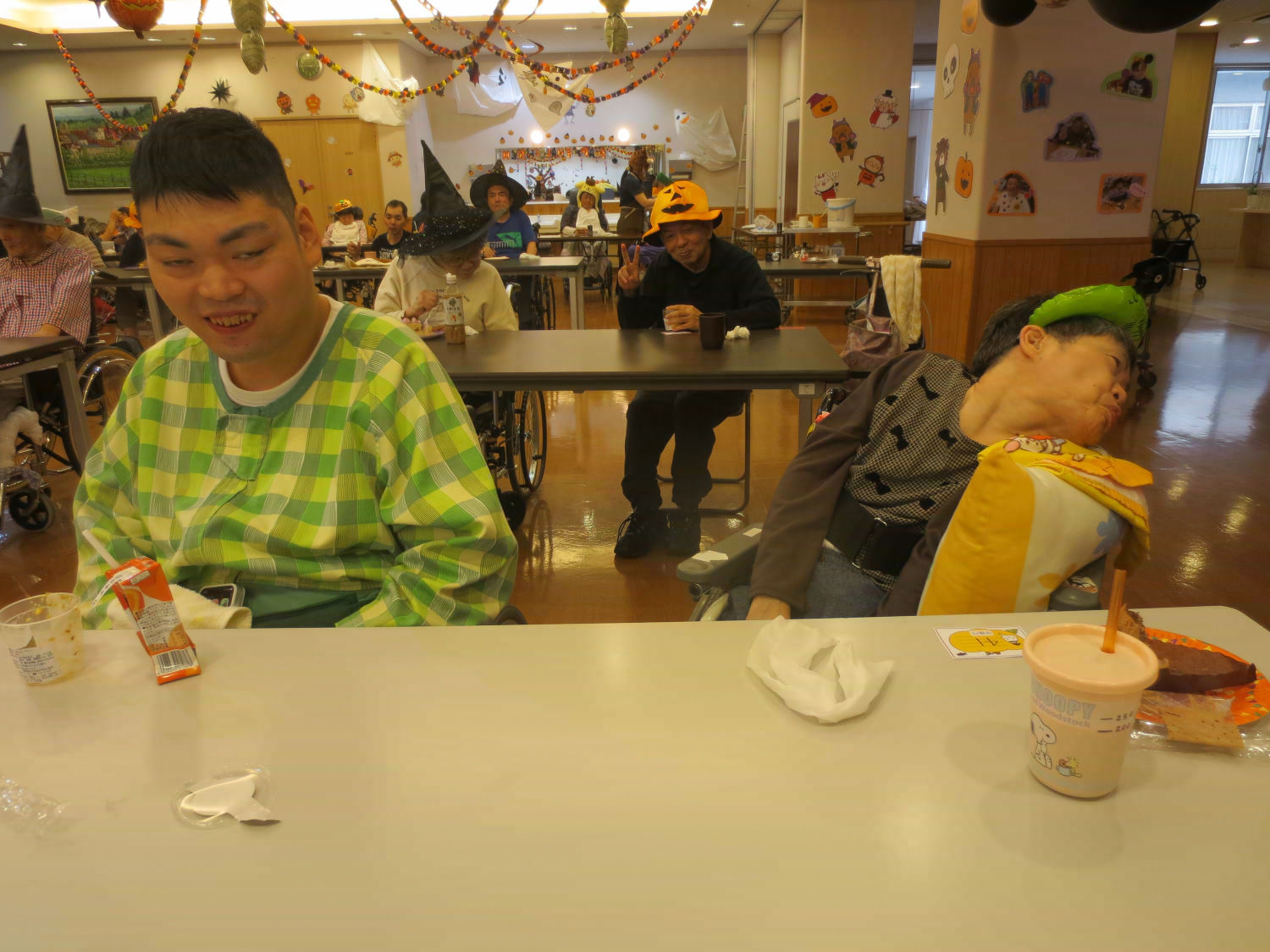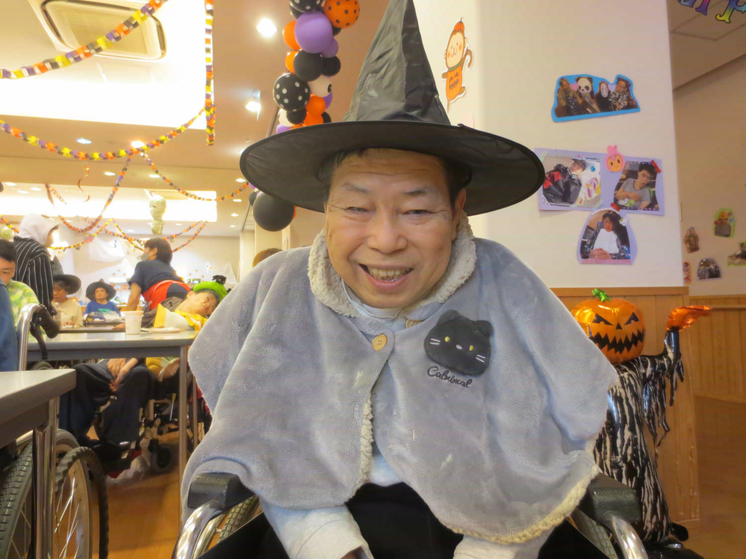 みんなバッチリ仮装をきめて、ハロウィンパーティーの始まりです。早速、利用者さんが大きな声で、