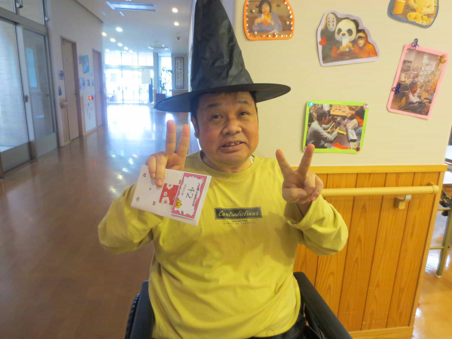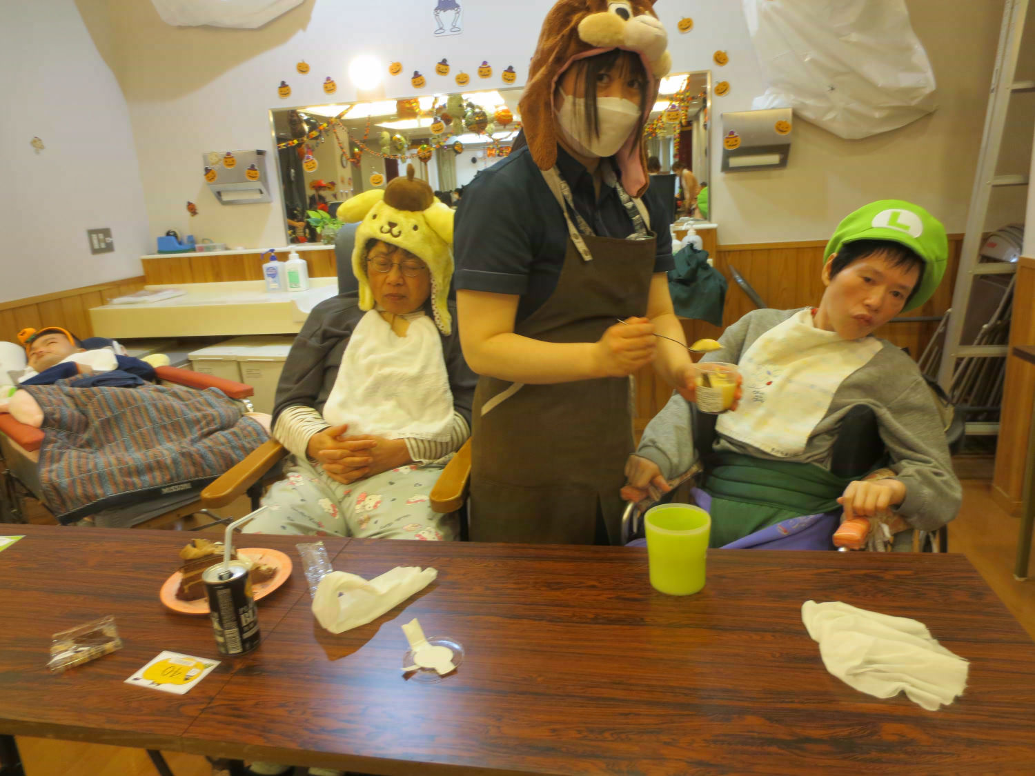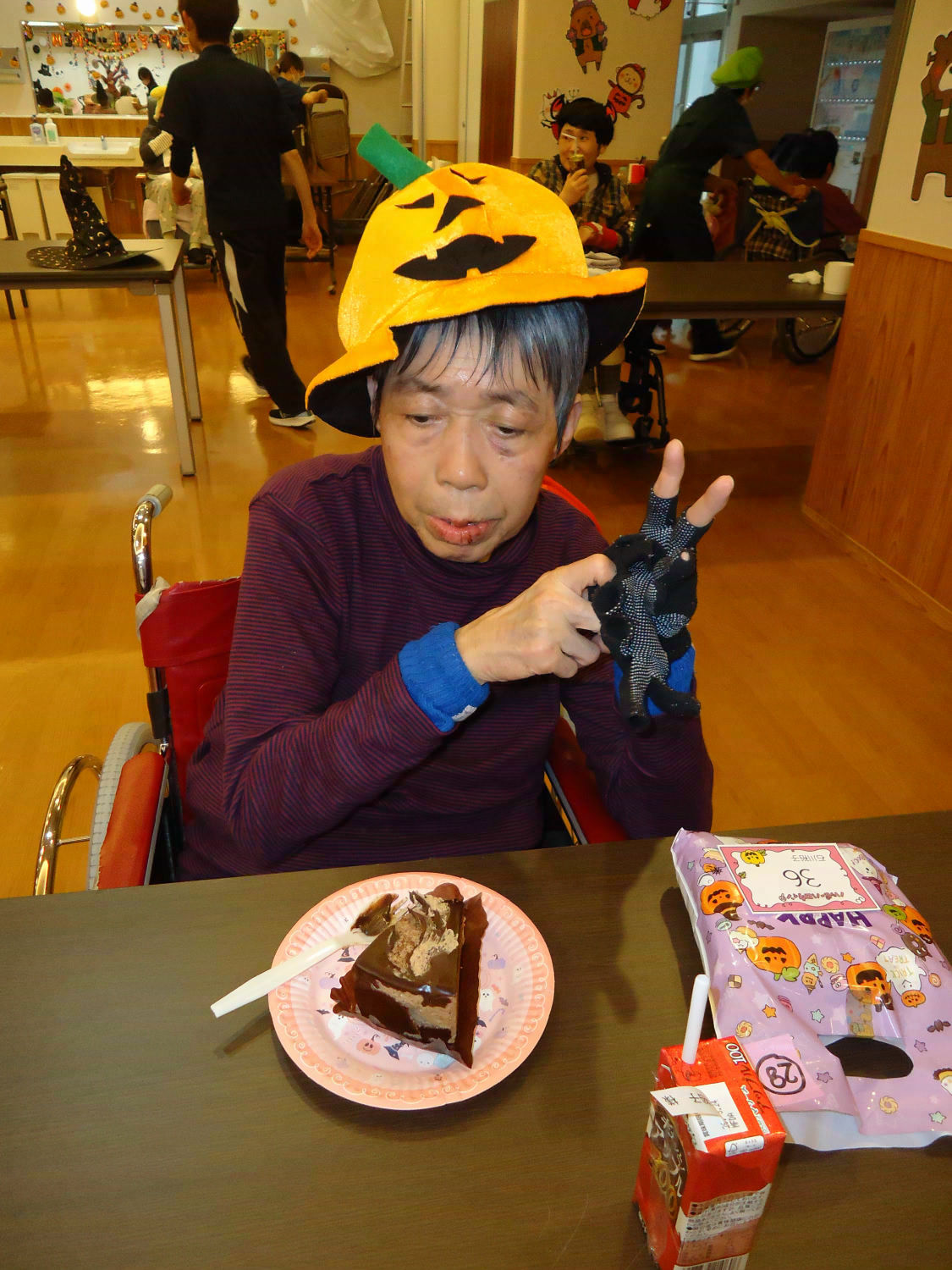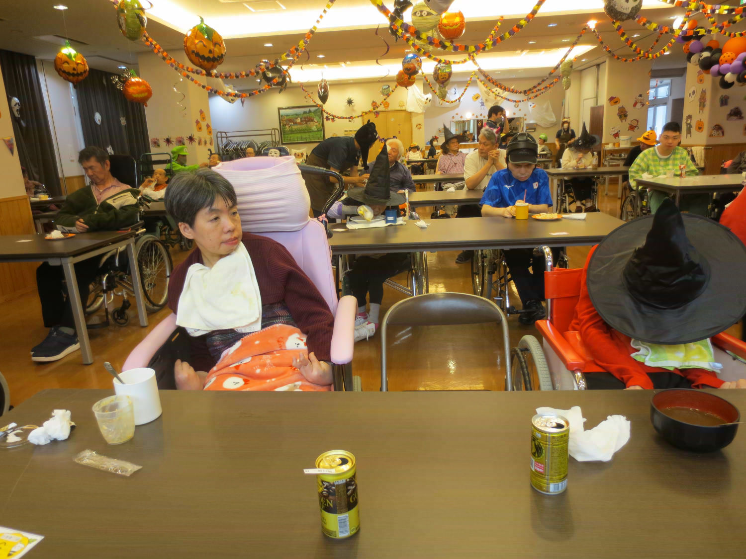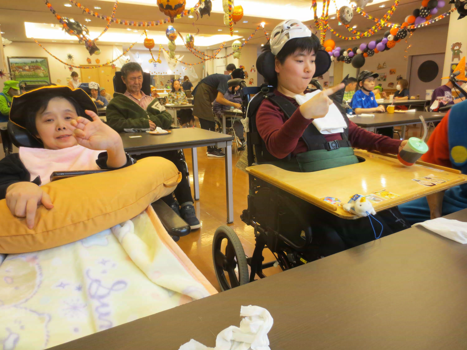 みんなバッチリ仮装をきめて、ハロウィンパーティーの始まりです。早速、利用者さんが大きな声で、