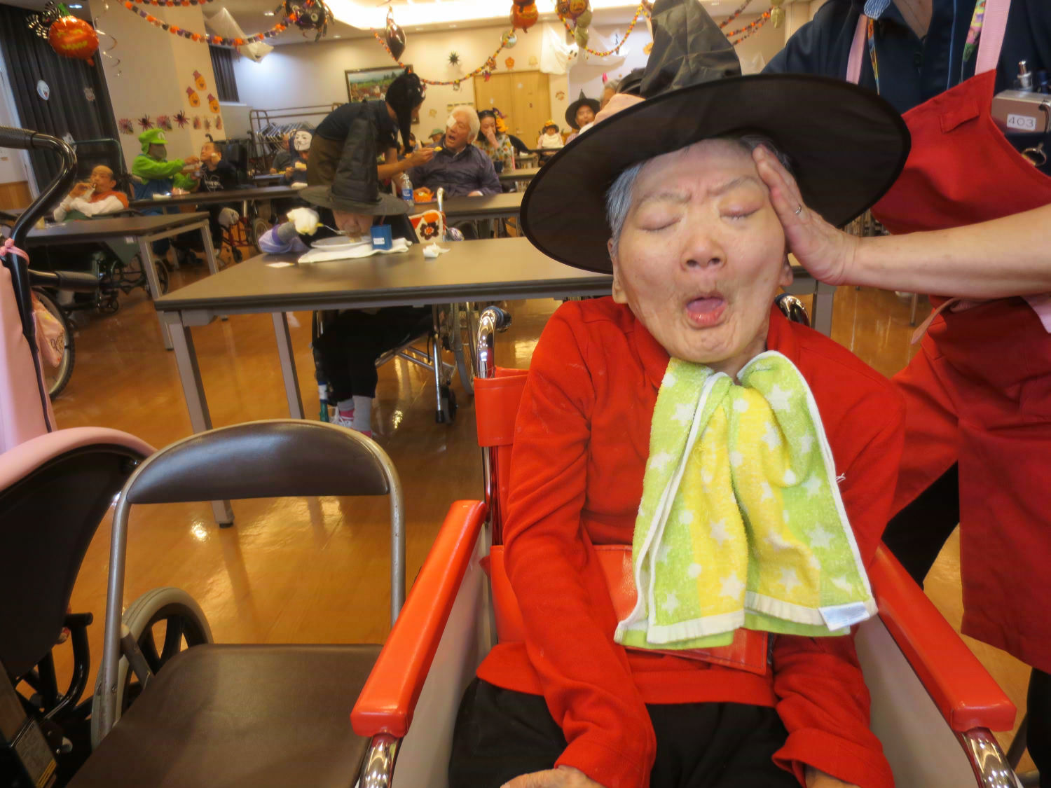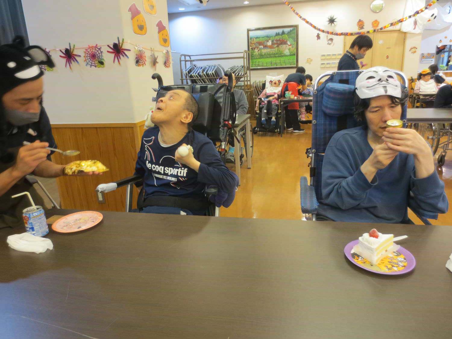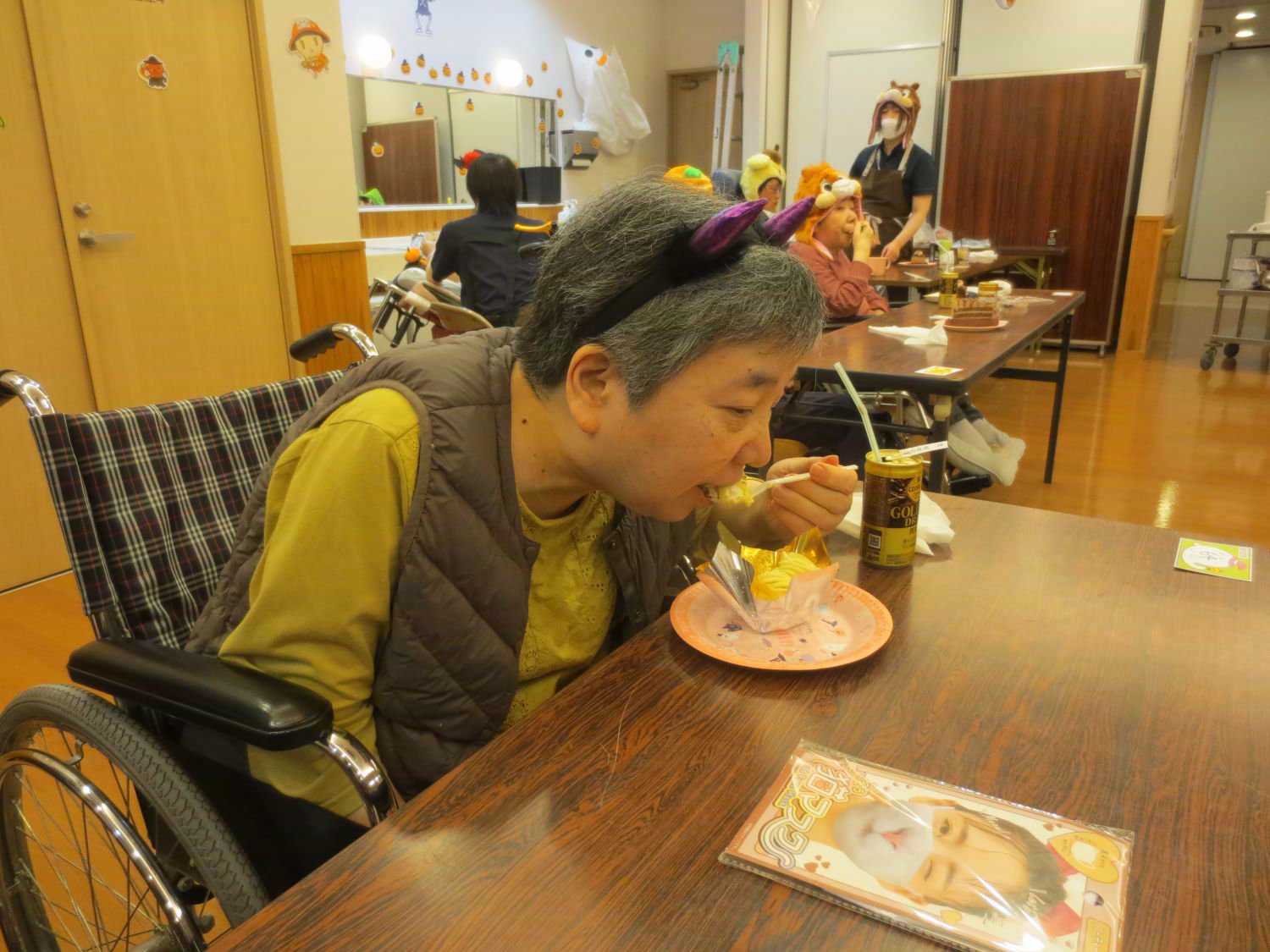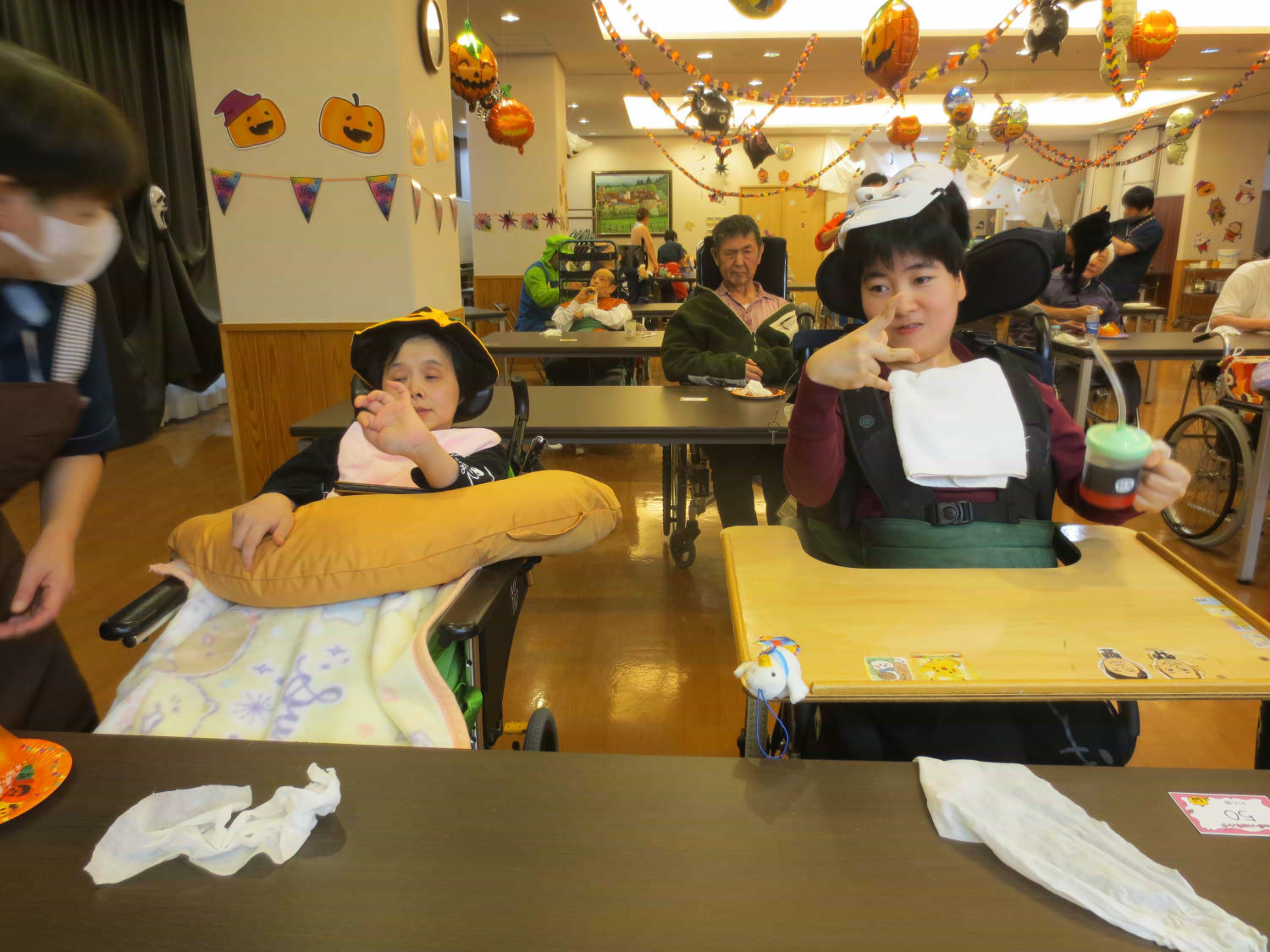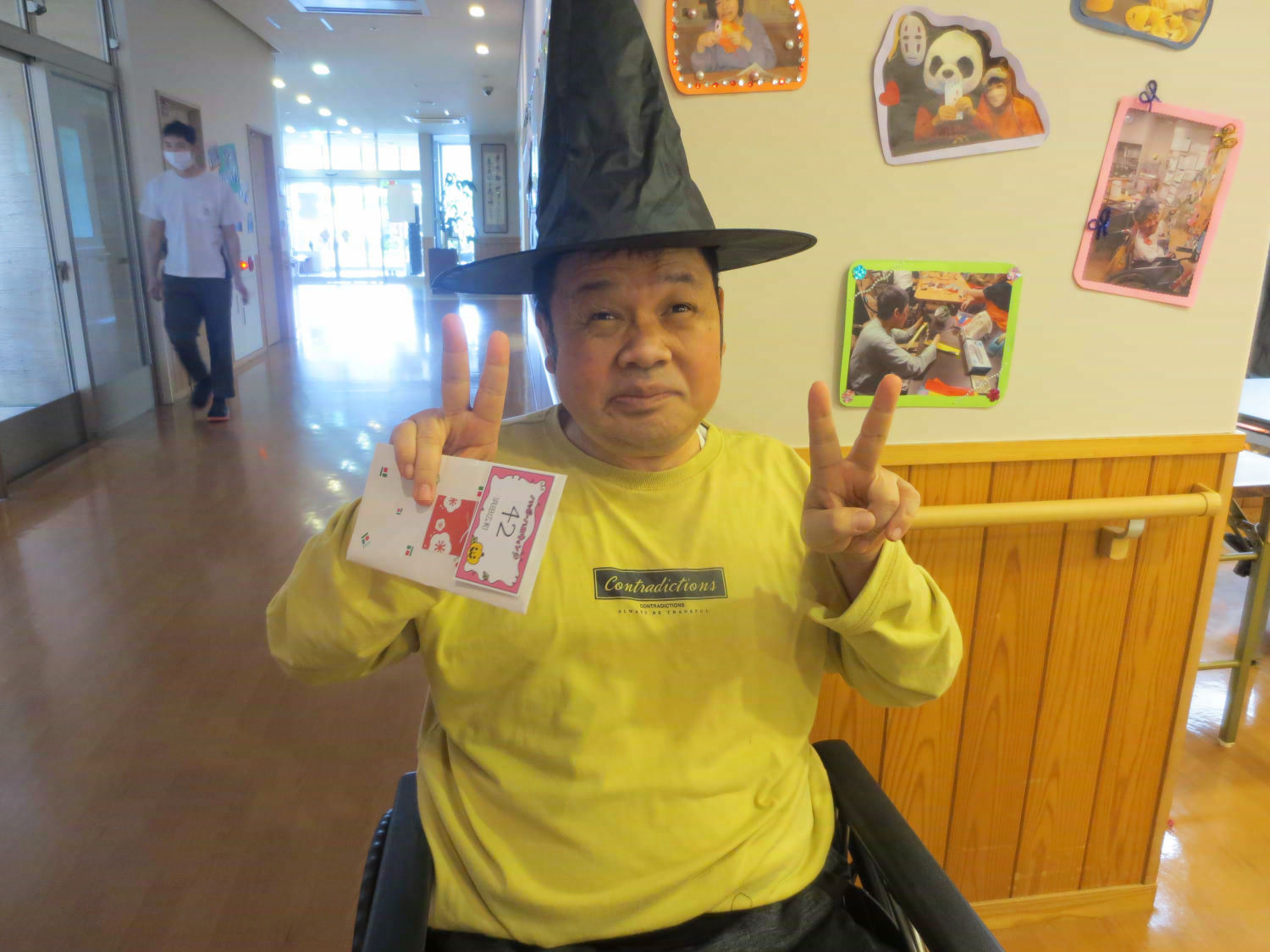 みんなバッチリ仮装をきめて、ハロウィンパーティーの始まりです。早速、利用者さんが大きな声で、