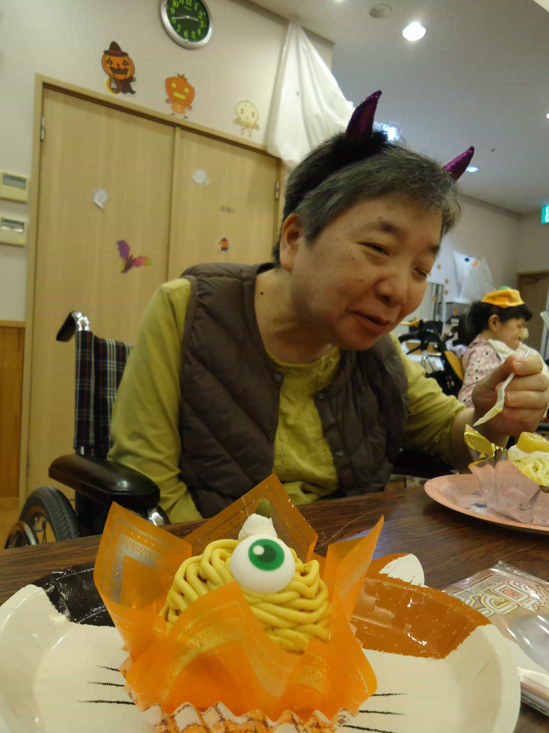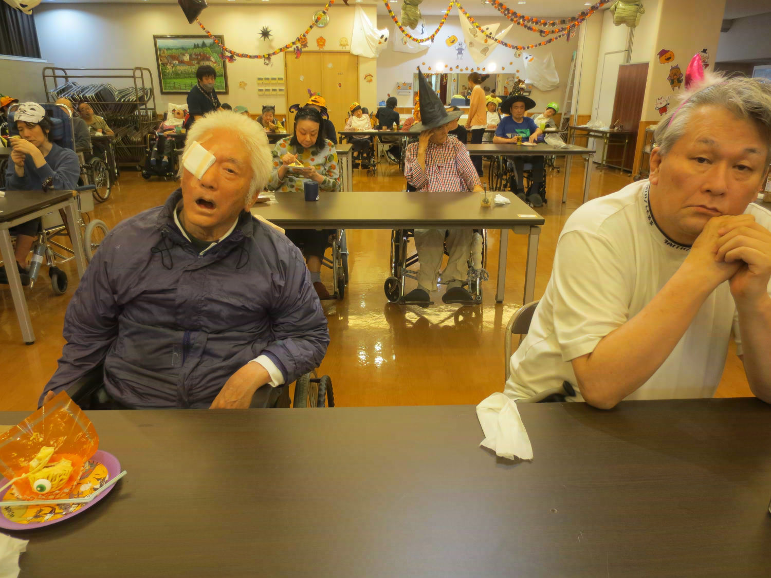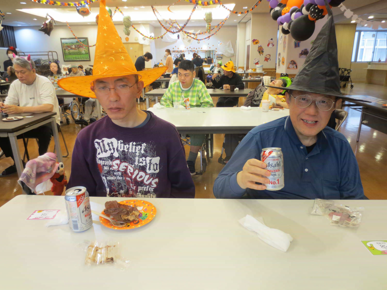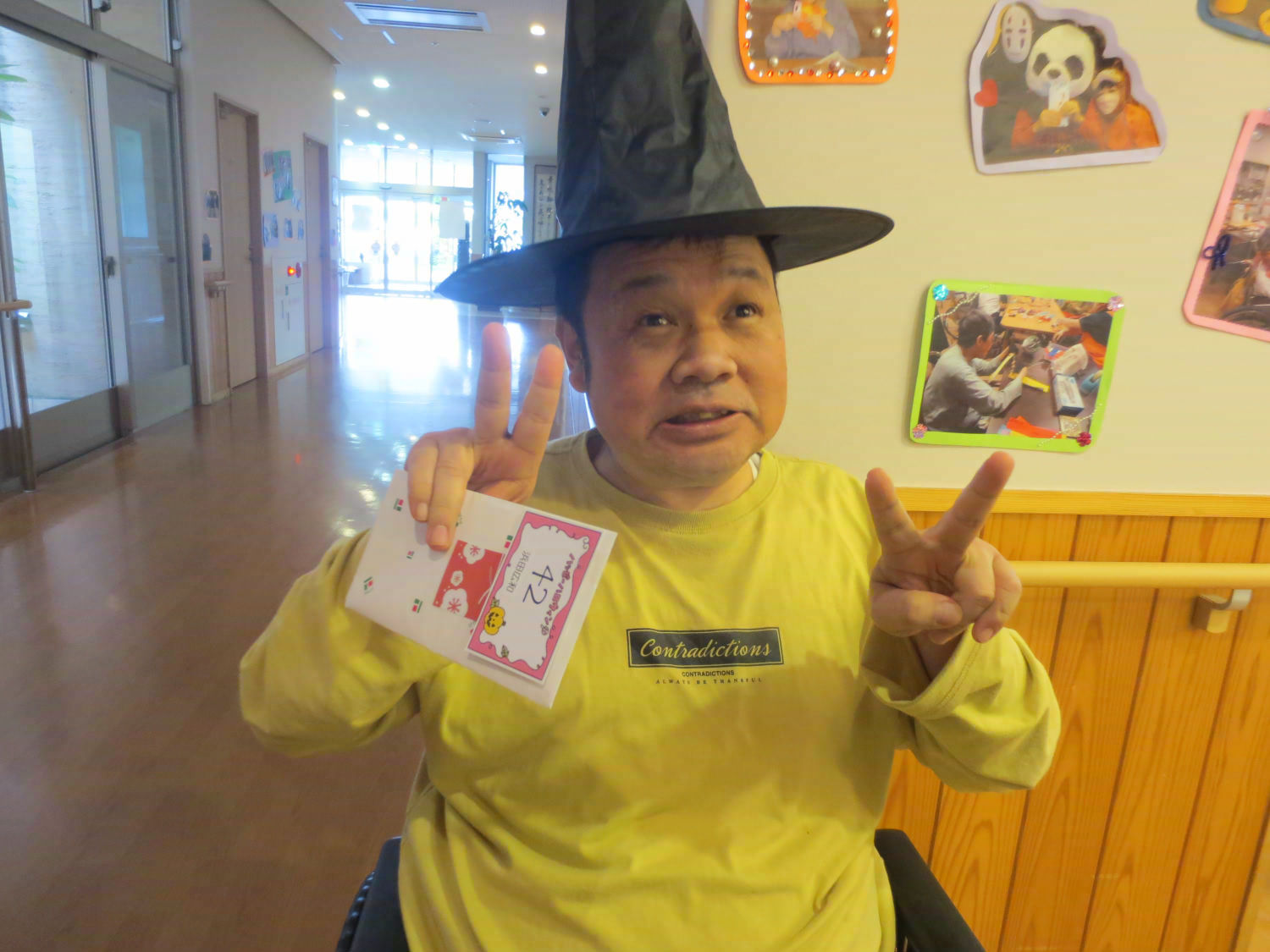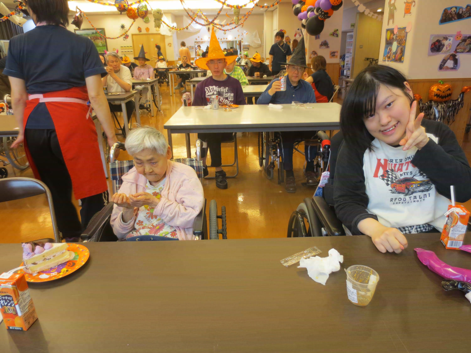 みんなバッチリ仮装をきめて、ハロウィンパーティーの始まりです。早速、利用者さんが大きな声で、