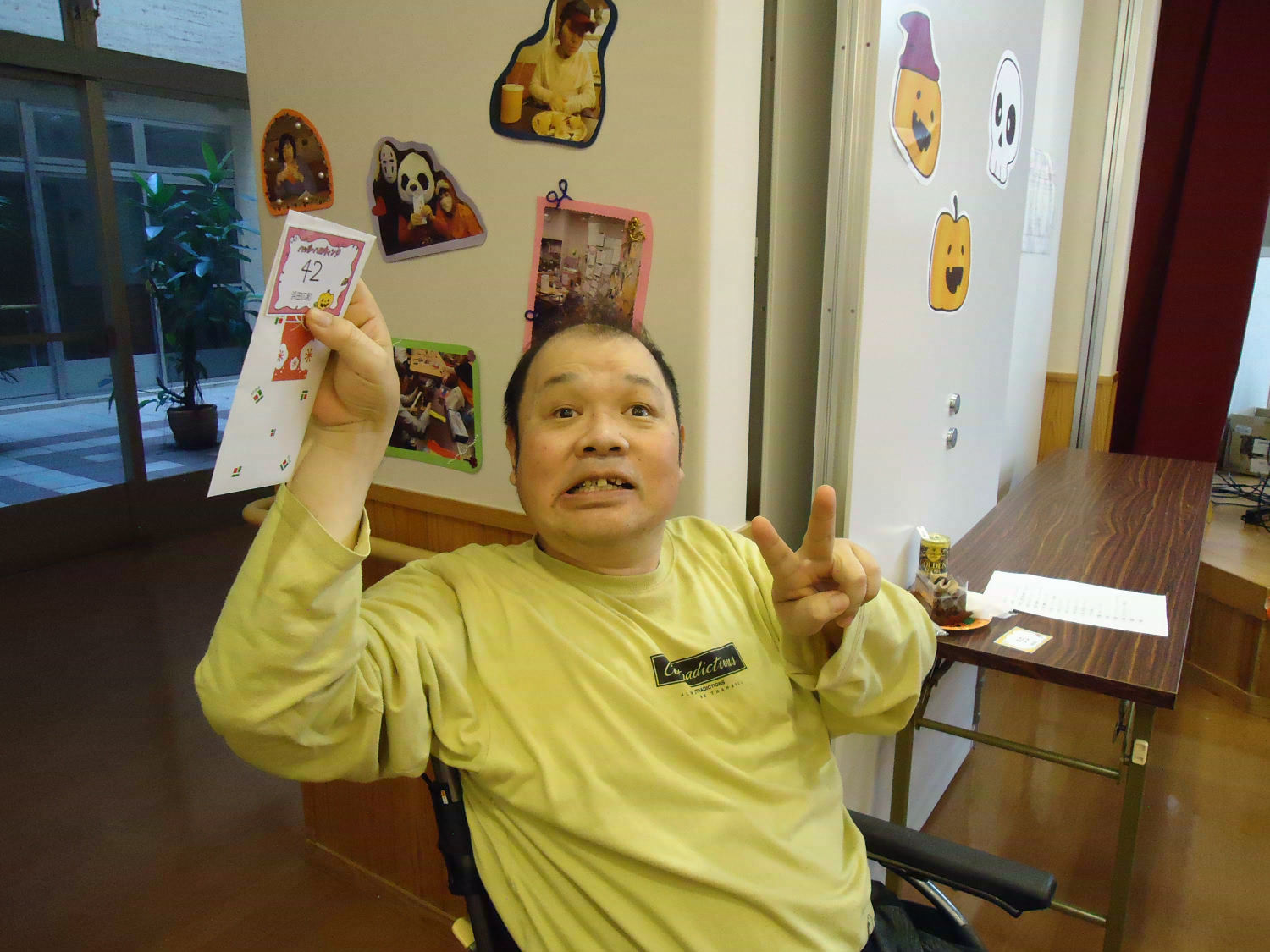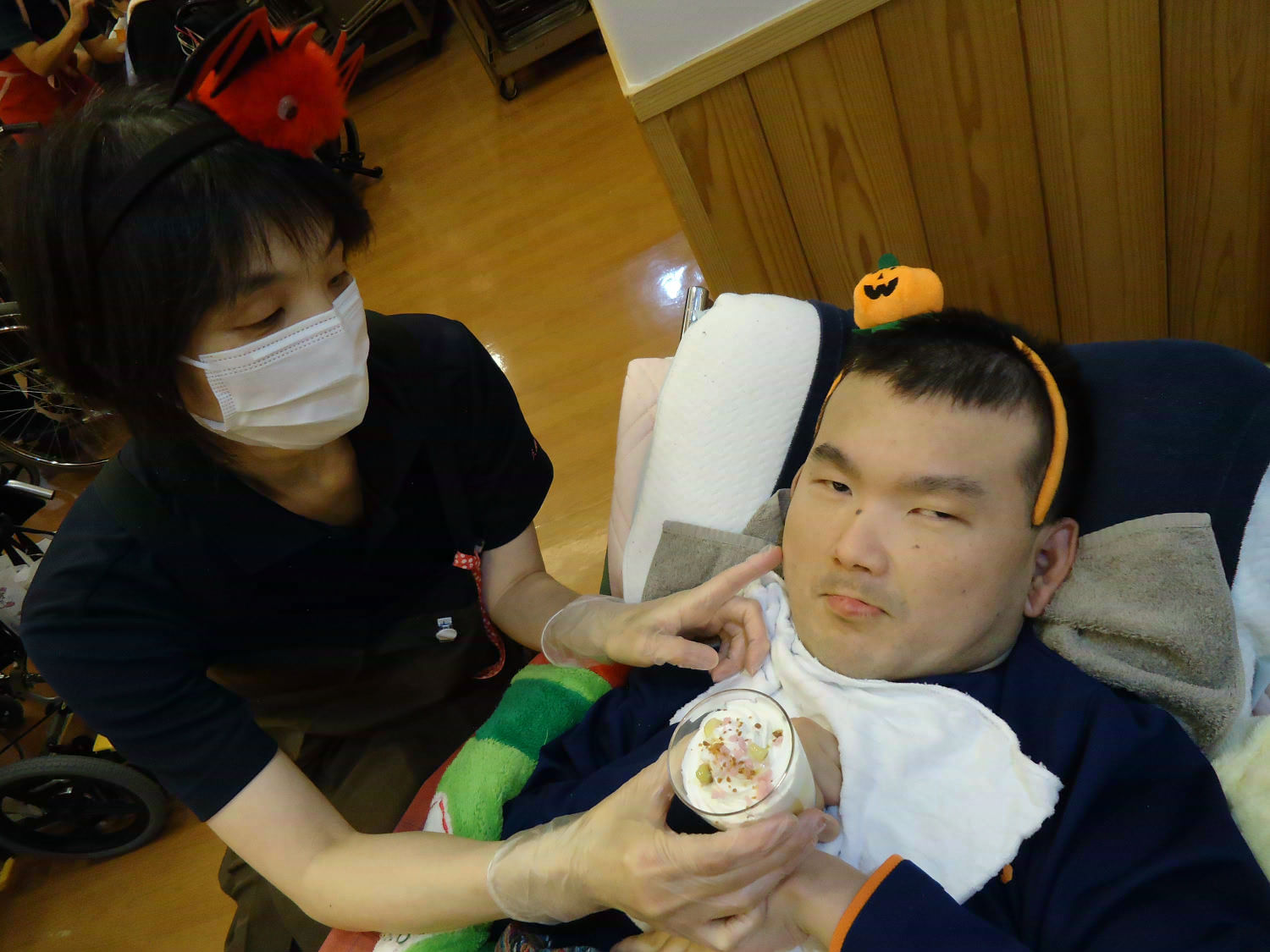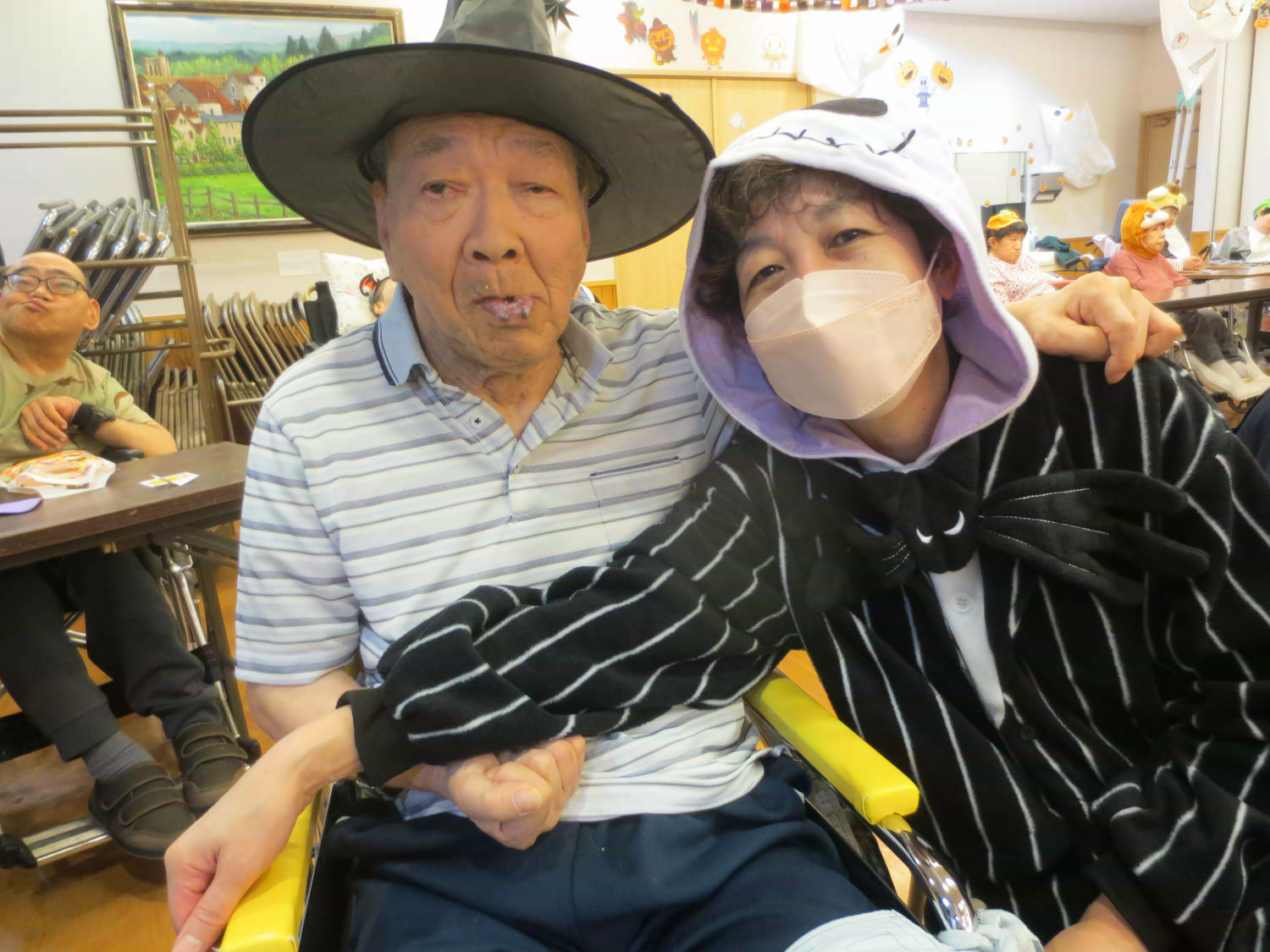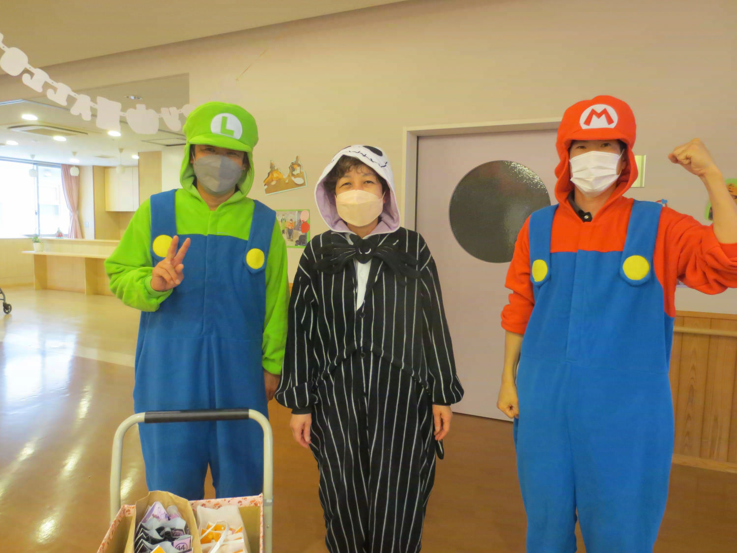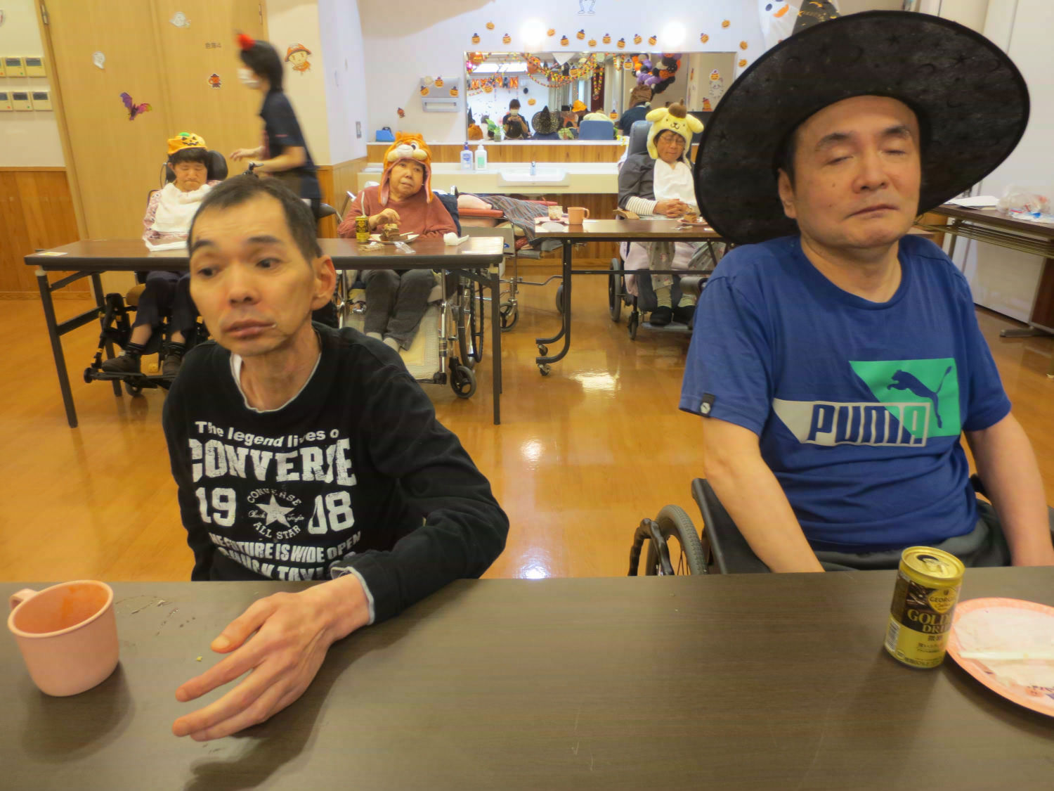 みんなバッチリ仮装をきめて、ハロウィンパーティーの始まりです。早速、利用者さんが大きな声で、