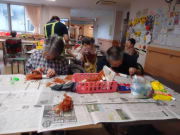 真剣な顔で何を作っているのかな……あ!可愛い虫さんたちですね!トンボにミノムシ、秋の足音が近づいてきますね♪
