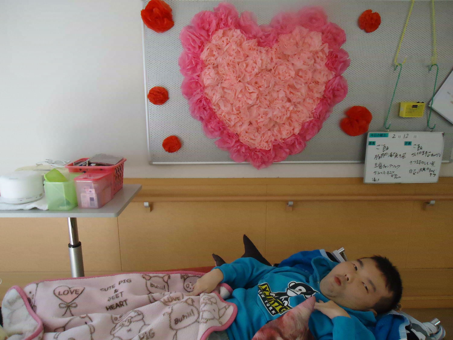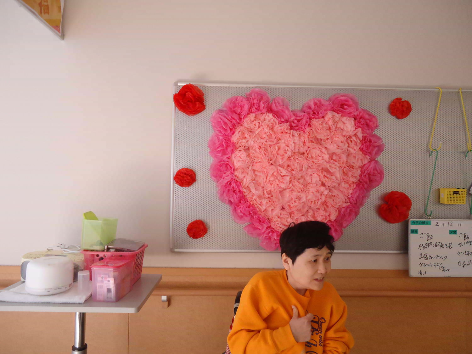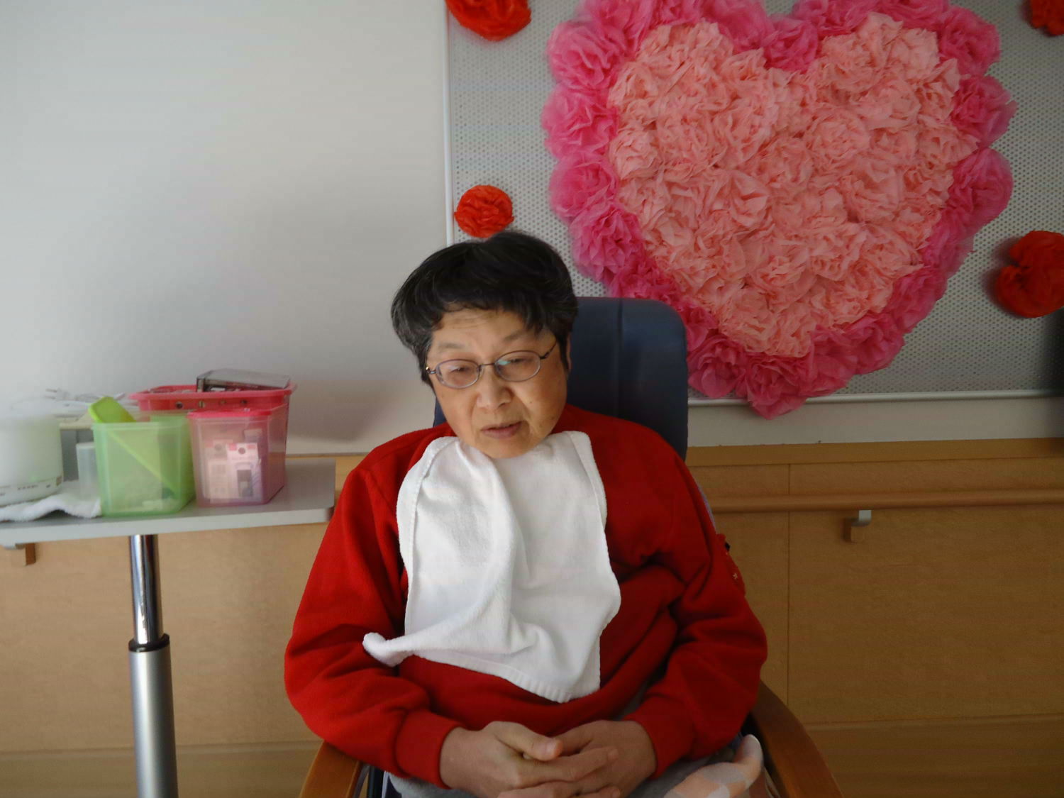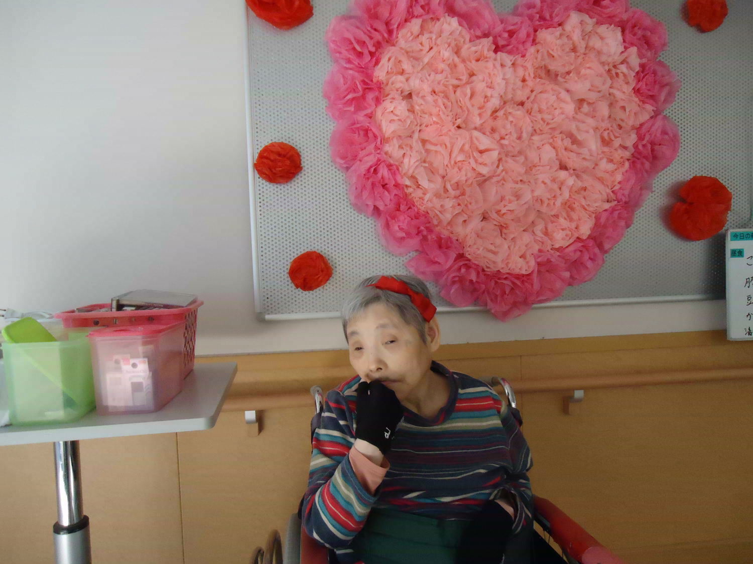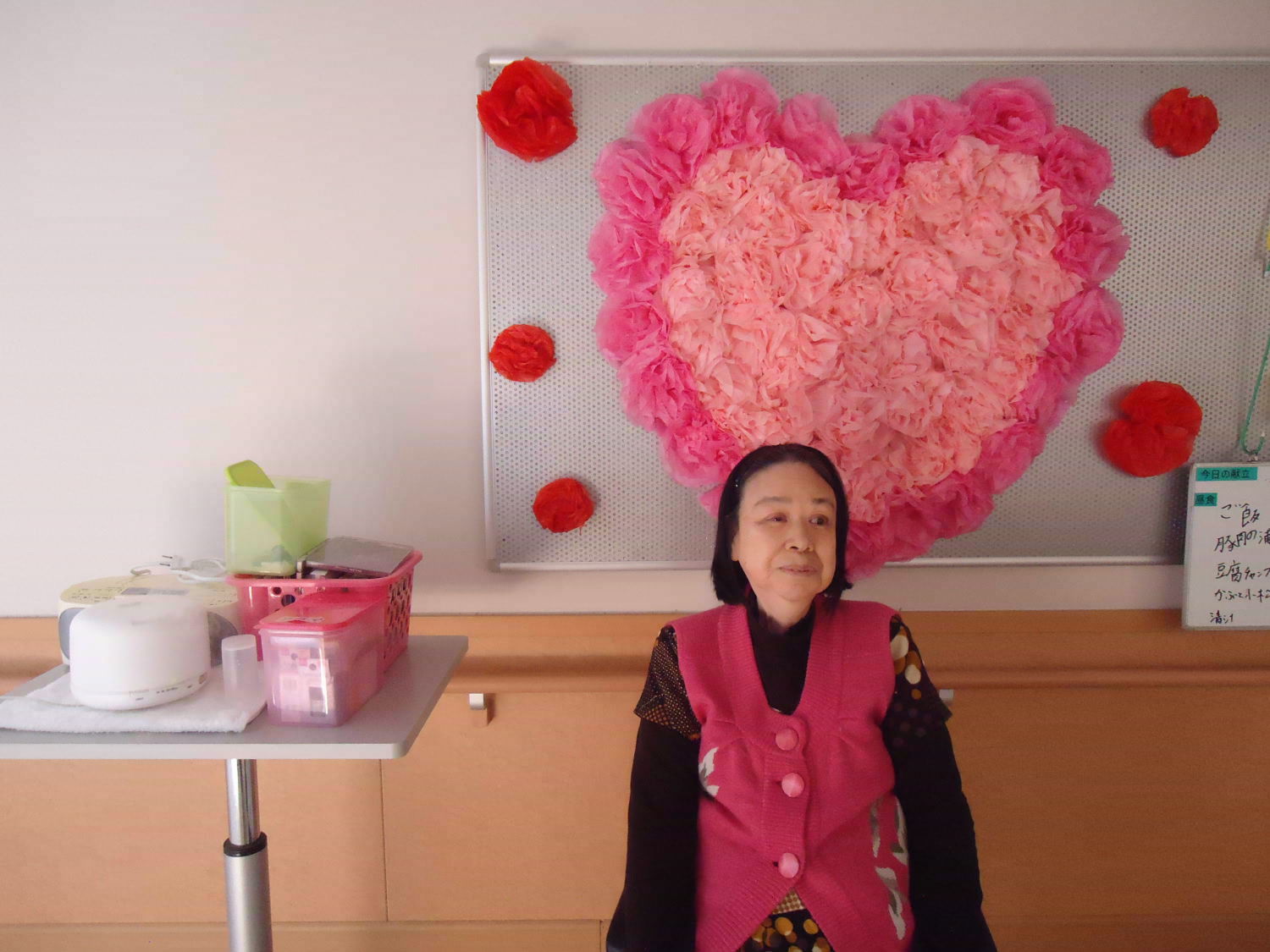 良い香りにうっとり…かと思えば、皆さん今日はしっかりと起きていますね!どうやら、以前に作った作品が飾られたようです。作品の感想を語らいつつ、アロマセラピーを楽しまれていました。