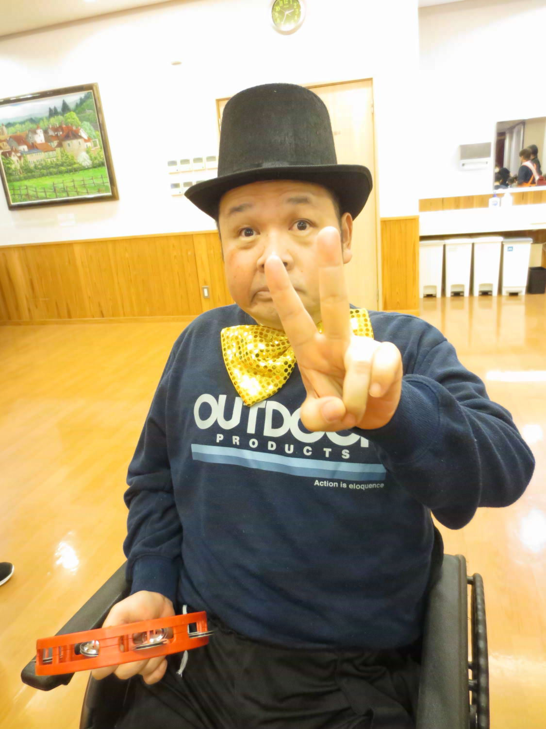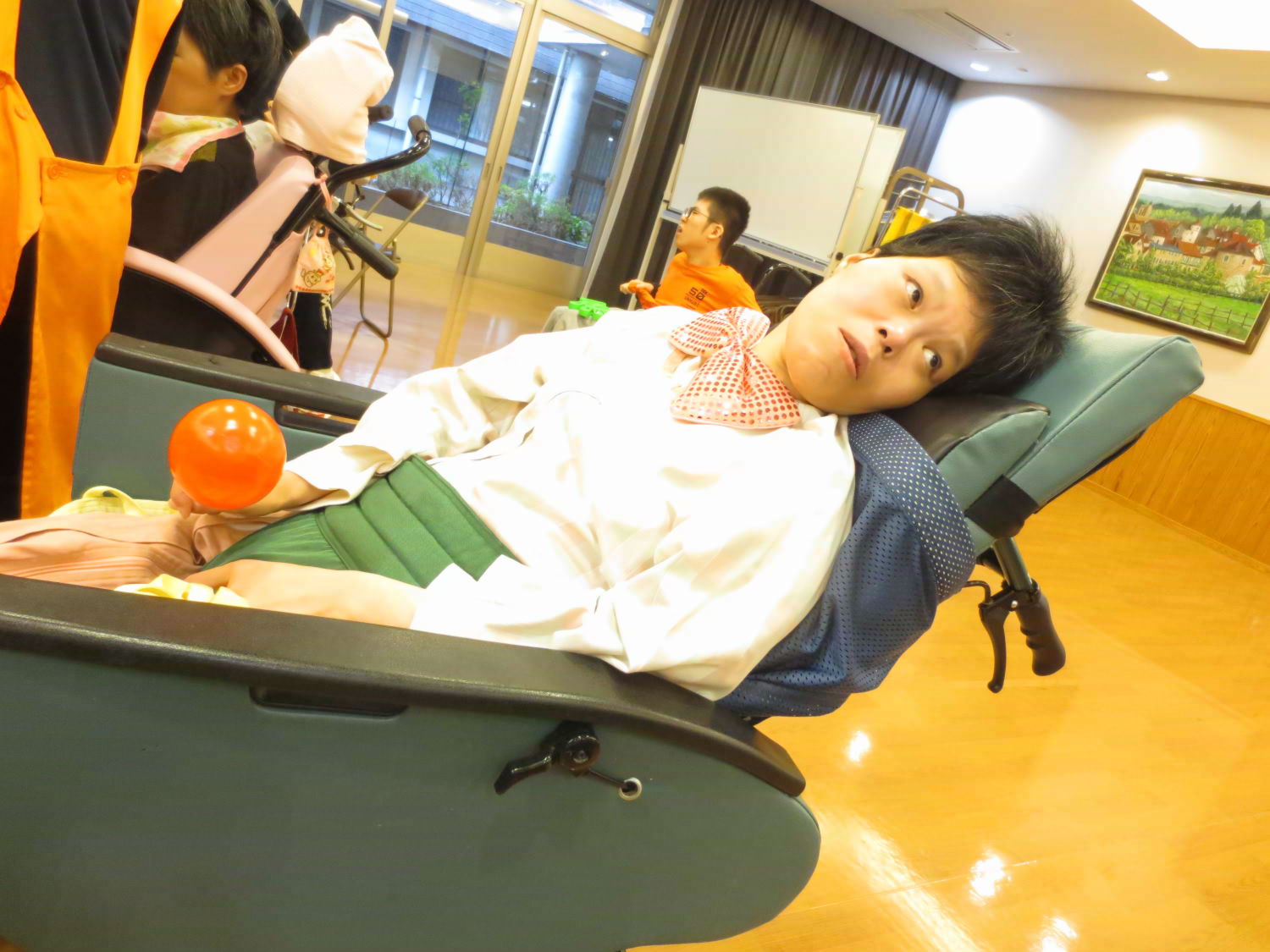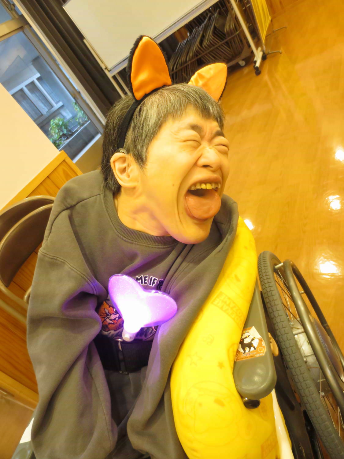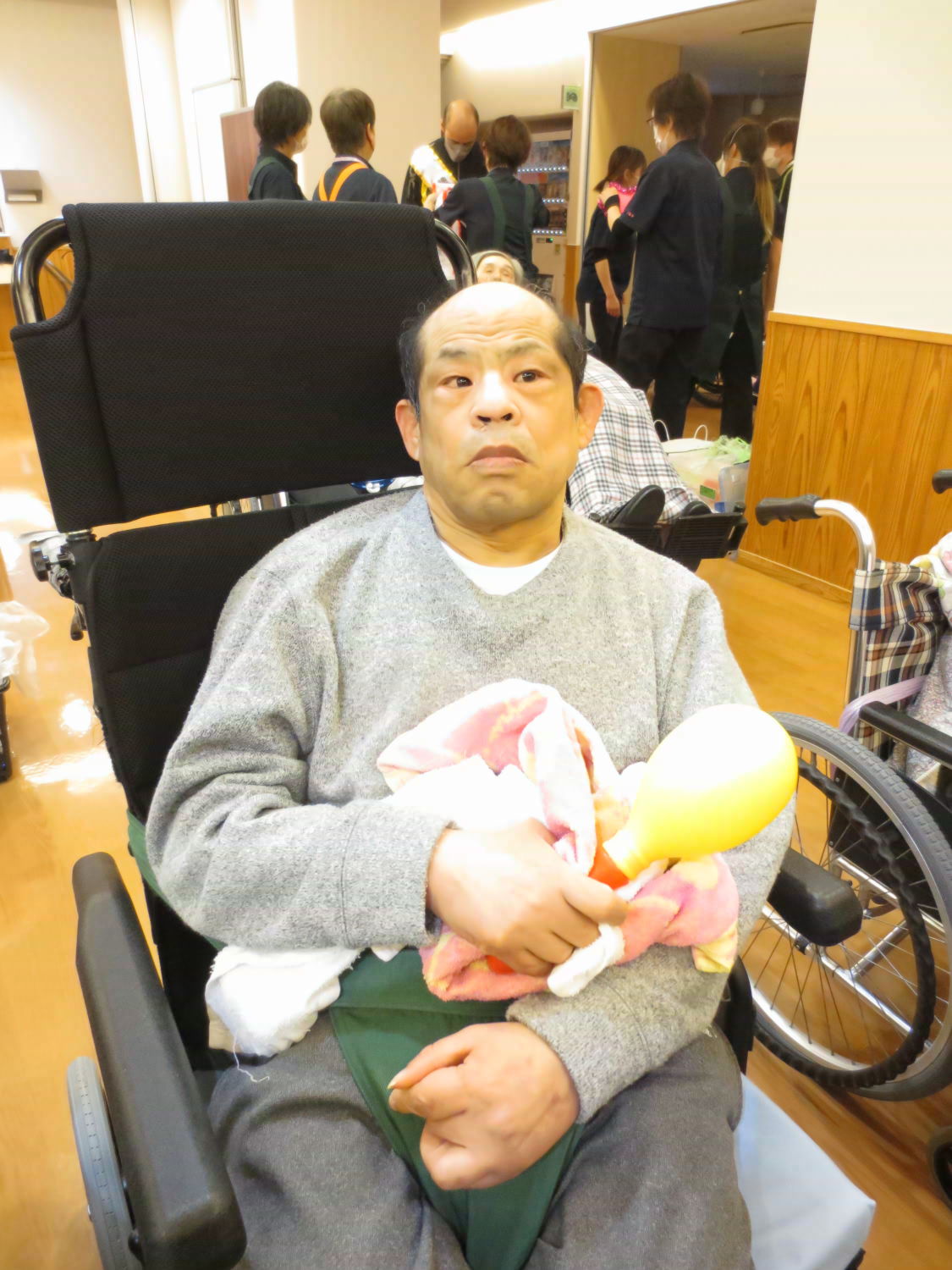 本日は利用者様の自治会である「あゆみ会」が主催するカラオケ大会がありました!いつもは利用者様の歌声を聴いている職員ですが、本日は立場が逆転!舞台に立って、歌声を披露しました♪