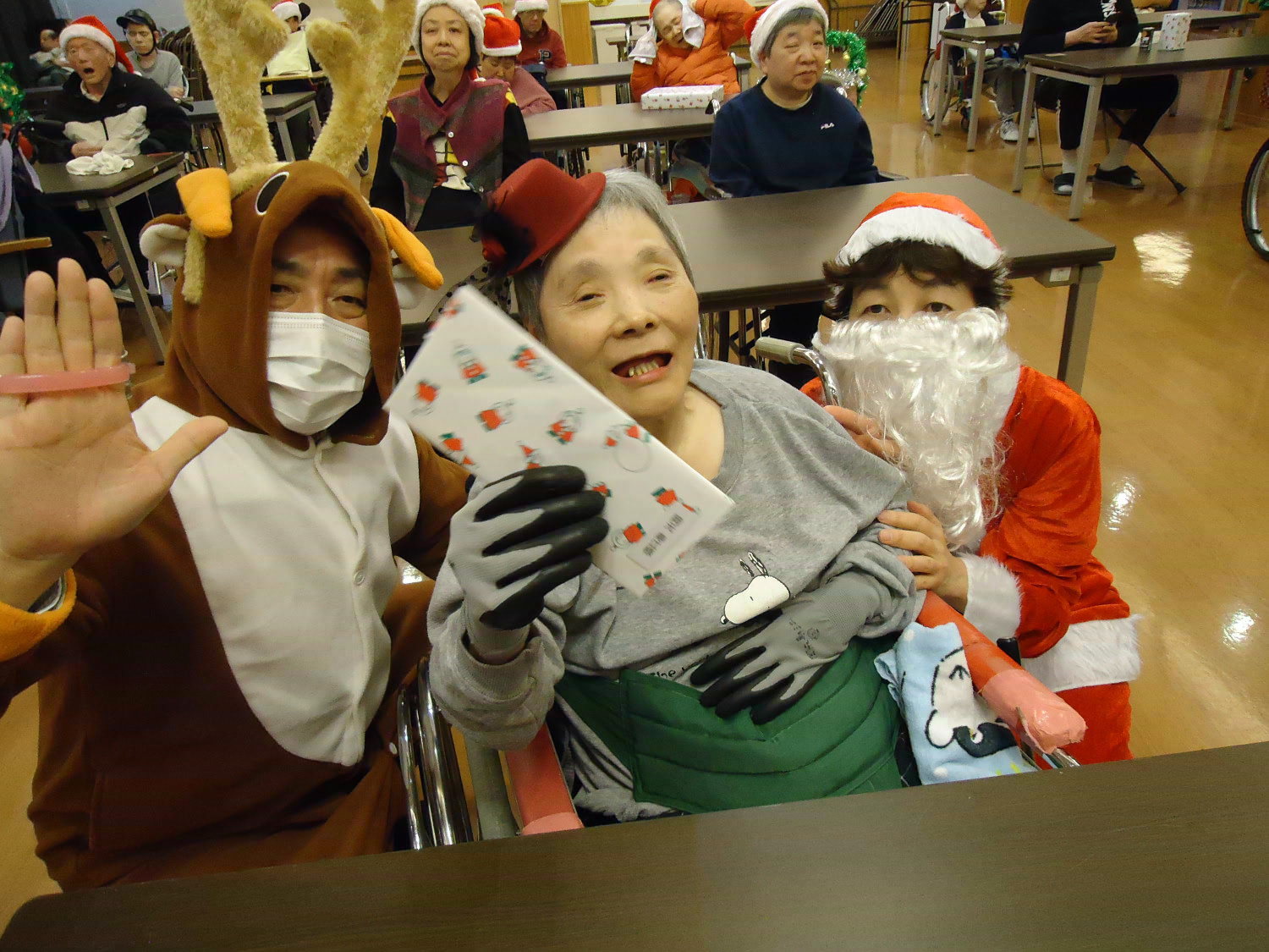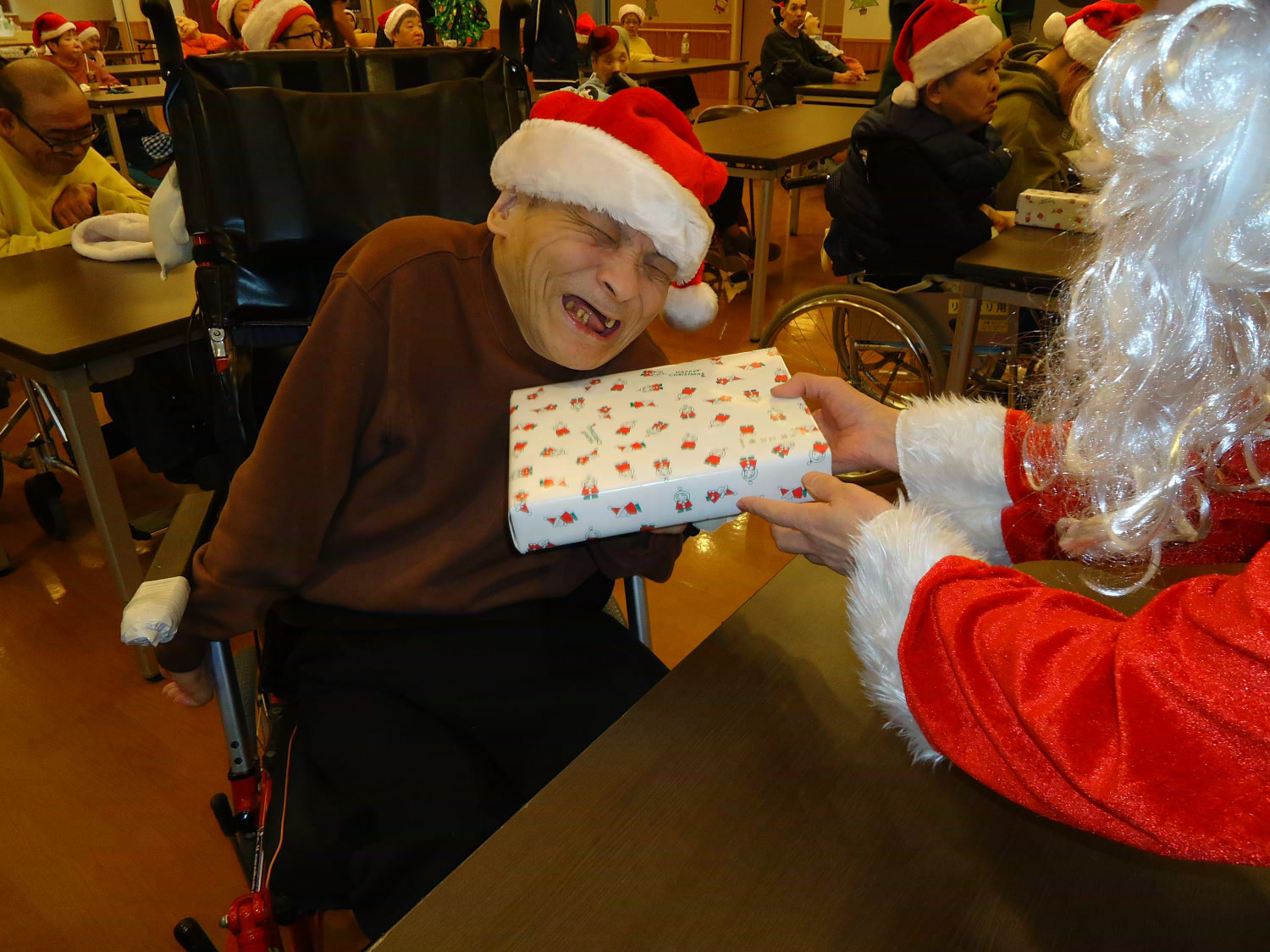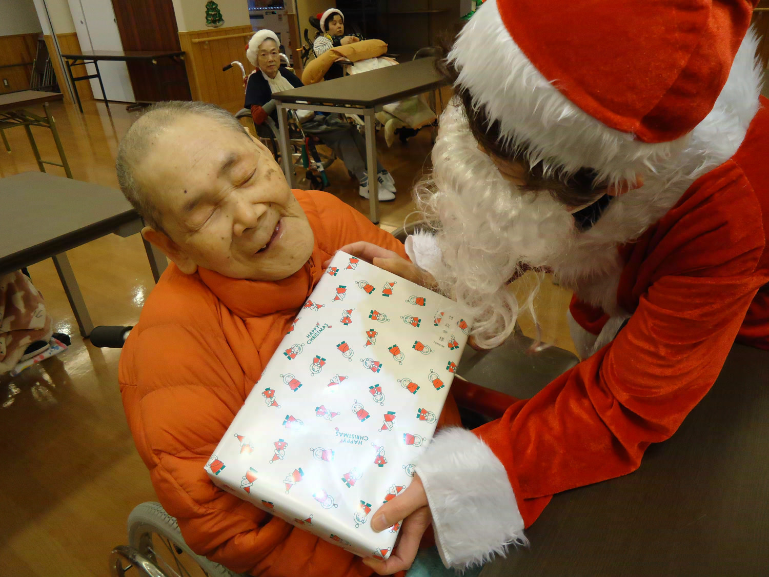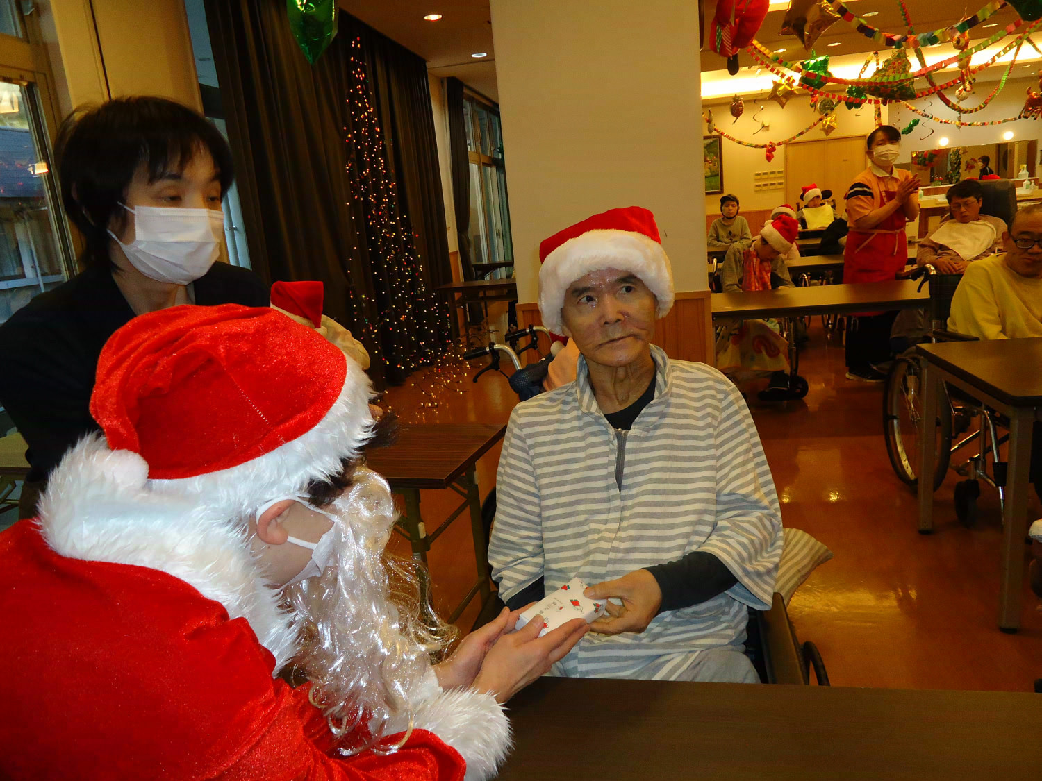 当施設ではサンタに扮した職員が利用者様にプレゼントをお届けしました!