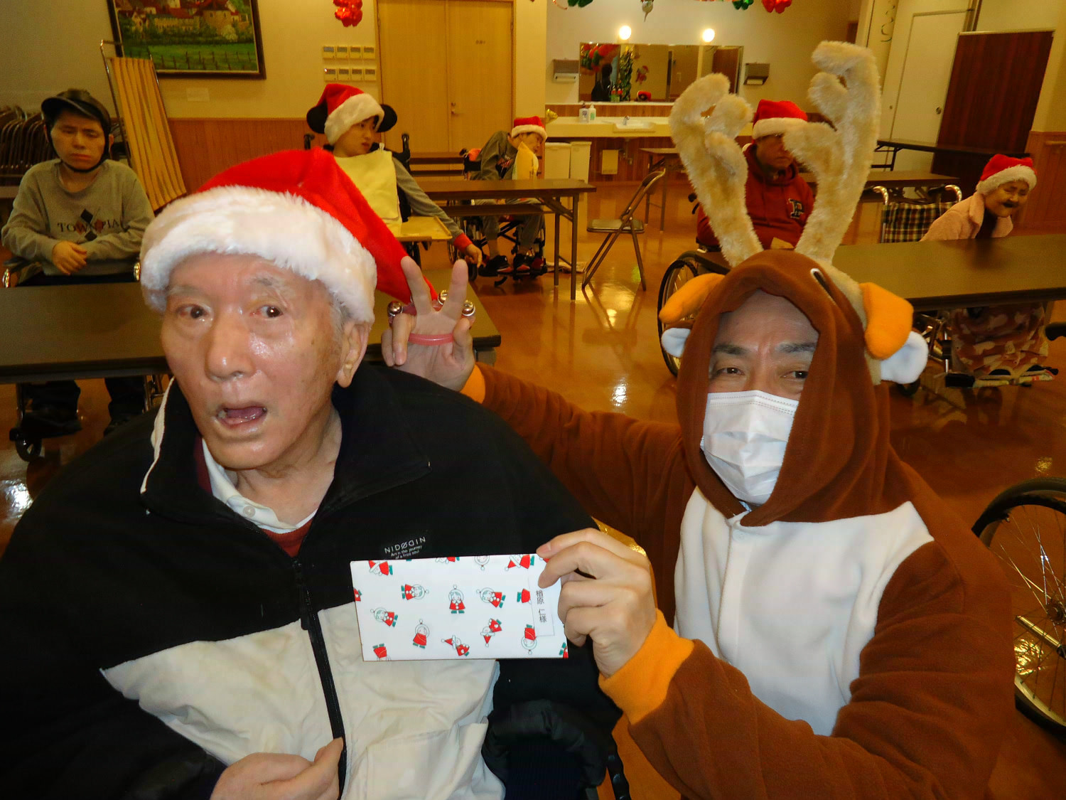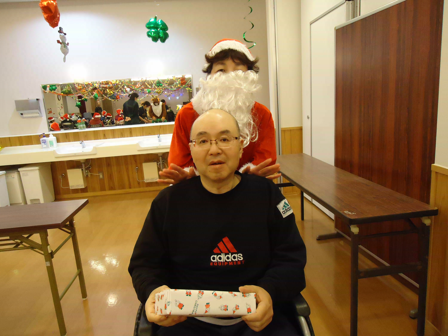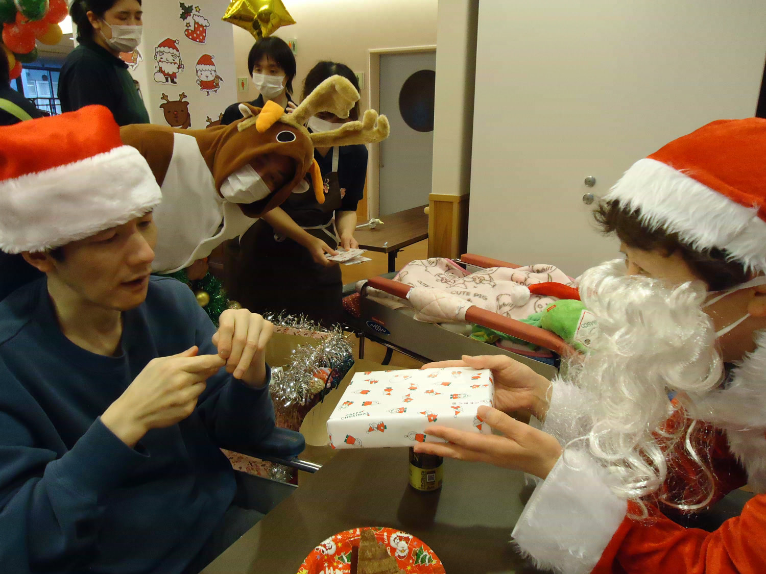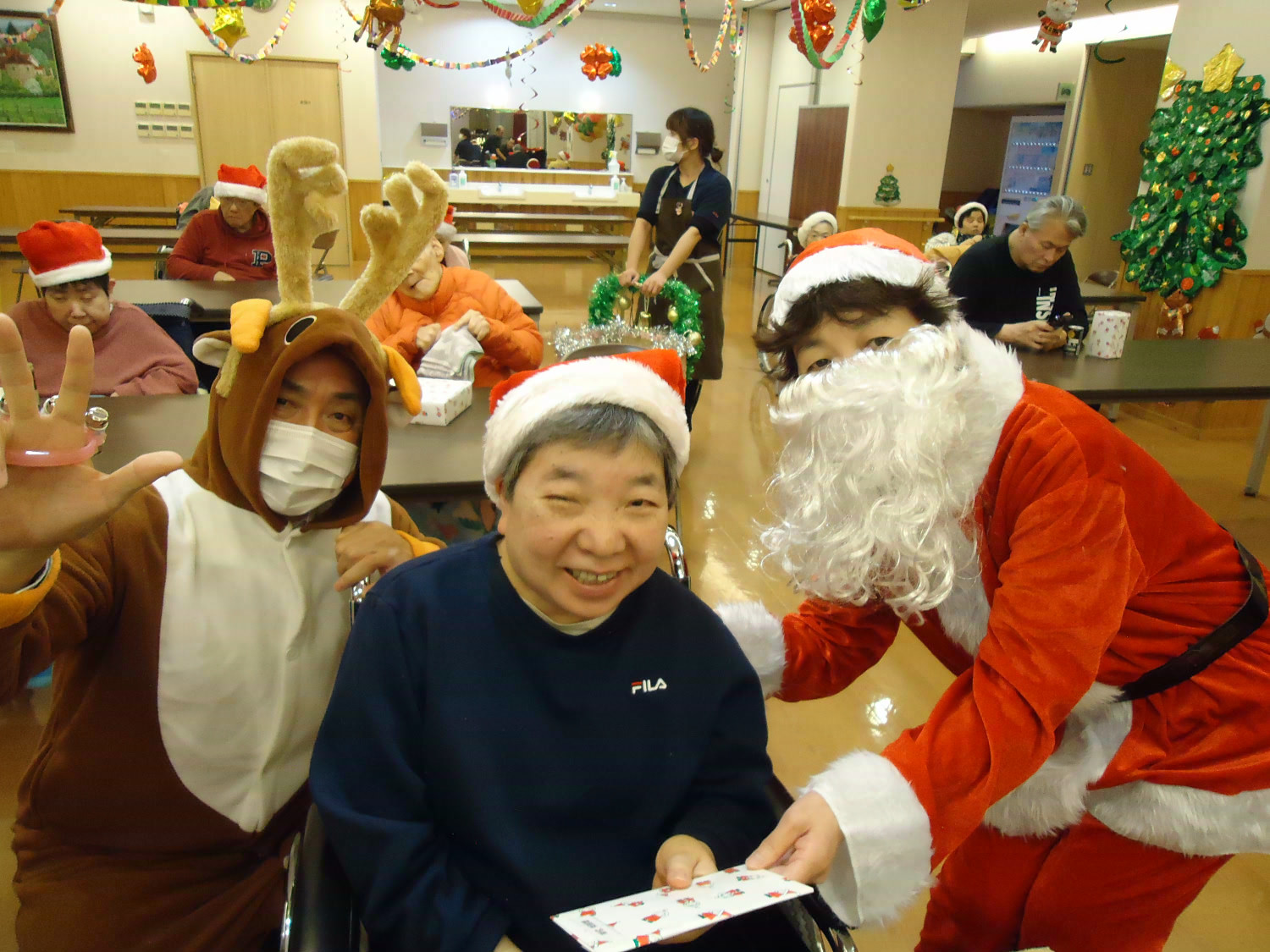 当施設ではサンタに扮した職員が利用者様にプレゼントをお届けしました!