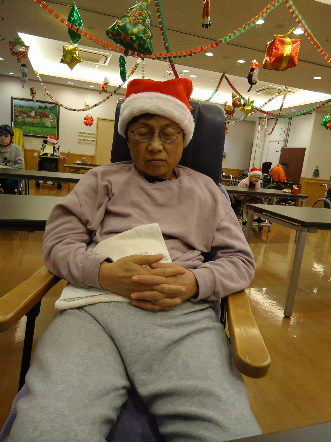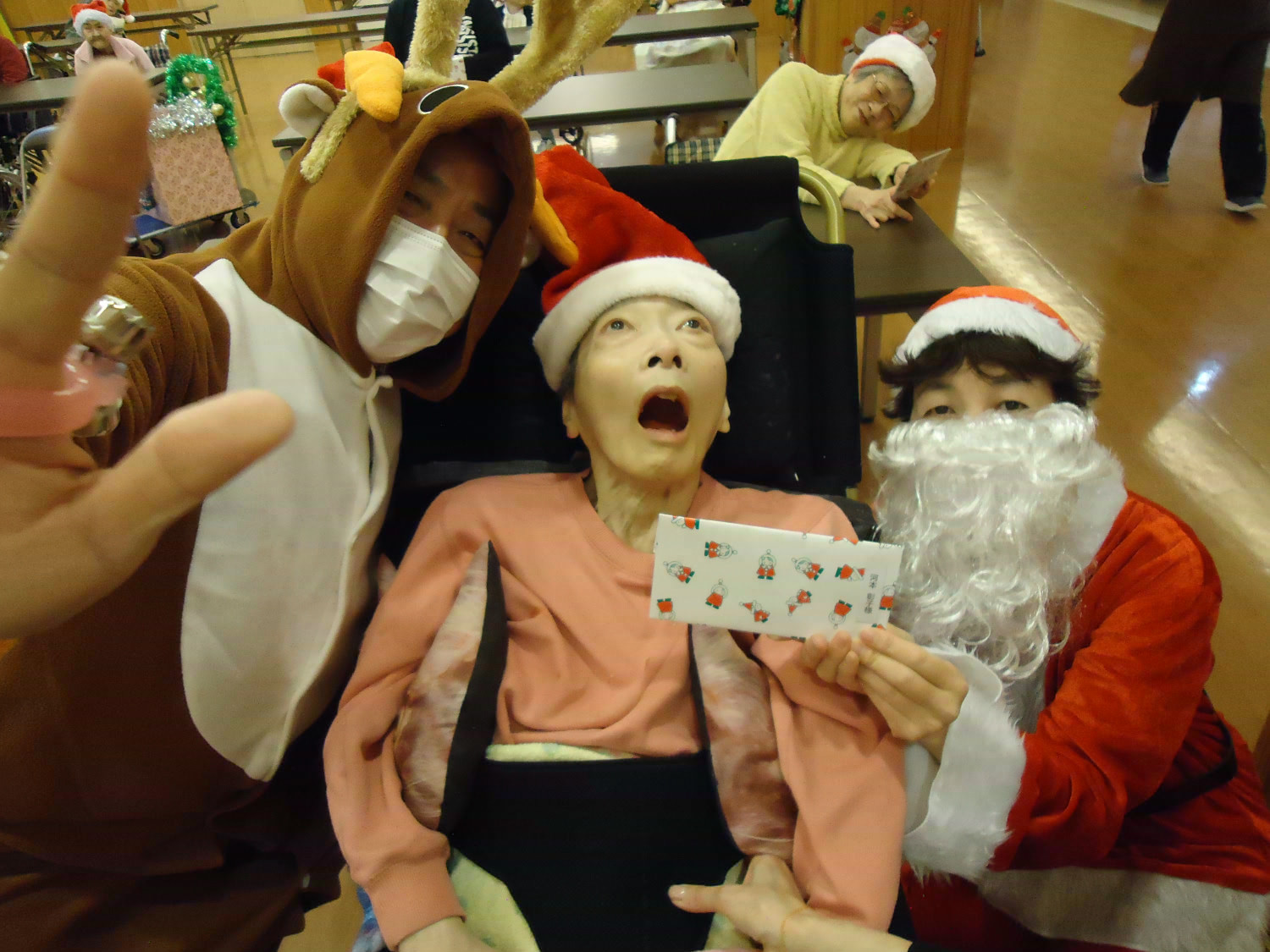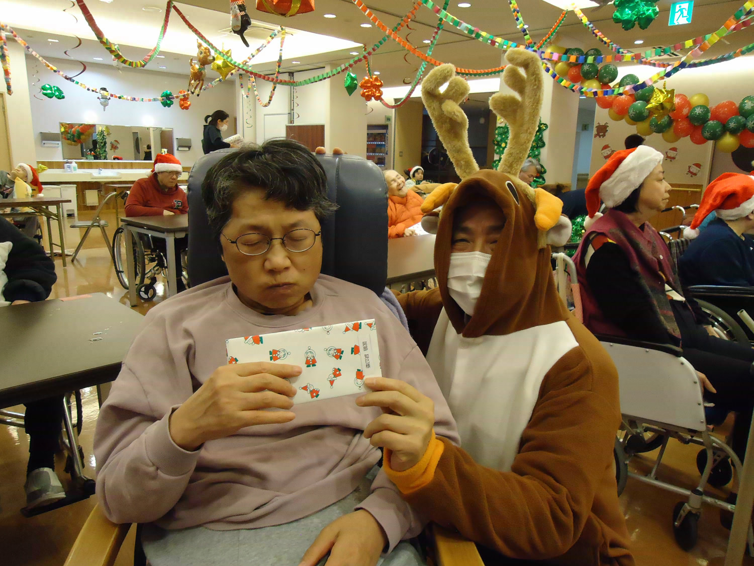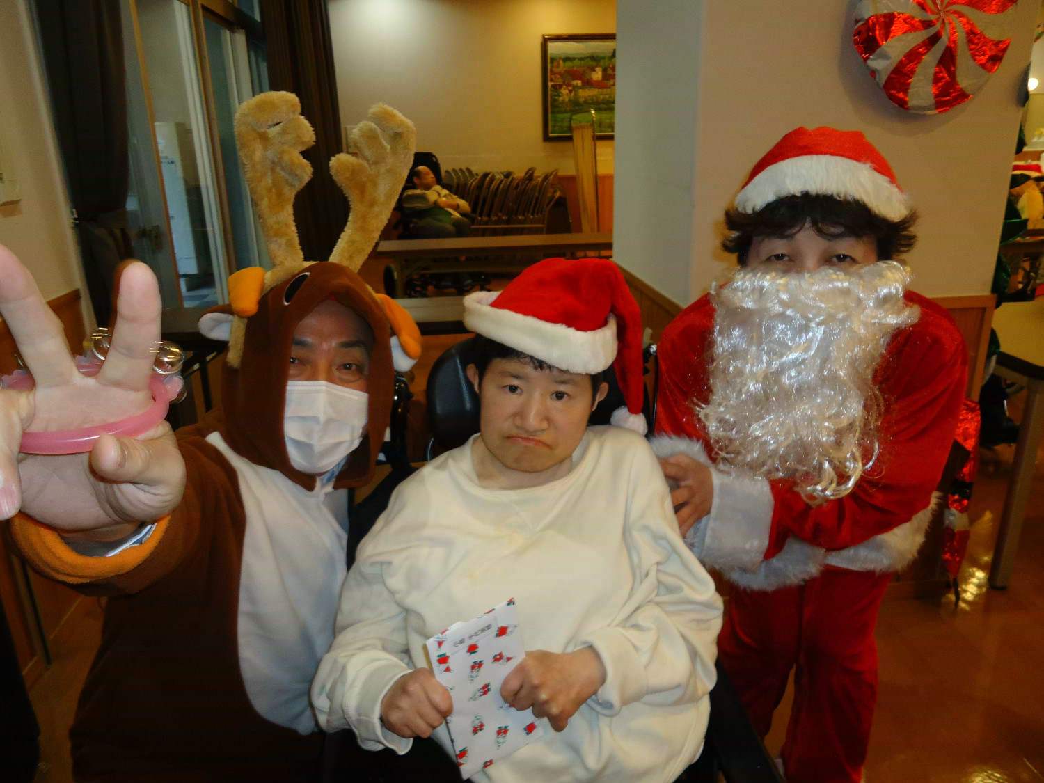 当施設ではサンタに扮した職員が利用者様にプレゼントをお届けしました!