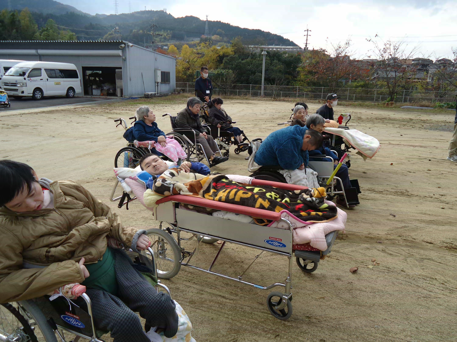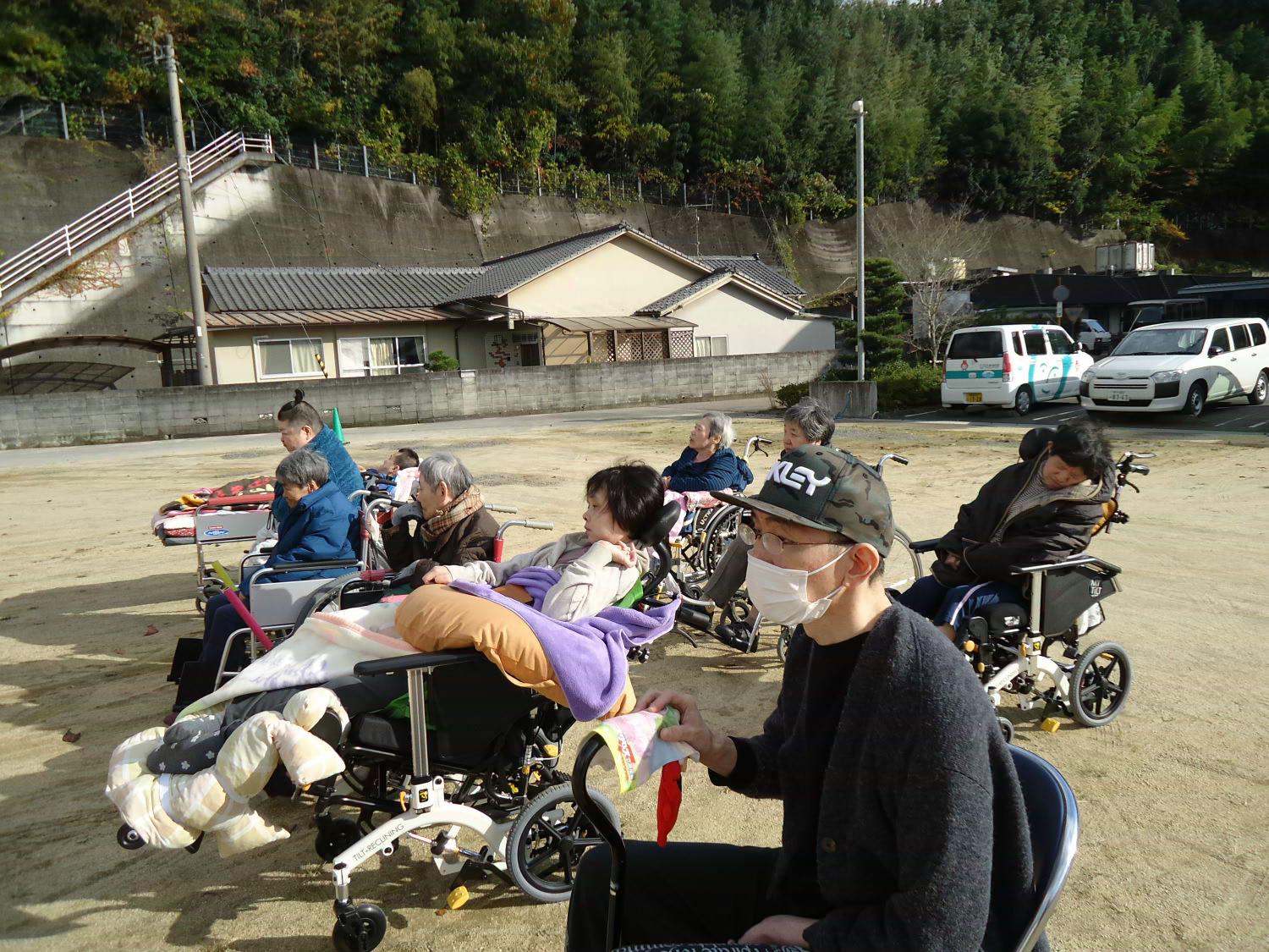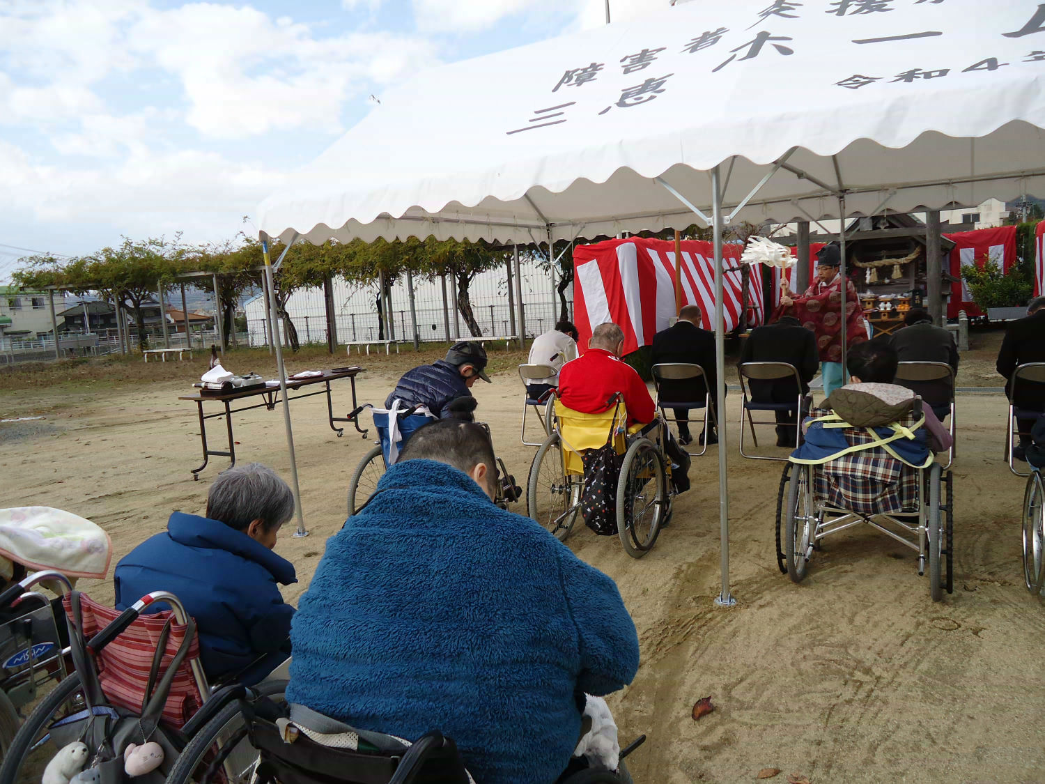 三島神社の方をお招きし、年に一度の神事を執り行いました。肌寒い中でしたが、多くの利用者様が見守る中、利用者代表の自治会会長様も玉串を奉奠して、今後の無病息災をお祈りしました。