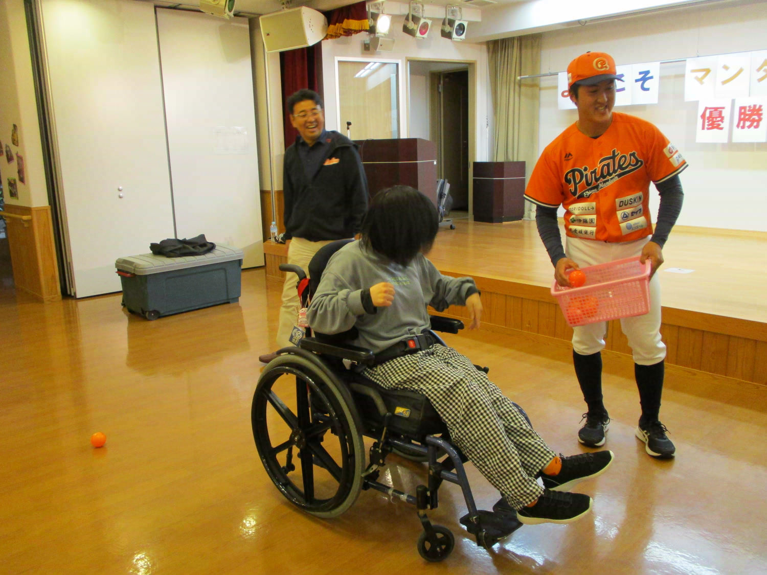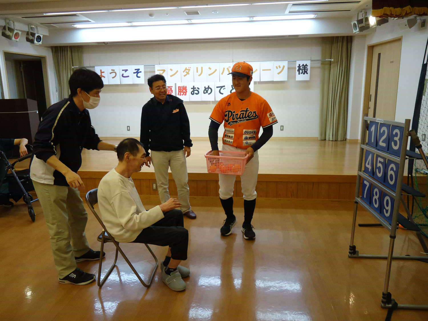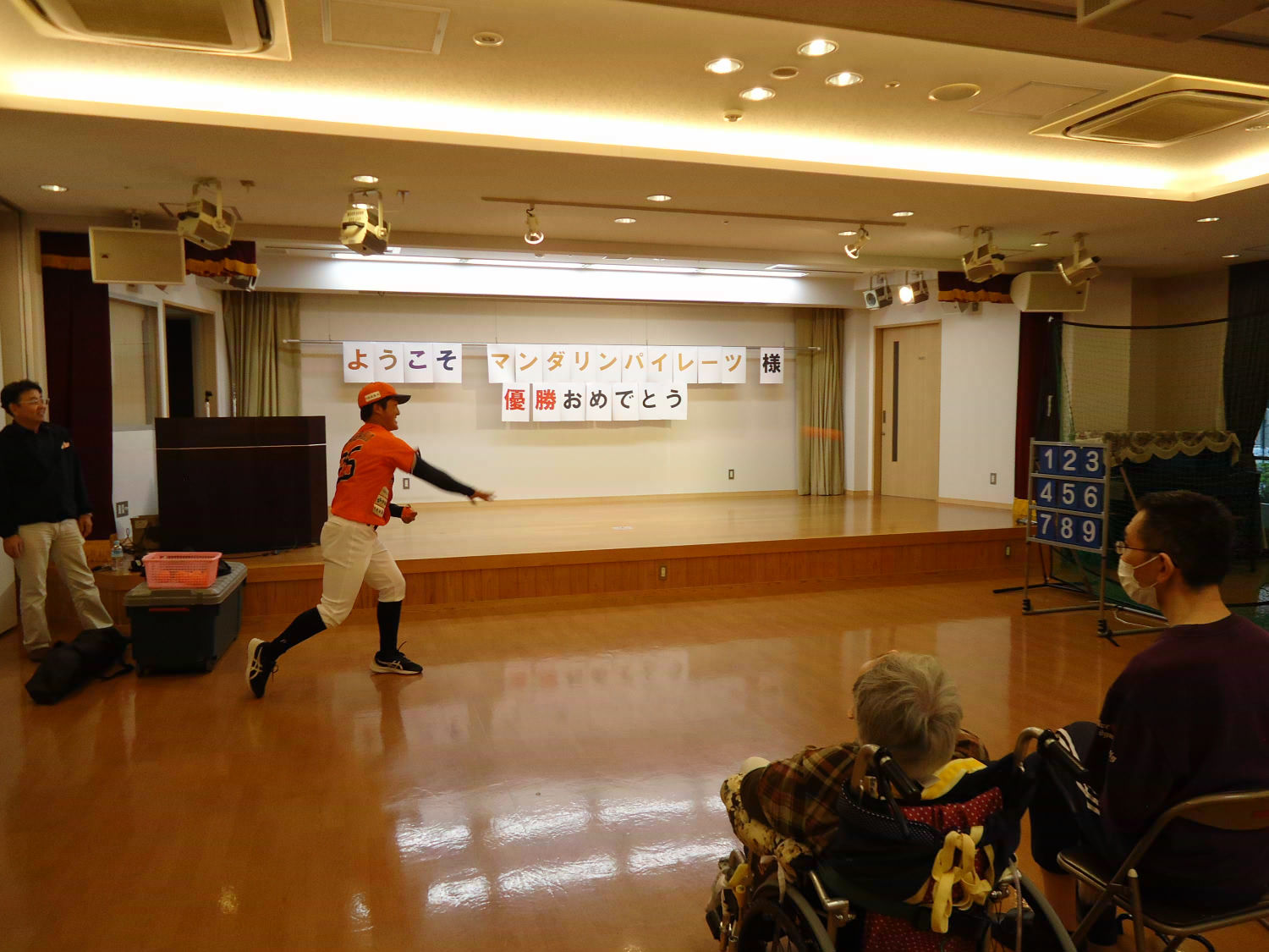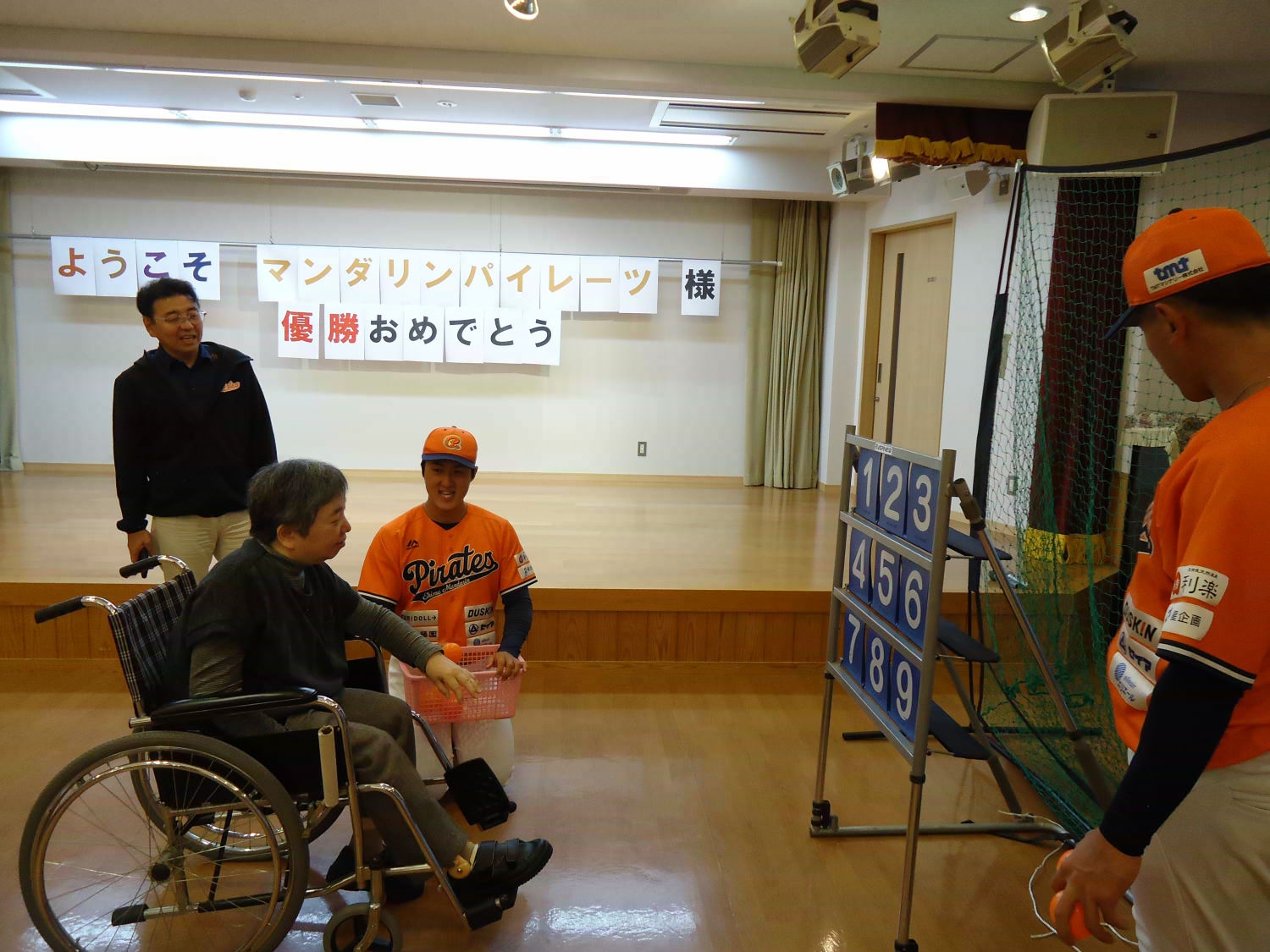 本日はマンダリンパイレーツの皆さんをお招きして、ストラックアウトに挑戦です!選手直々に手ほどきをしてもらうと見事に命中!このままスカウトされちゃうかも!?