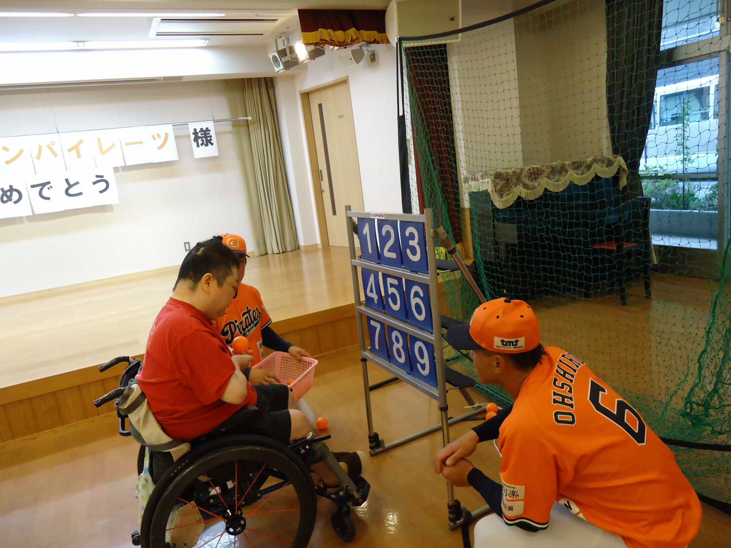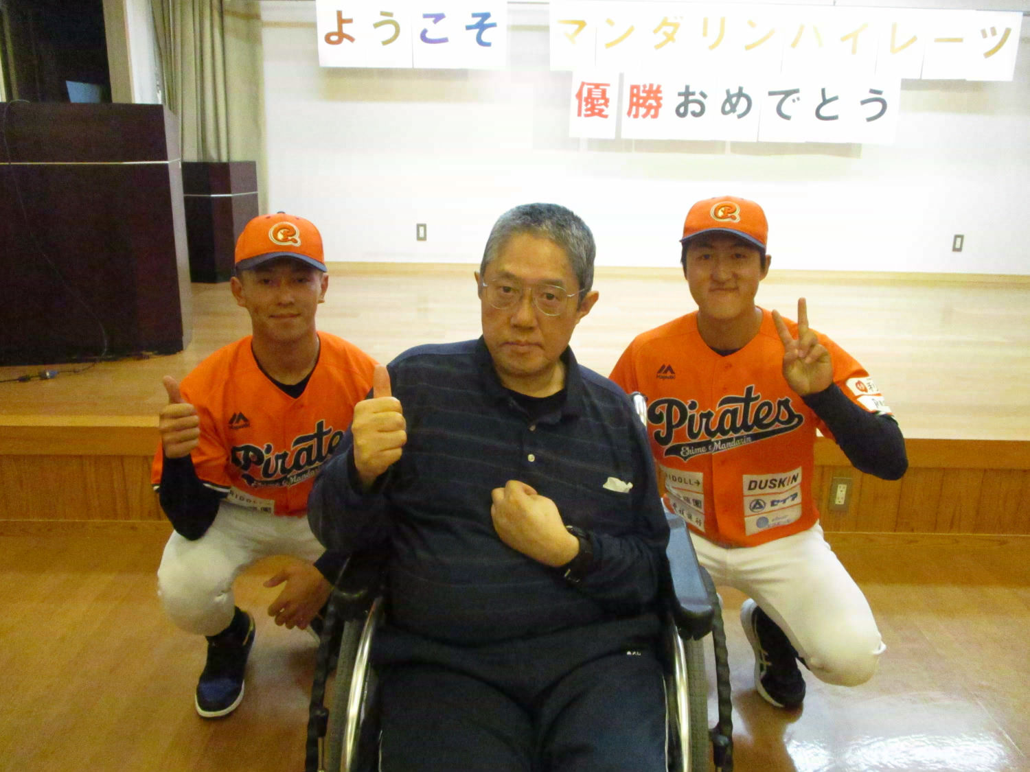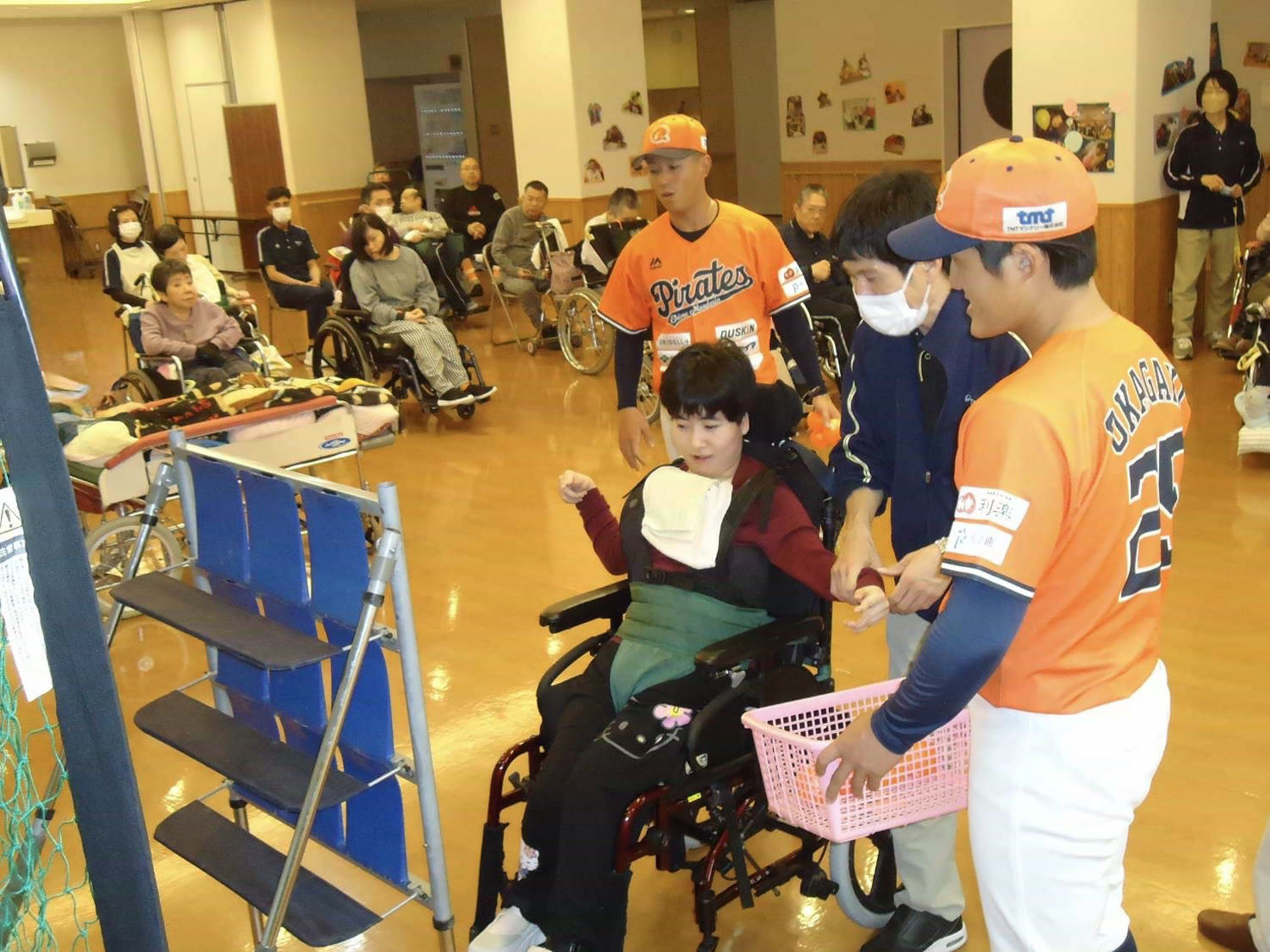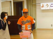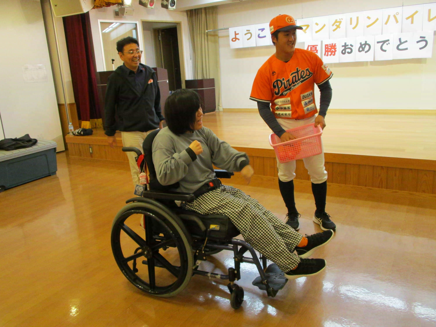本日はマンダリンパイレーツの皆さんをお招きして、ストラックアウトに挑戦です!選手直々に手ほどきをしてもらうと見事に命中!このままスカウトされちゃうかも!?