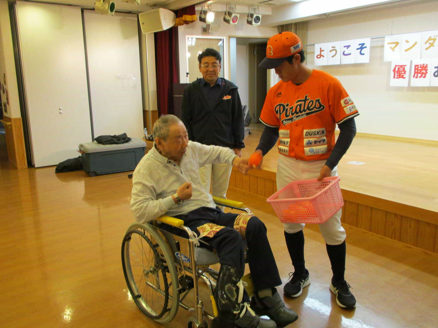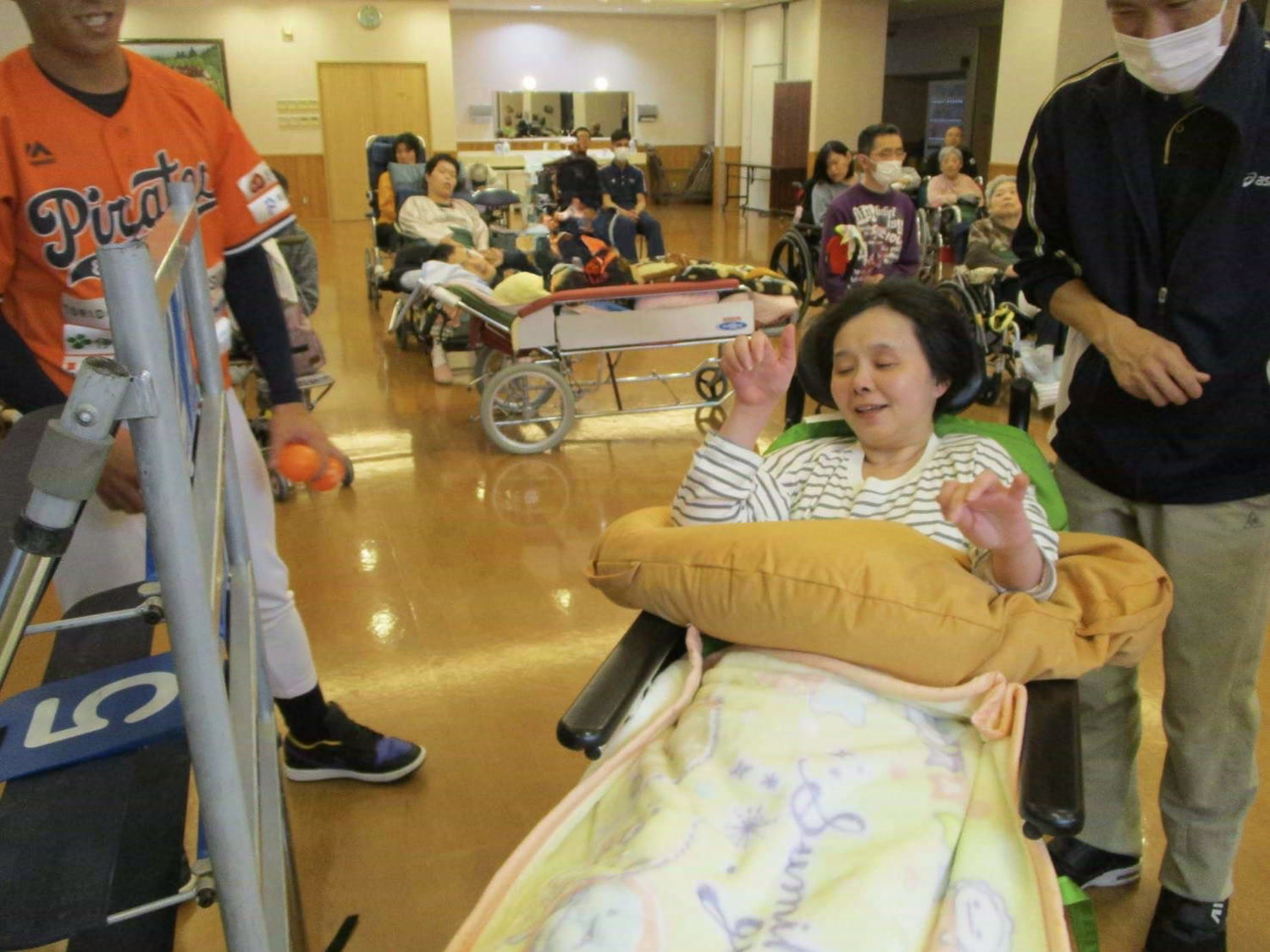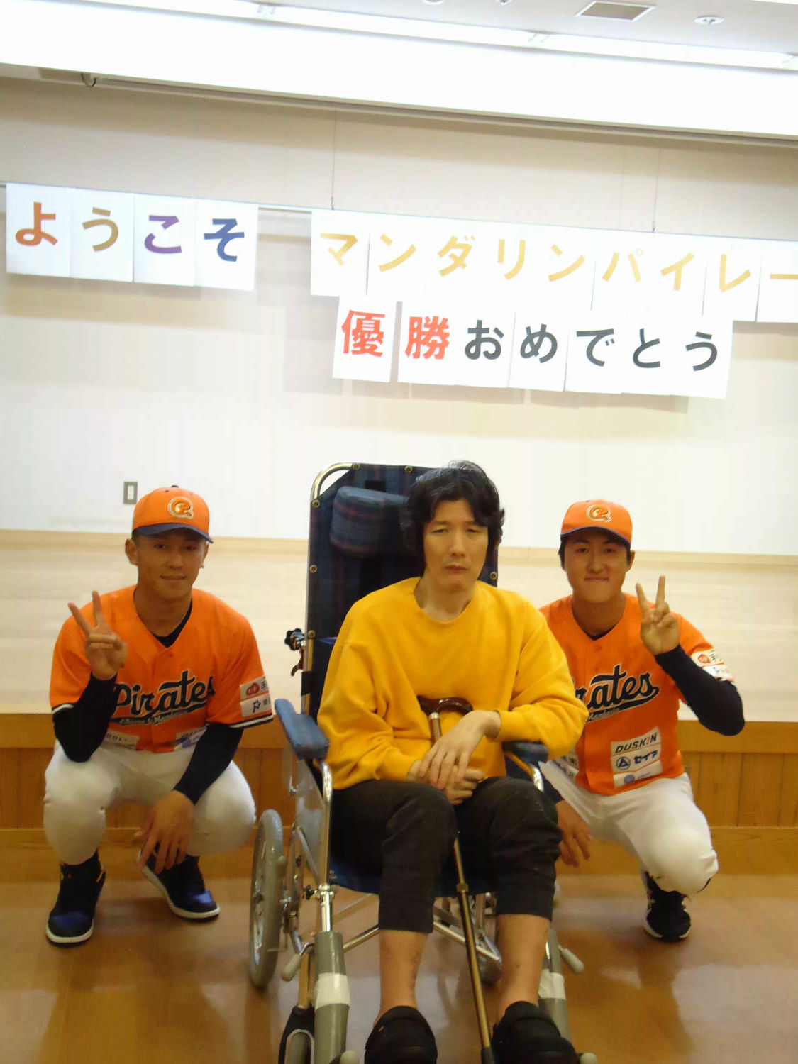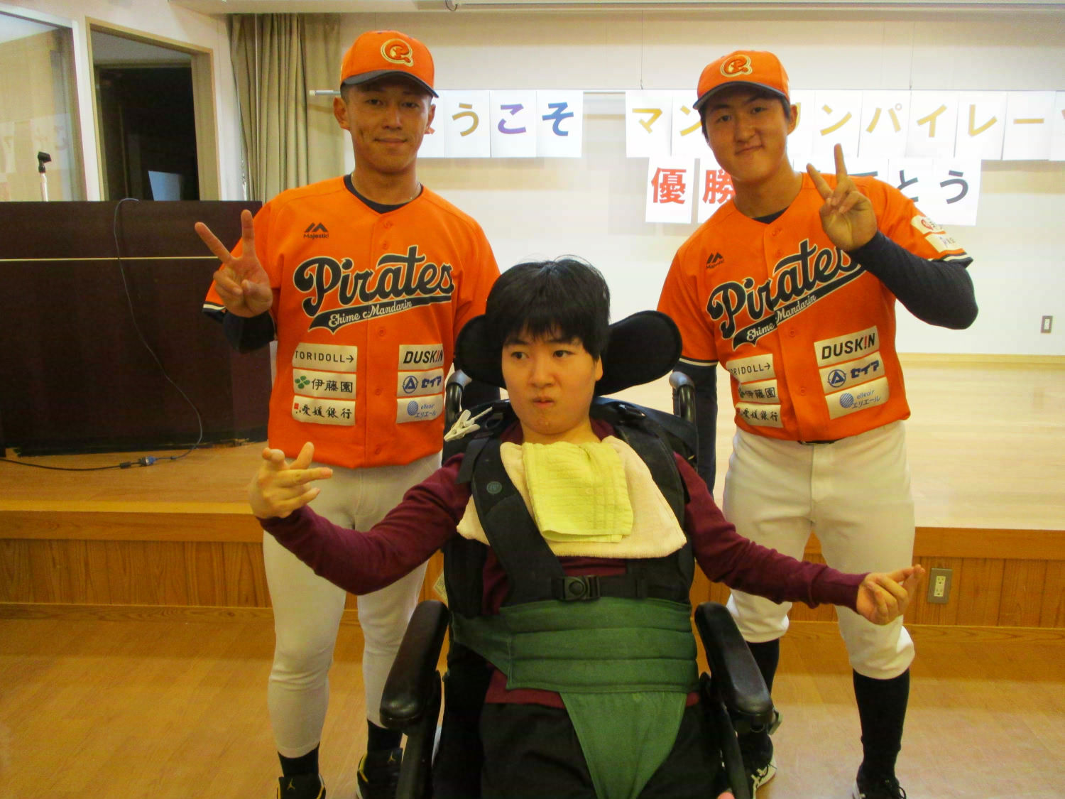 本日はマンダリンパイレーツの皆さんをお招きして、ストラックアウトに挑戦です!選手直々に手ほどきをしてもらうと見事に命中!このままスカウトされちゃうかも!?