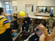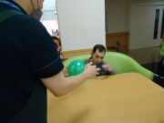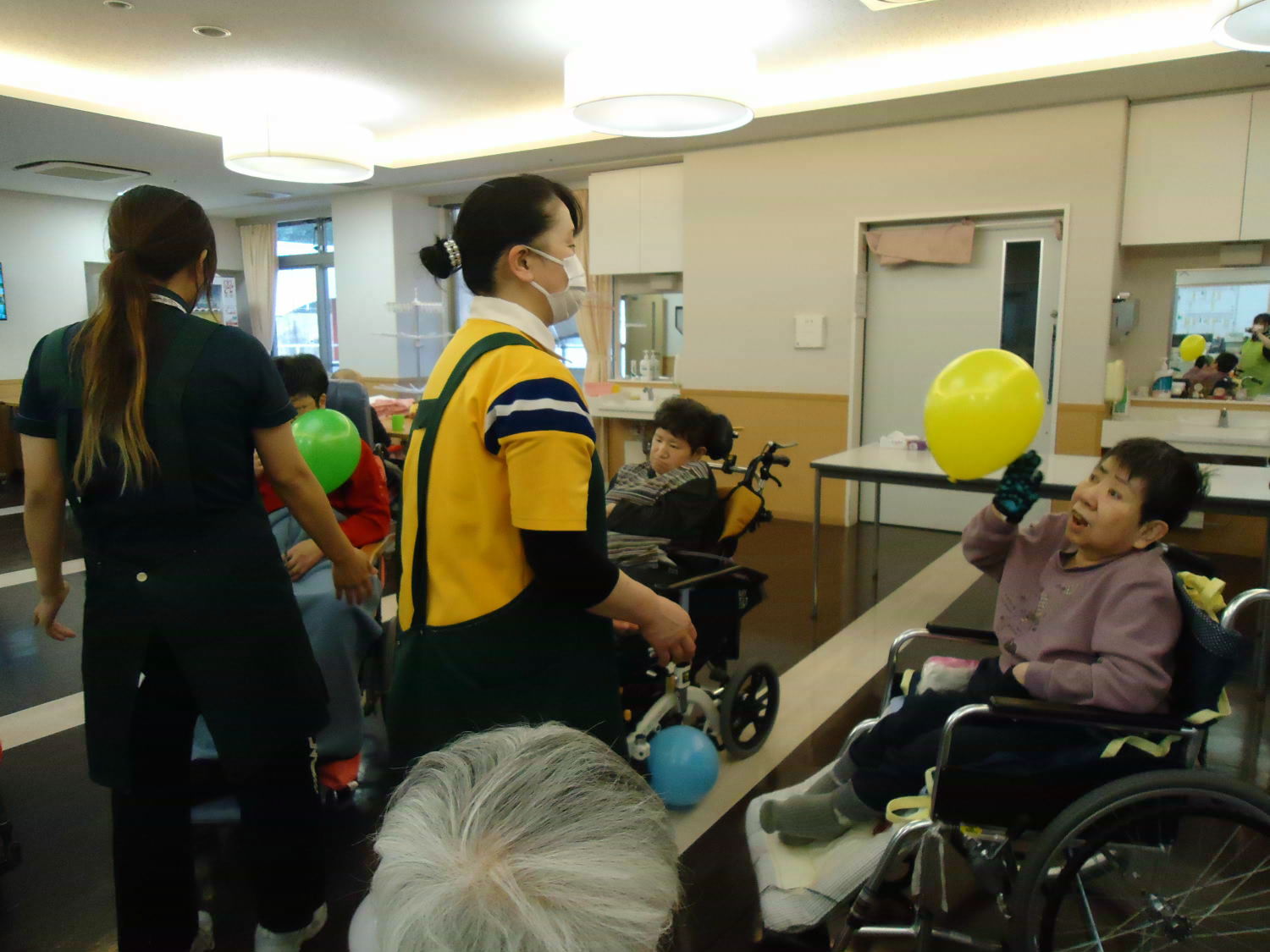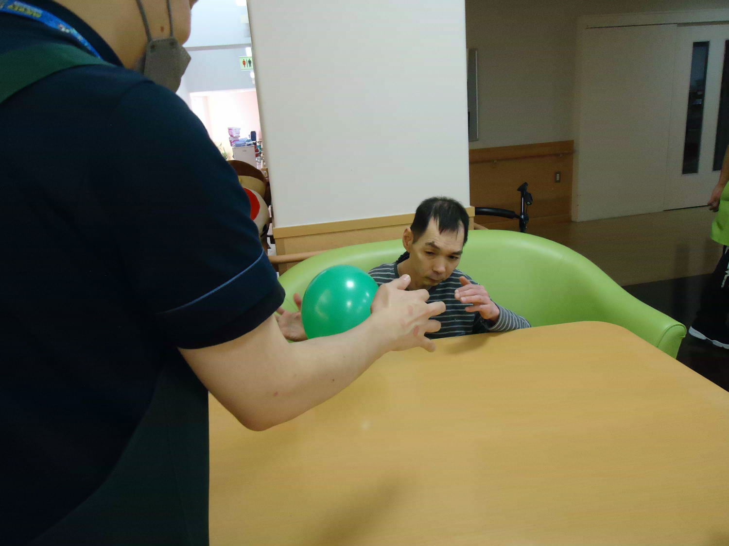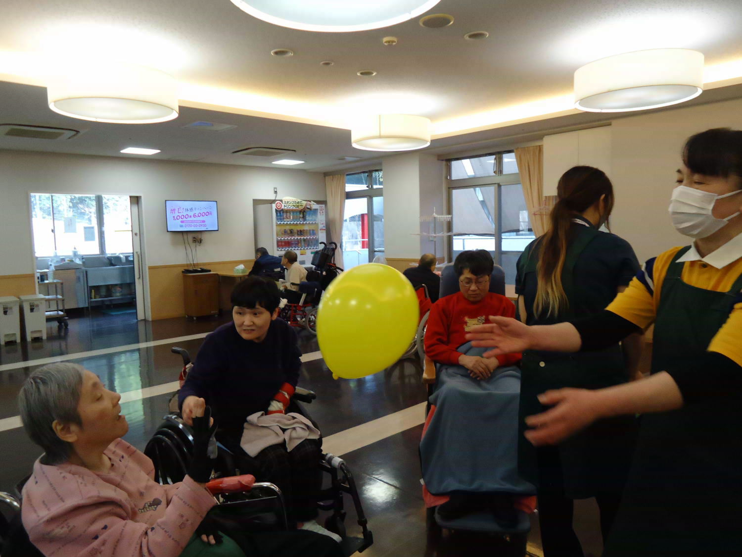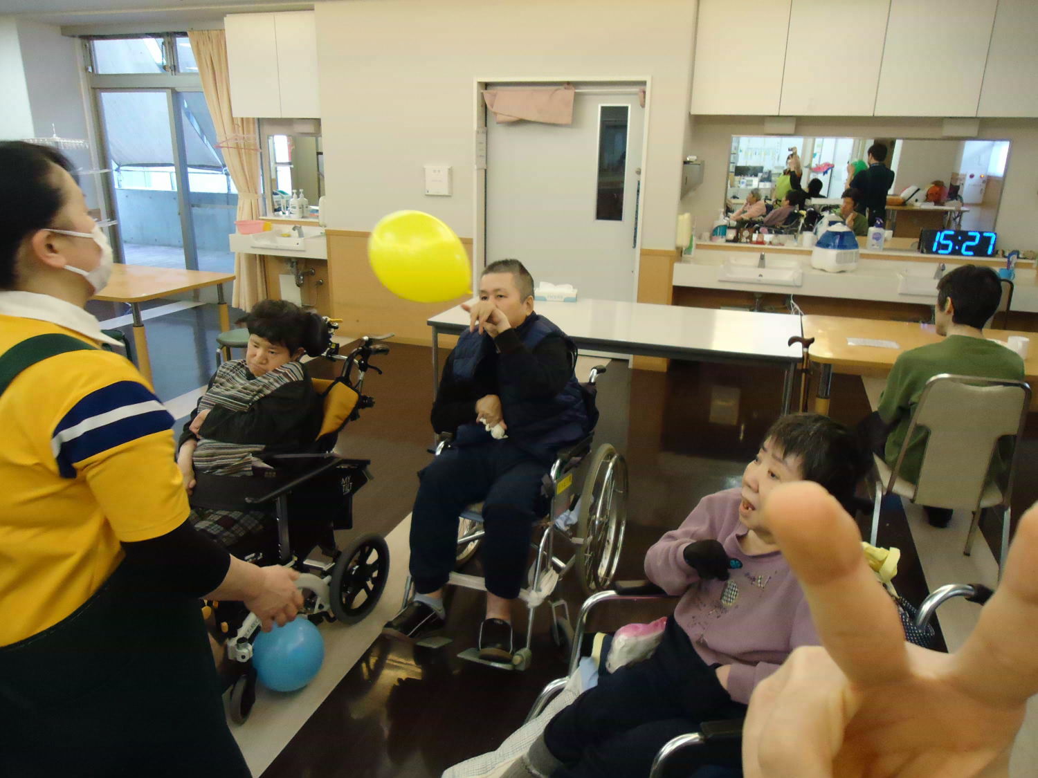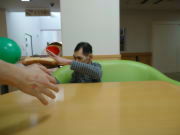 ゆっくりと落ちてくる風船を跳ね返すのは難しいですが、上手に打ち返した人もいましたね♪
