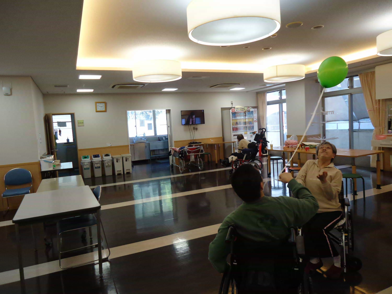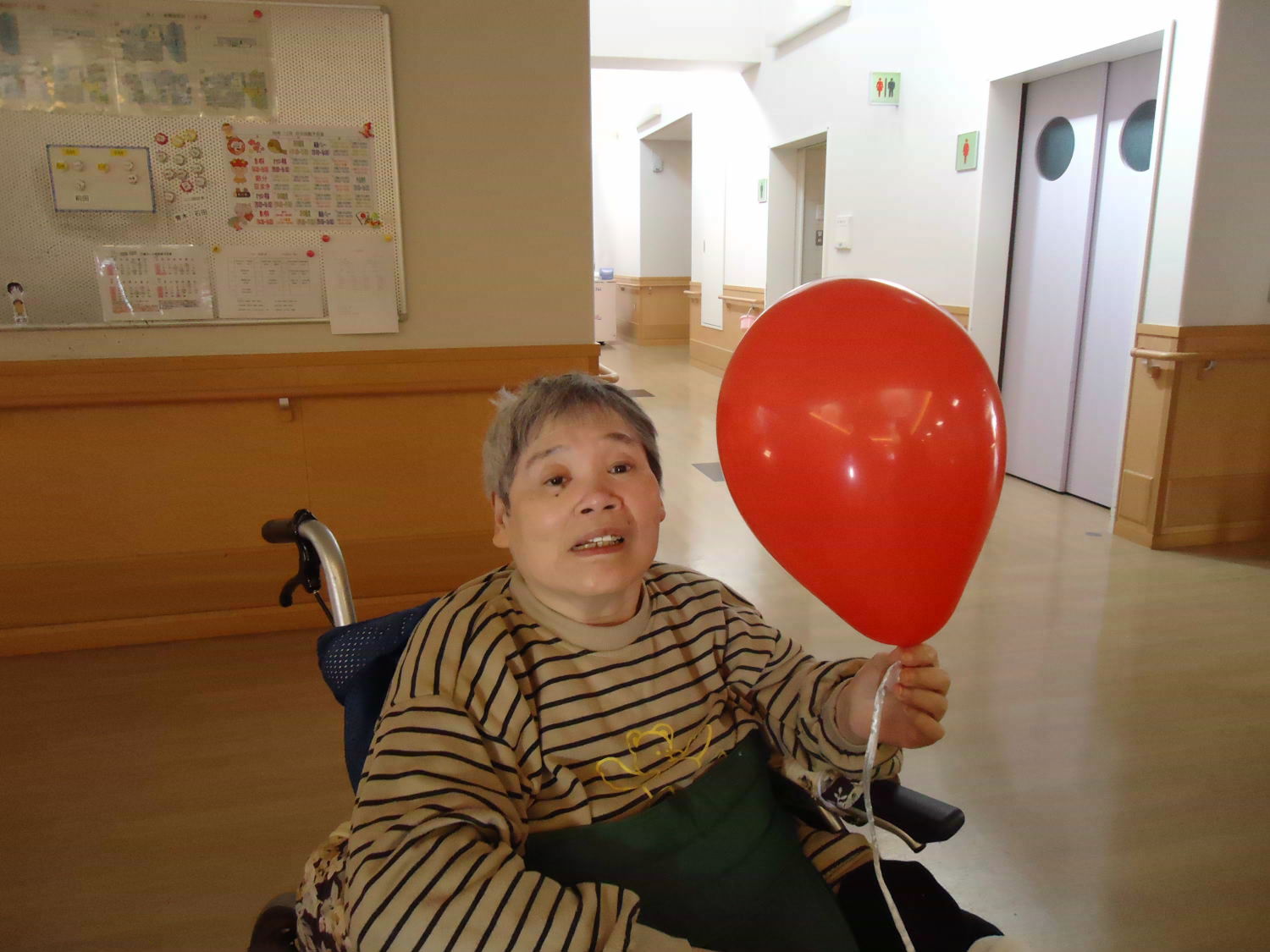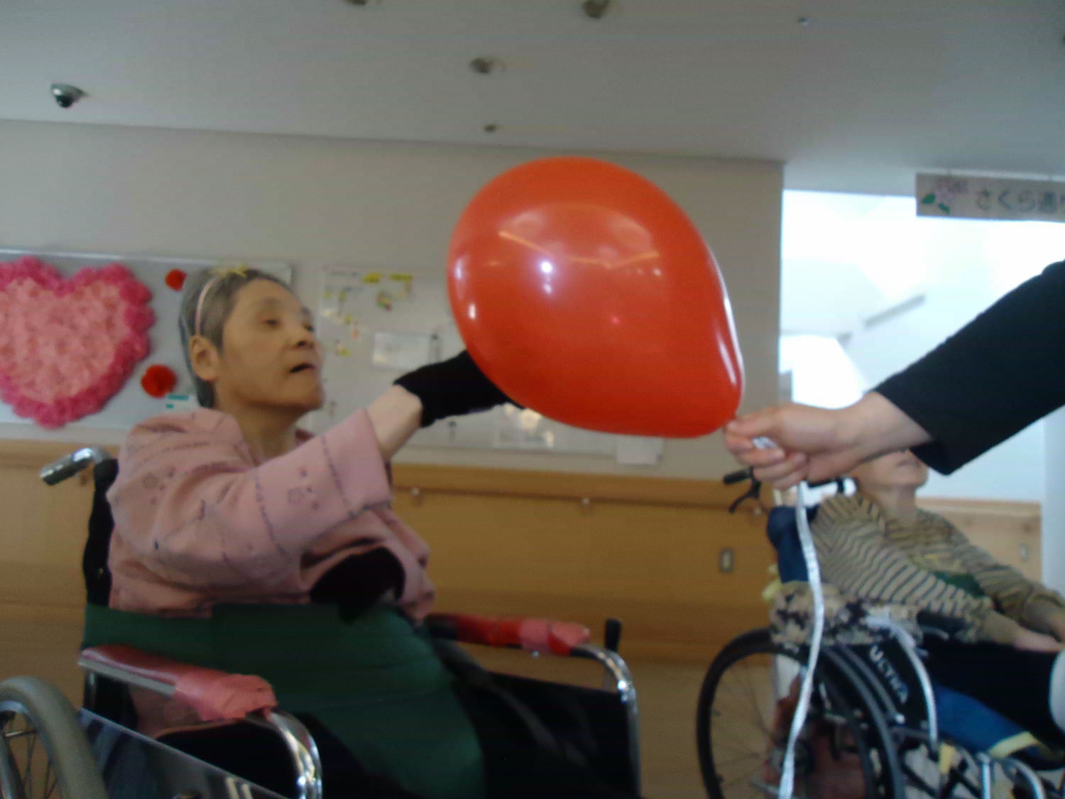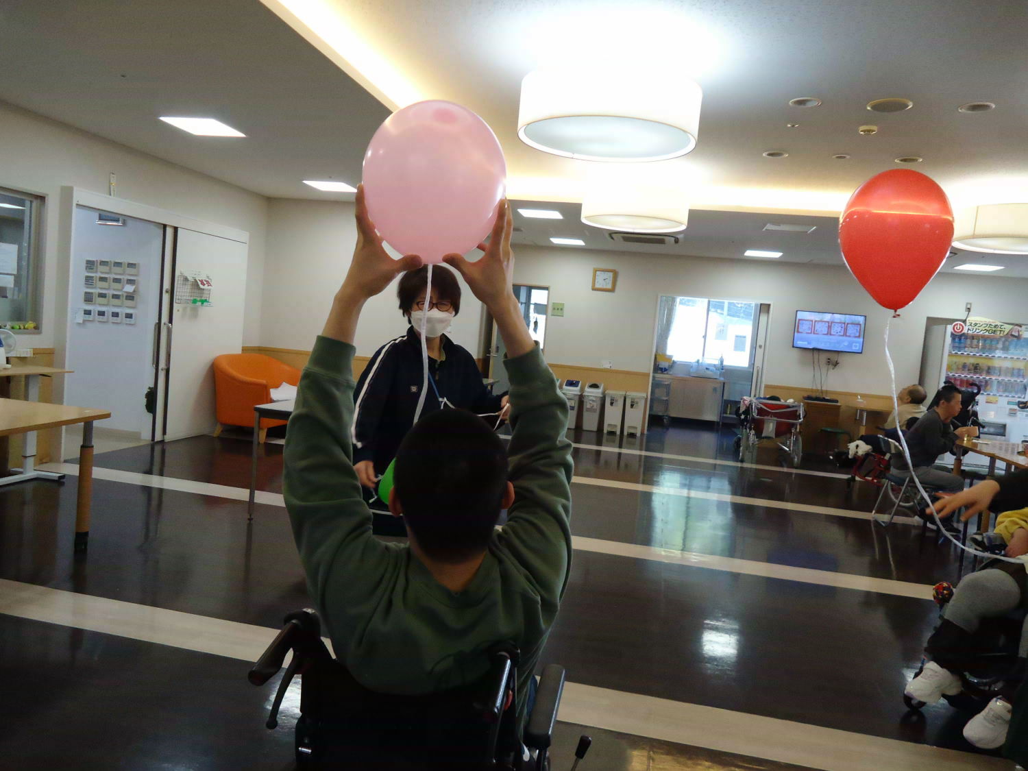 あっちにこっちに飛んでいく風船を追いかけて、手を伸ばしてそーれ! 元気いっぱい、気合いも十分!力が入りすぎてたまに風船が割れちゃうこともありますが、いっぱいあるので心配せずに楽しんでくださいね!