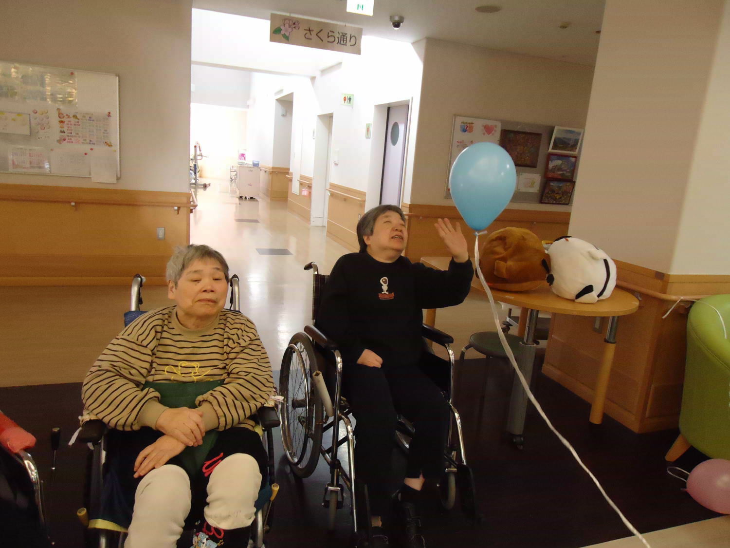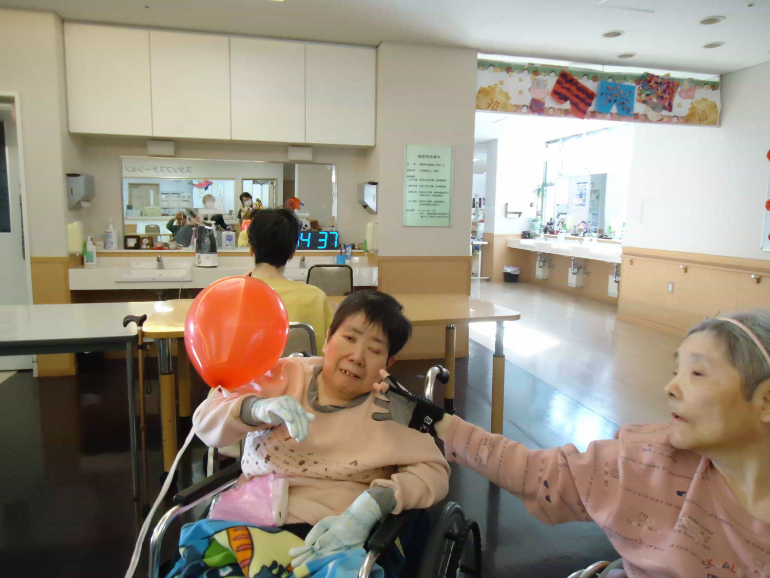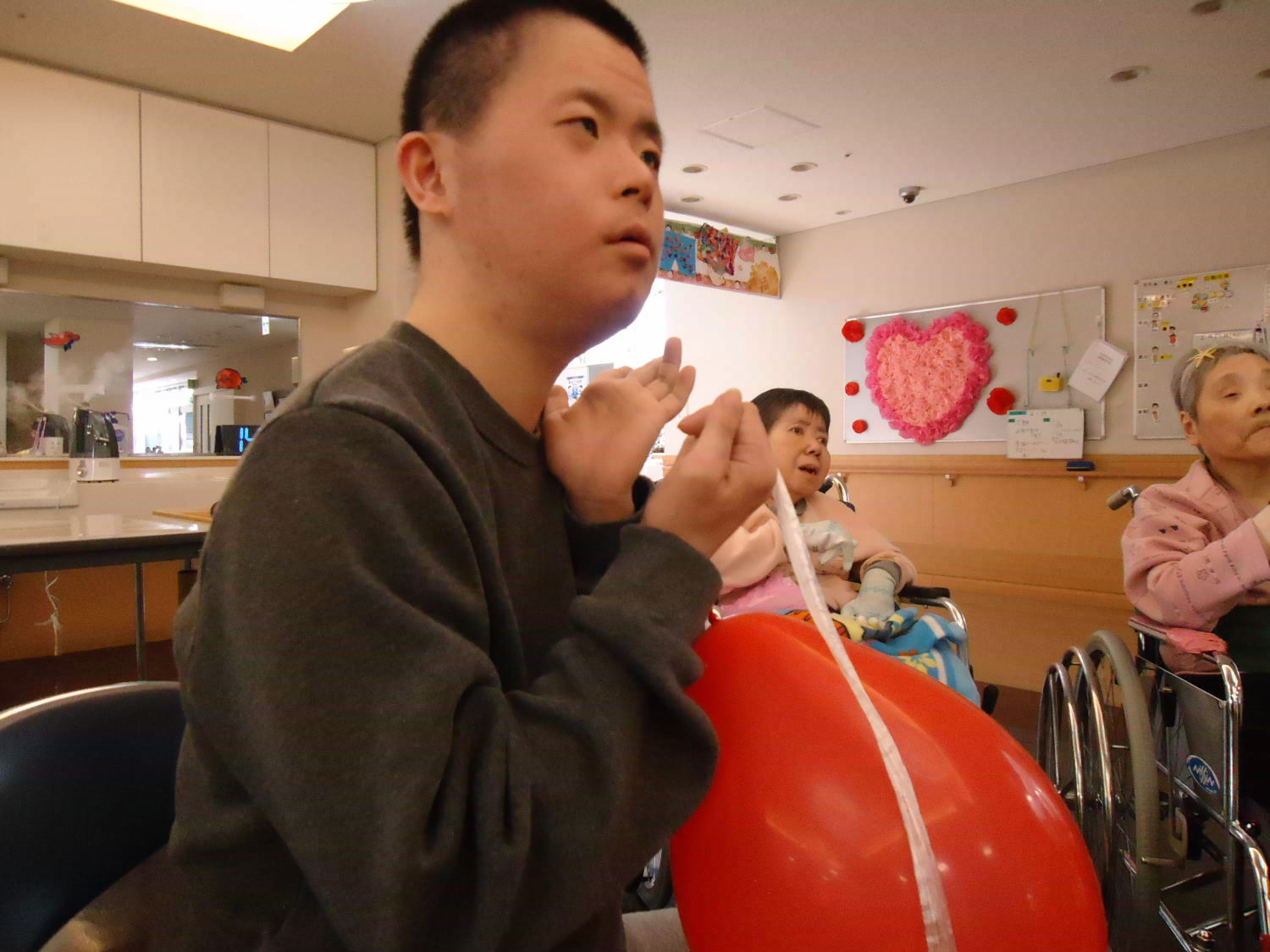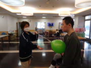 あっちにこっちに飛んでいく風船を追いかけて、手を伸ばしてそーれ! 元気いっぱい、気合いも十分!力が入りすぎてたまに風船が割れちゃうこともありますが、いっぱいあるので心配せずに楽しんでくださいね!