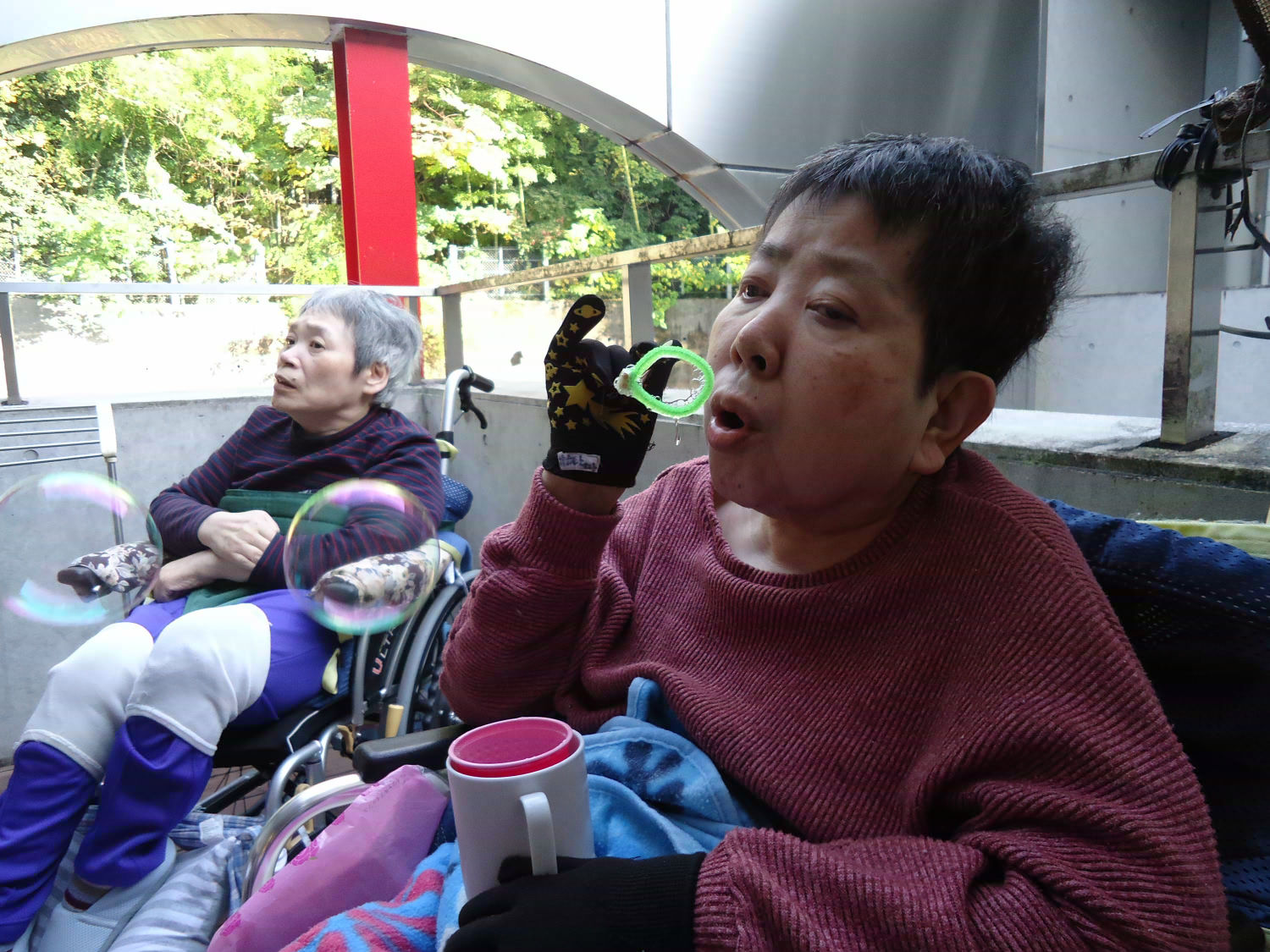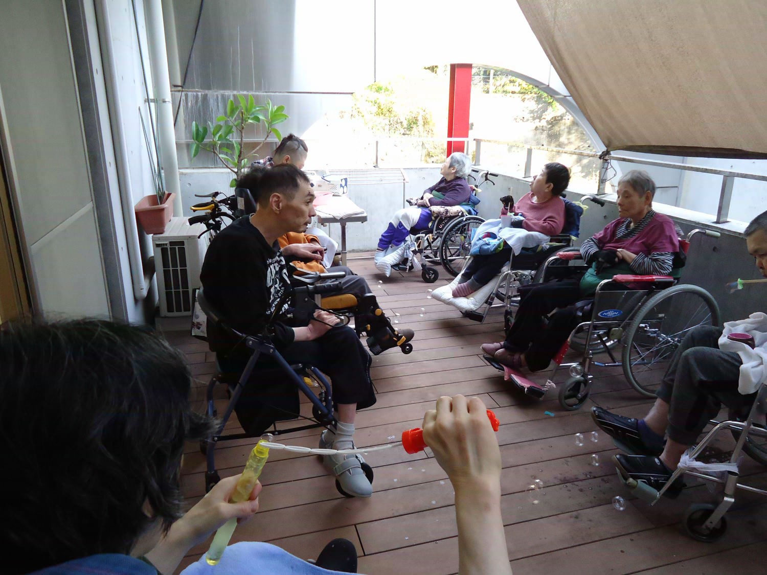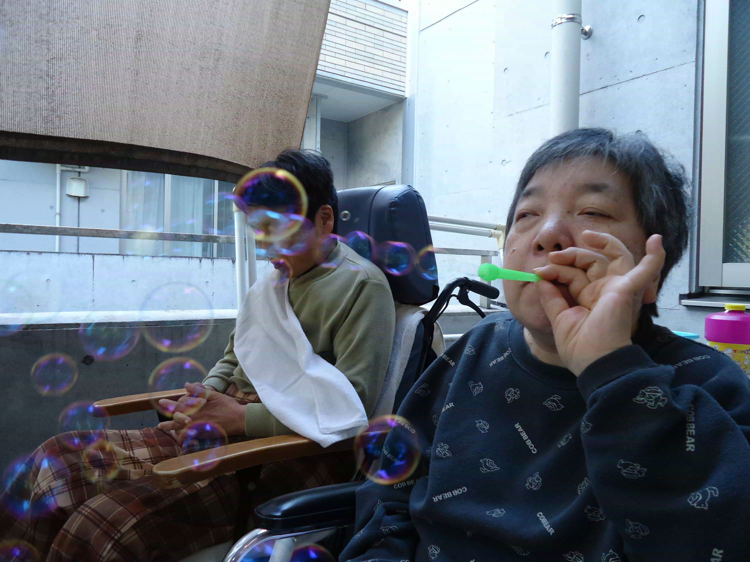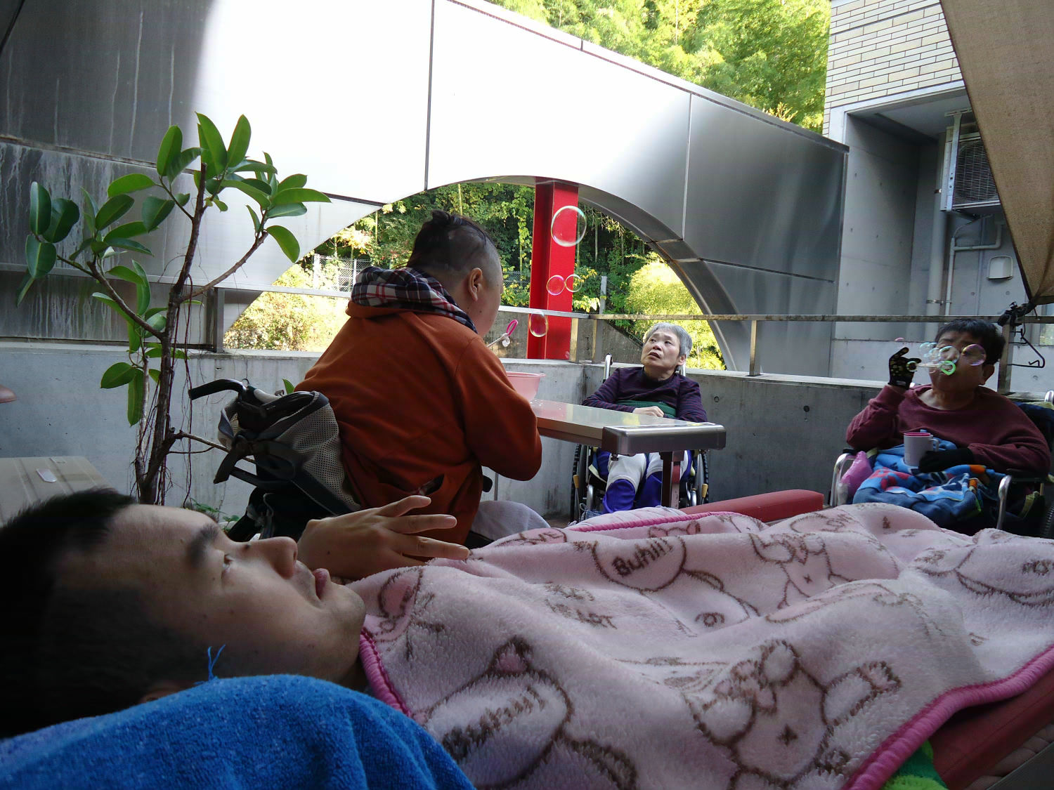 先日立冬を迎え、暦の上では冬だそうです。時折の暖かい日も残り惜しいので、今のうちにウッドデッキに出ましょう!前回の練習をいかして、大きなシャボン玉が飛ばせたかな?