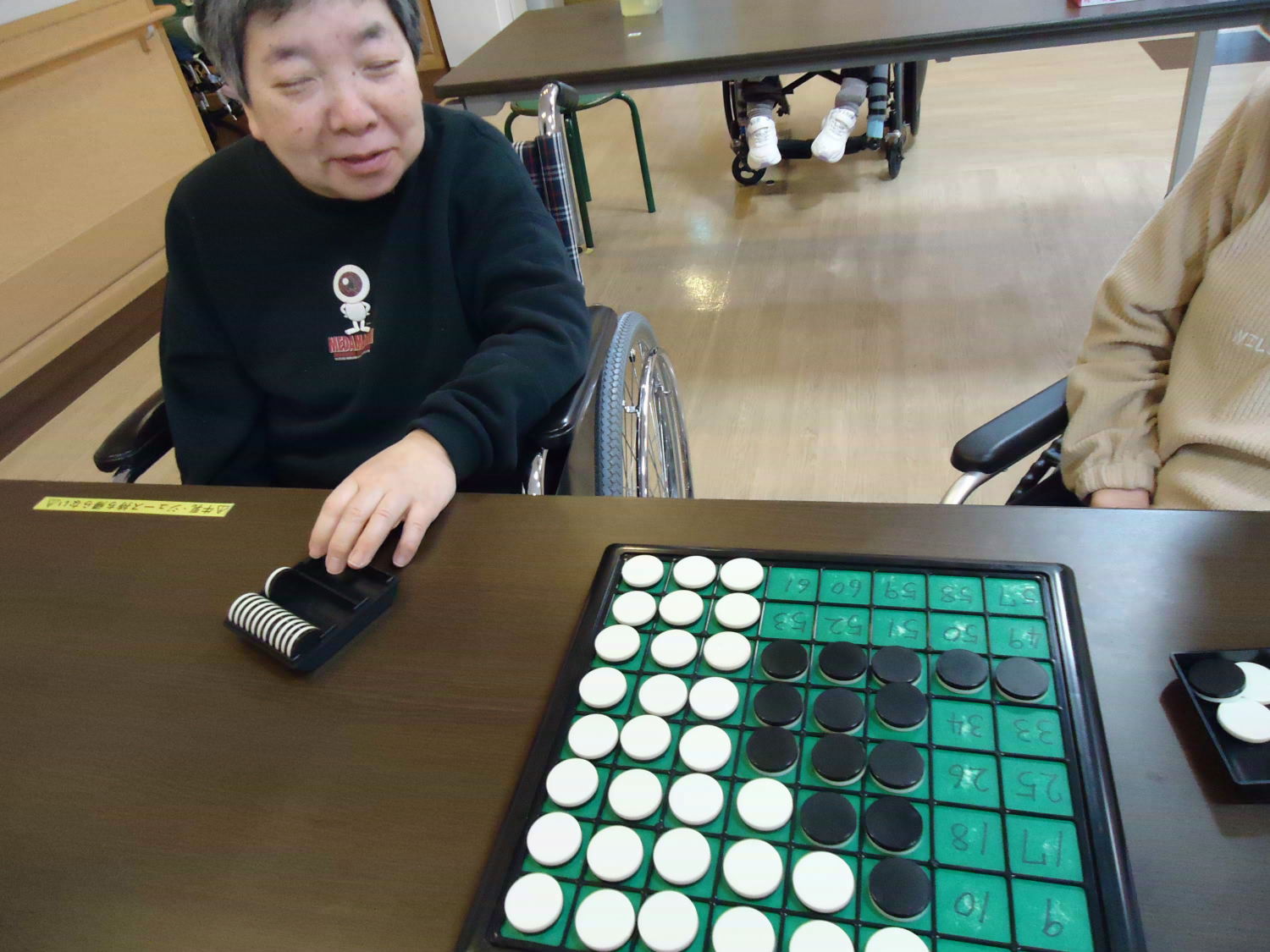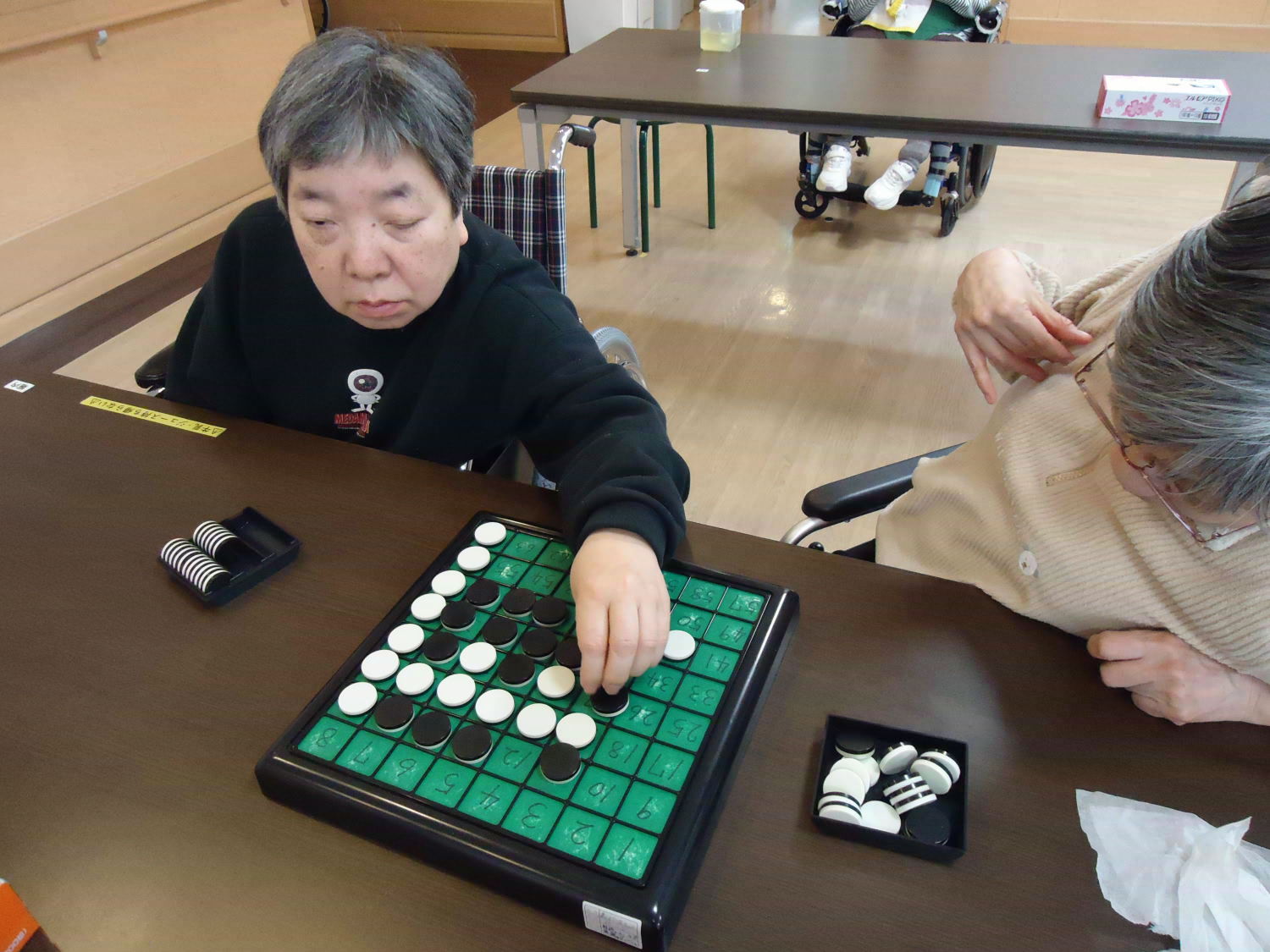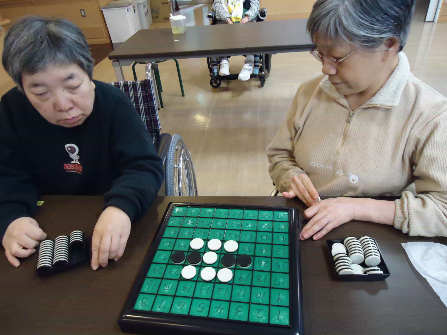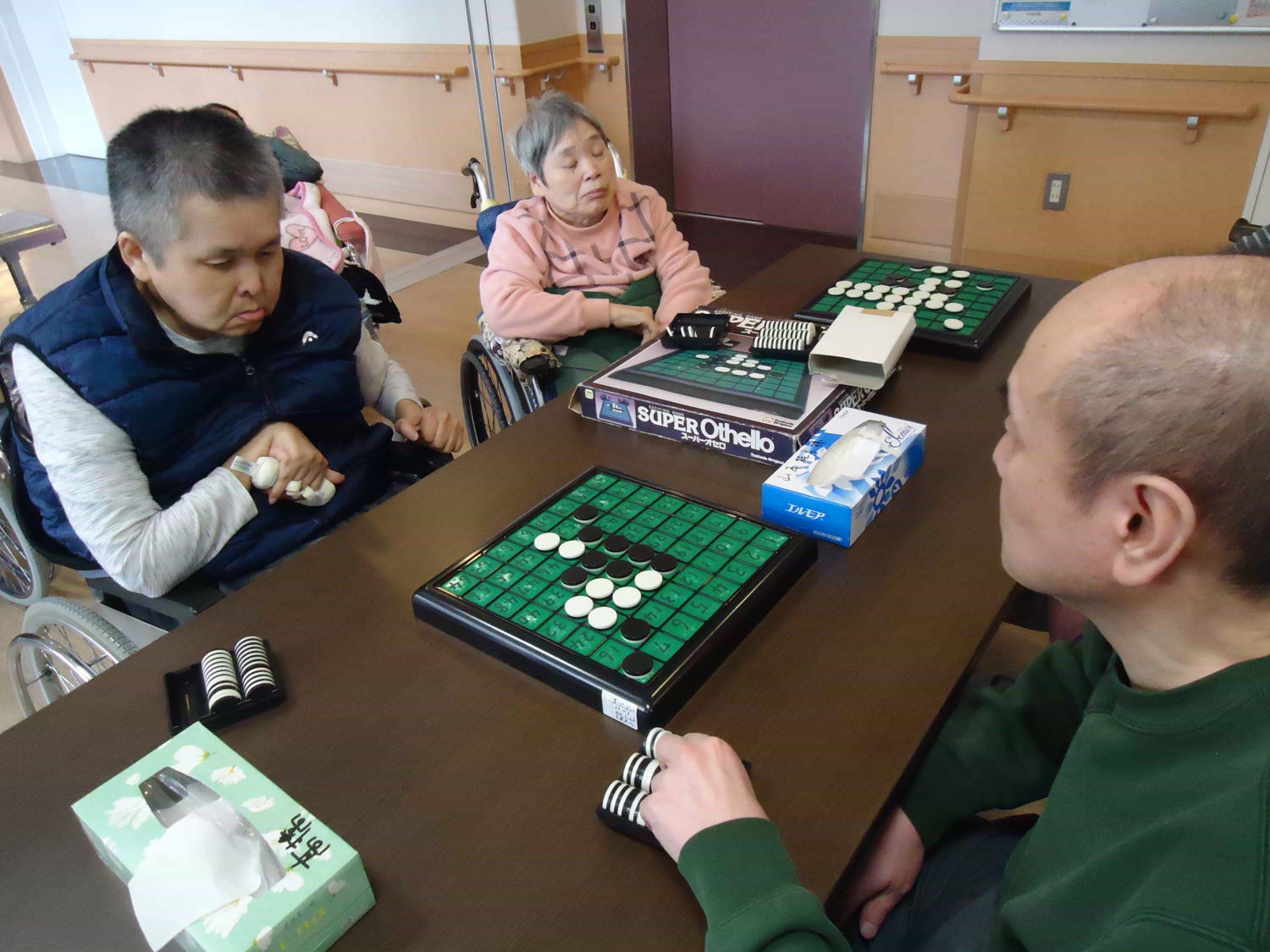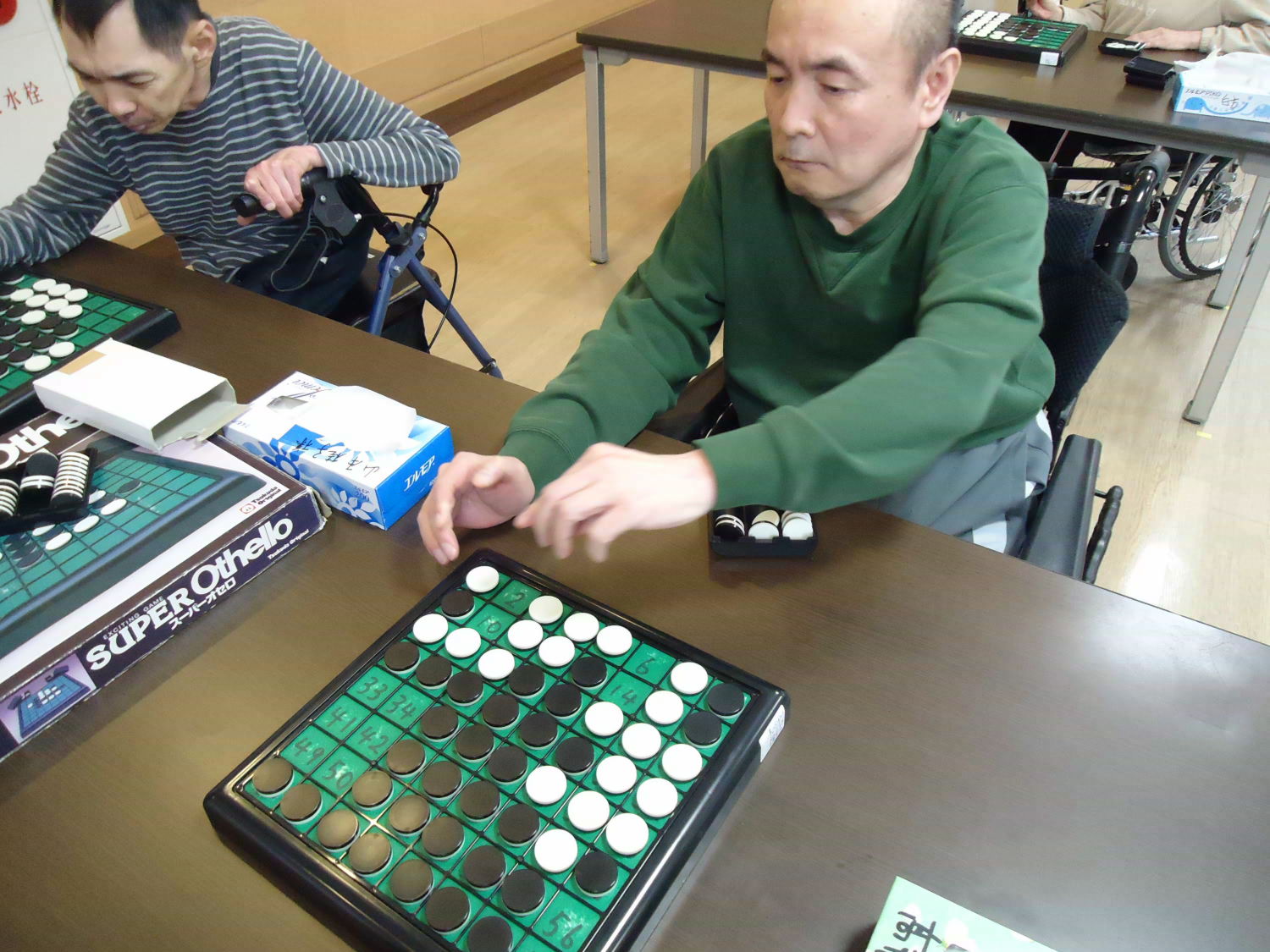 奥が深いオセロですが、ルール自体はシンプルなので取り組みやすいゲームです。たくさんの利用者さんが真剣な顔つきをして激戦が繰り広げられていました!