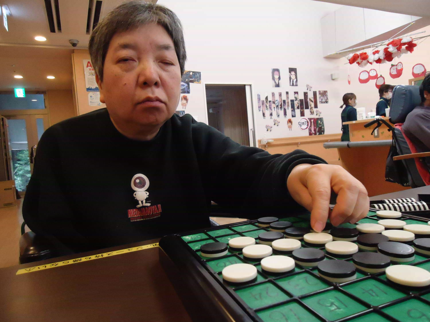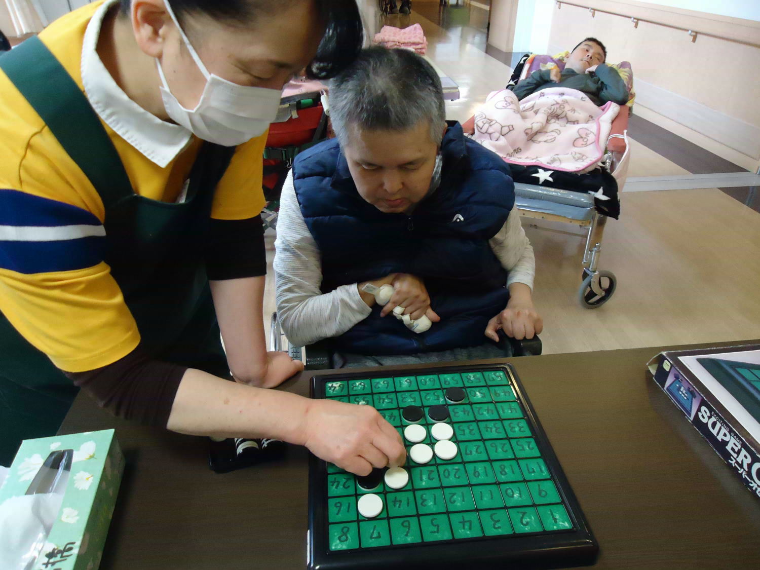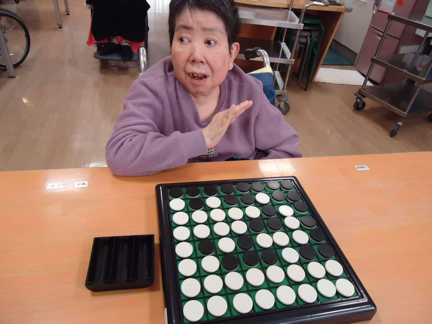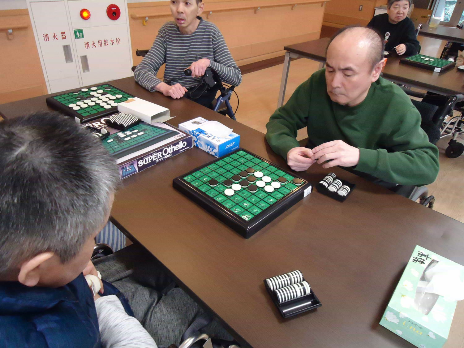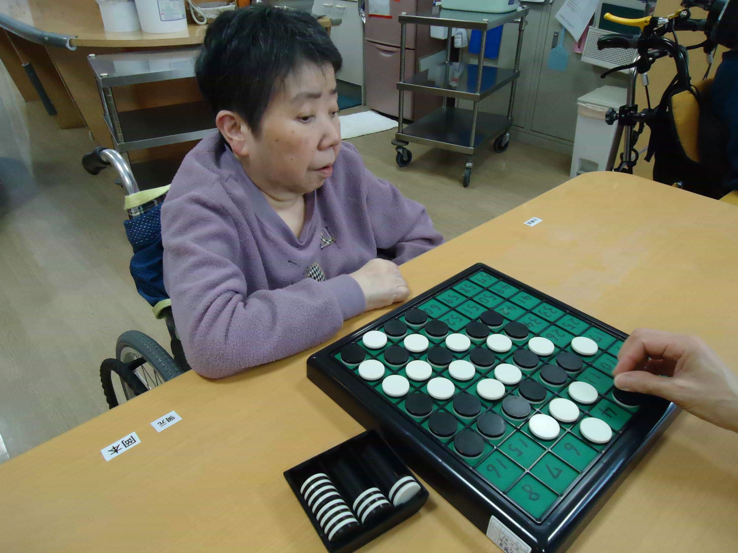 奥が深いオセロですが、ルール自体はシンプルなので取り組みやすいゲームです。たくさんの利用者さんが真剣な顔つきをして激戦が繰り広げられていました!