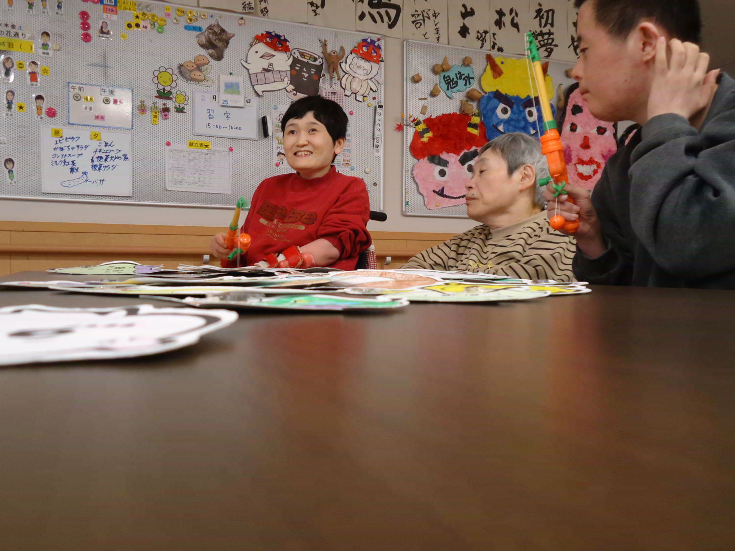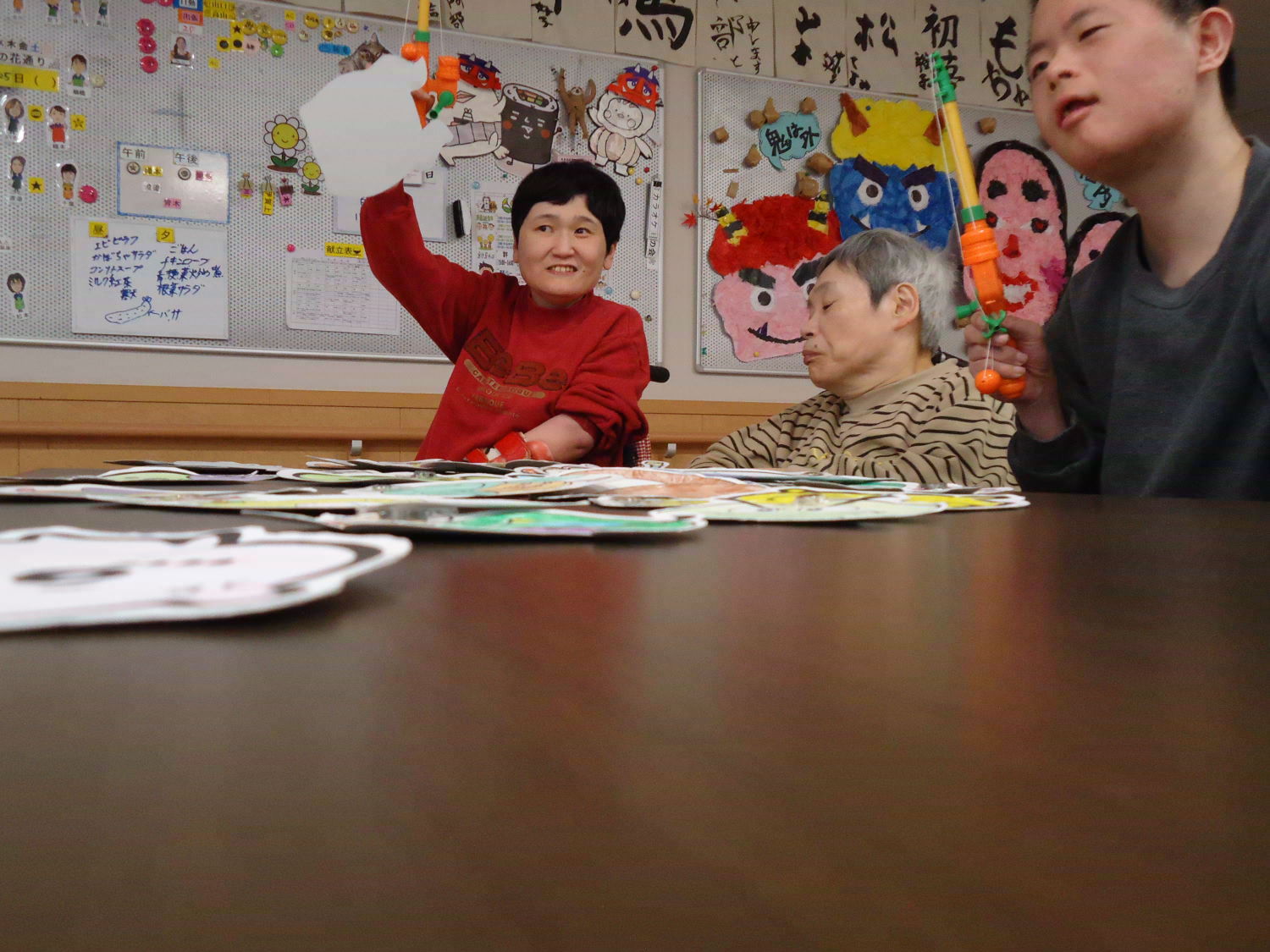 皆さん、自分が釣った獲物を誇らしげに掲げていますね。大漁のようでよかったです!ただ、晩ご飯にできそうな獲物はなさそうですので、キャッチアンドリリースして、また今度釣りを楽しみましょう!