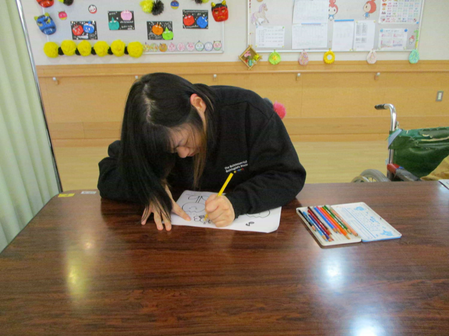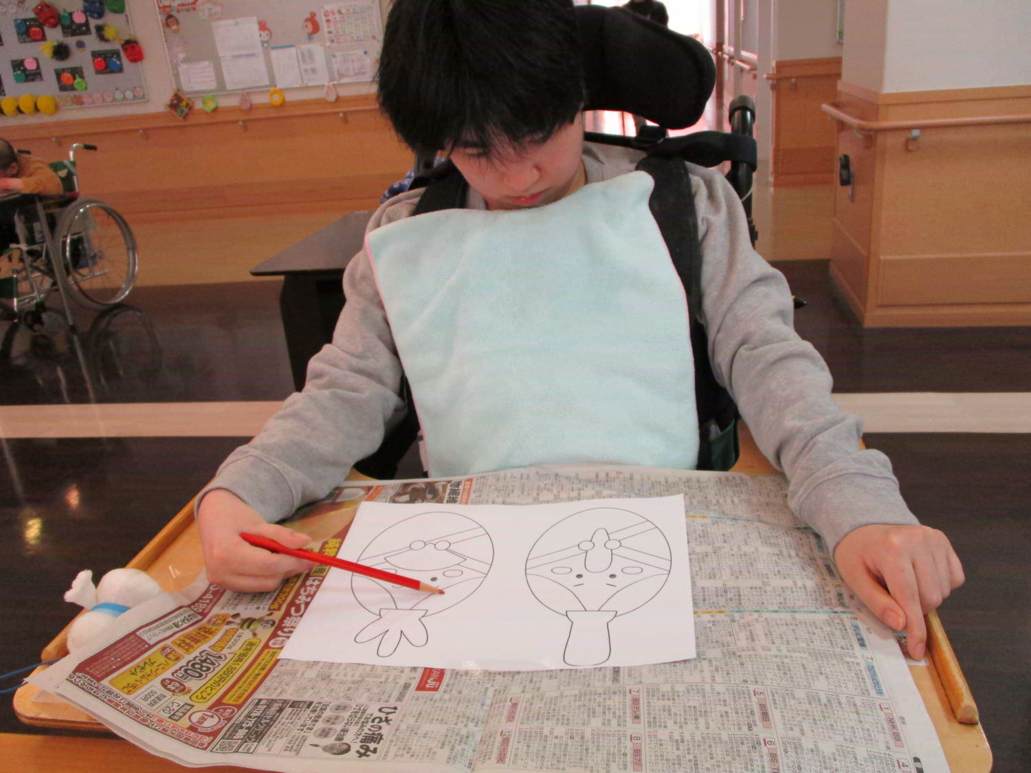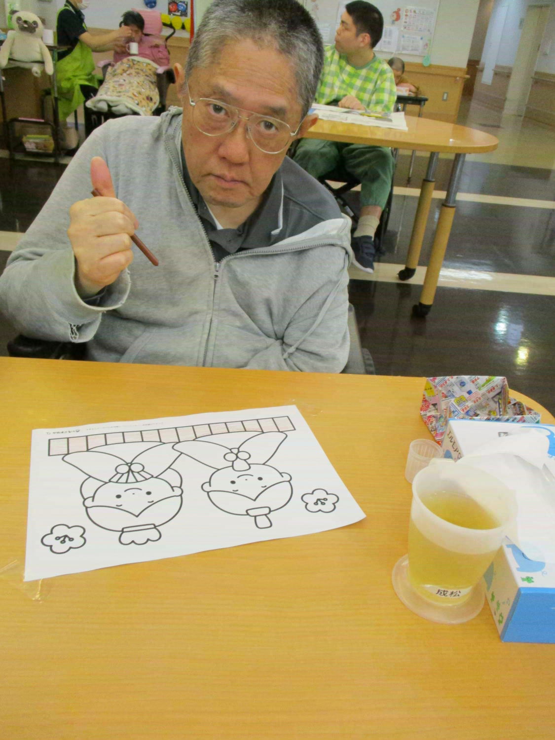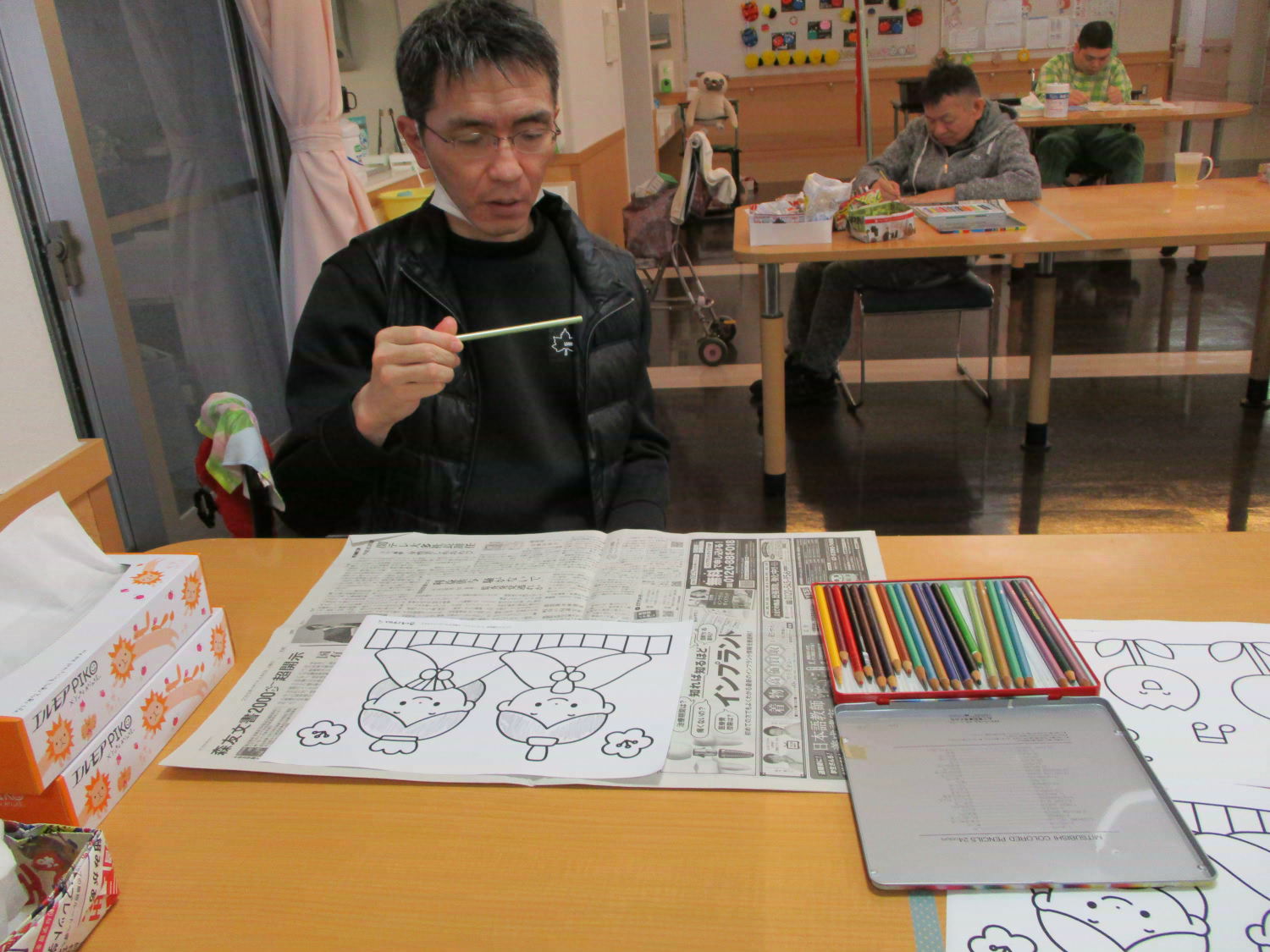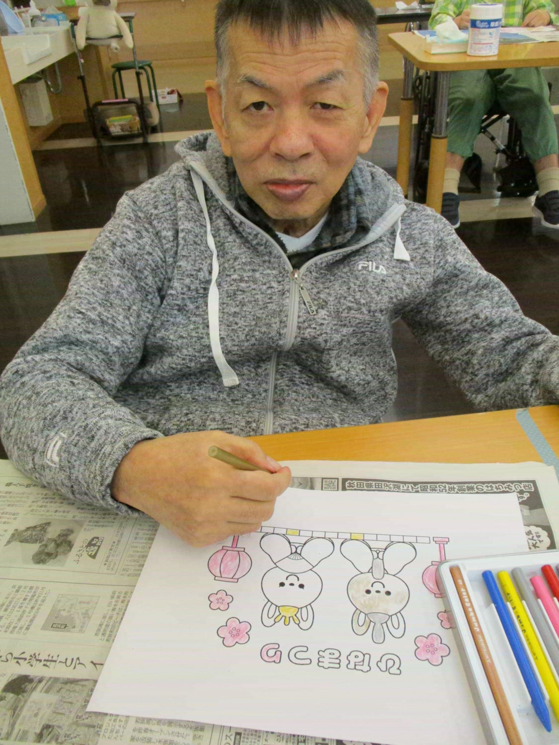 季節行事の作品制作は大忙しです!『2月は逃げる』なんて言いますが、お正月だと思っていたら、月日はあっという間に過ぎ去ってしまうものなのですね。取り急ぎ、今日はひな祭りに向けての塗り絵に取り組みました。