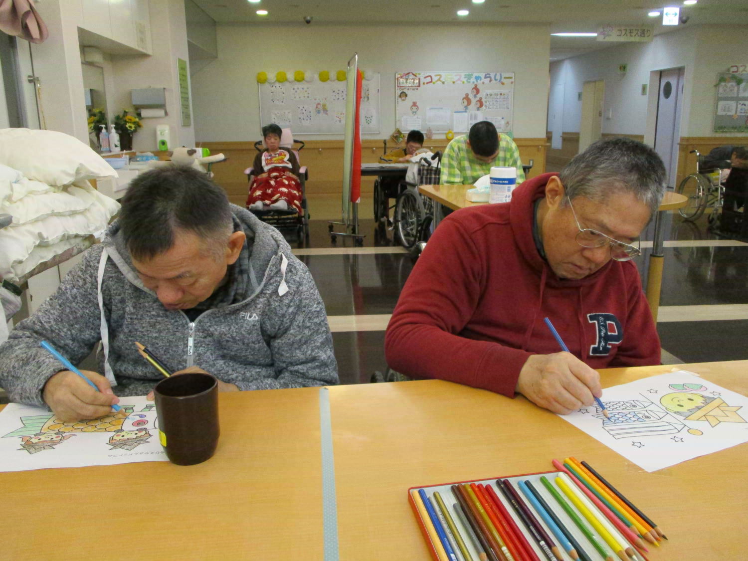 春には、「雛祭り」「お花見」等の色々な行事があります。ちょっと気が早すぎる気もしますが、「こどもの日」用の塗り絵をしてみました。利用者様は五月気分で楽しまれたので問題ないですよね?